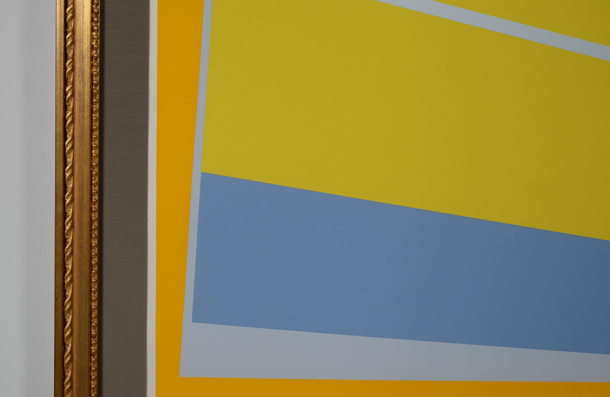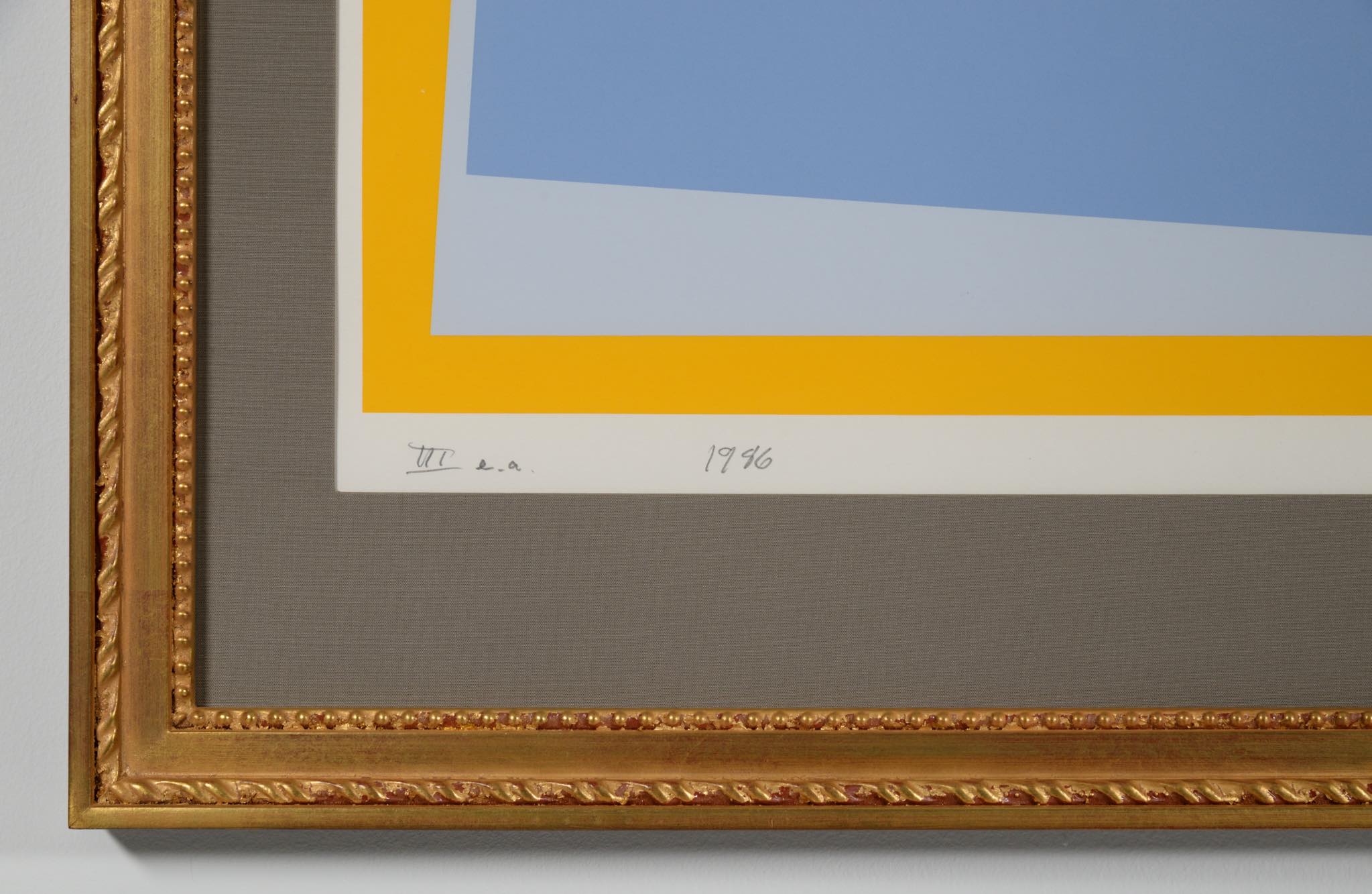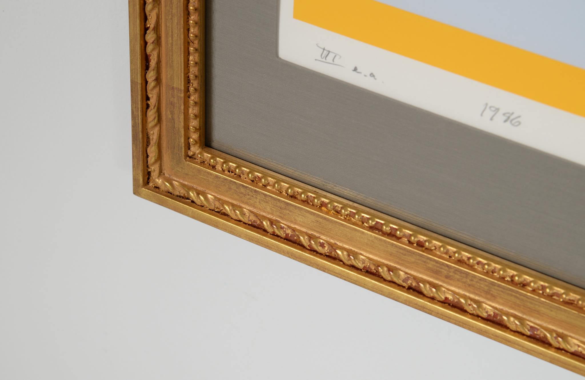20世紀後半に活躍したデンマークの芸術家、Ib Geertsen/イップ・ギアトセンによるリトグラフ作品です。1986年に試刷りとして制作されたもので、何部か刷られたもののようです。リトグラフの発色は良く、日焼けなども見られず綺麗な状態です。フレームとマットはこちらで誂えたもので、あえて金箔を用いた装飾的なものを用いて額装しました。