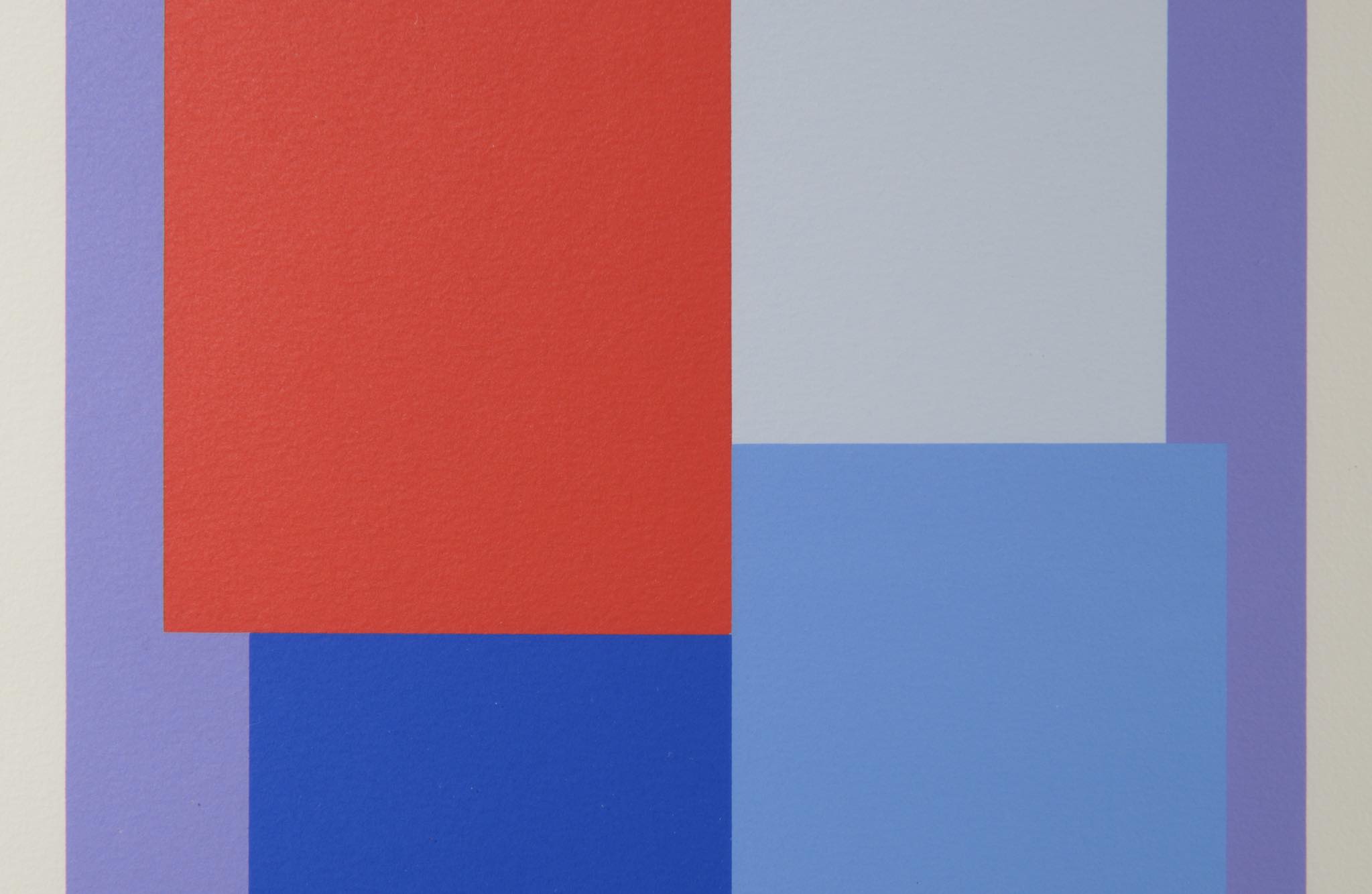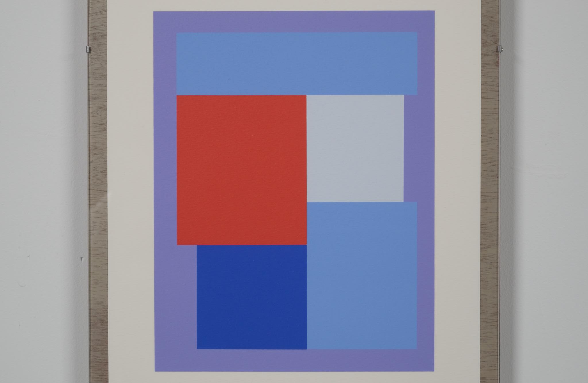 20世紀後半に活躍したデンマークの芸術家、Ib Geertsen/イップ・ギアトセンによるコンポジションセリグラフ作品です。ギアトセンが表現する世界観の現れたコンポジション作品群に、デンマークの詩人のUffe Harder/ウッフェ・ハーダーによる詩を挿入し、詩集 "Straks Begynder De at Synge" として1990年に500部限定で出版されました。ドイツのリトグラフ紙 ”ツァーカル紙” を用いて、セリグラフィー(シルクスクリーン)によって色鮮やかに刷られています。こちらの作品はその詩集から切り離されたものを個別に額装したもので、ギアトセンのサインは奥付に集約されており、作品自体にサインはありません。フレームは国内にて整えました。