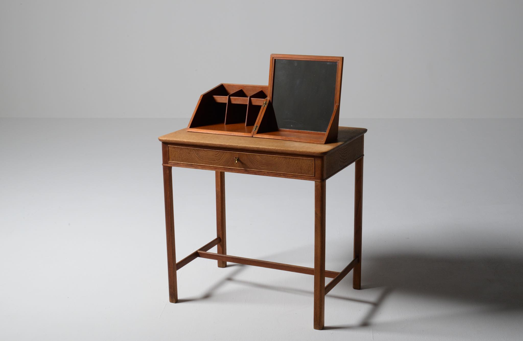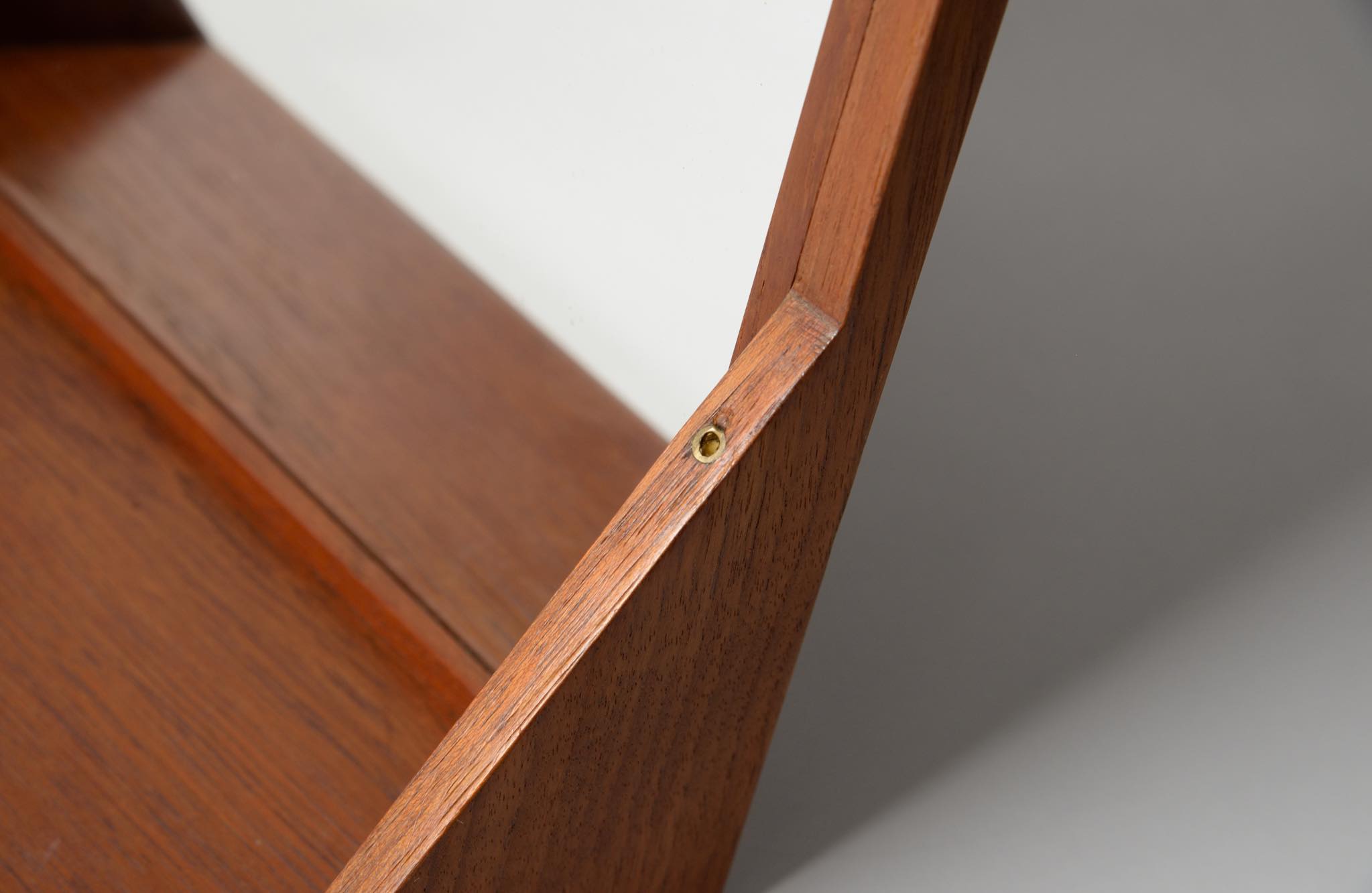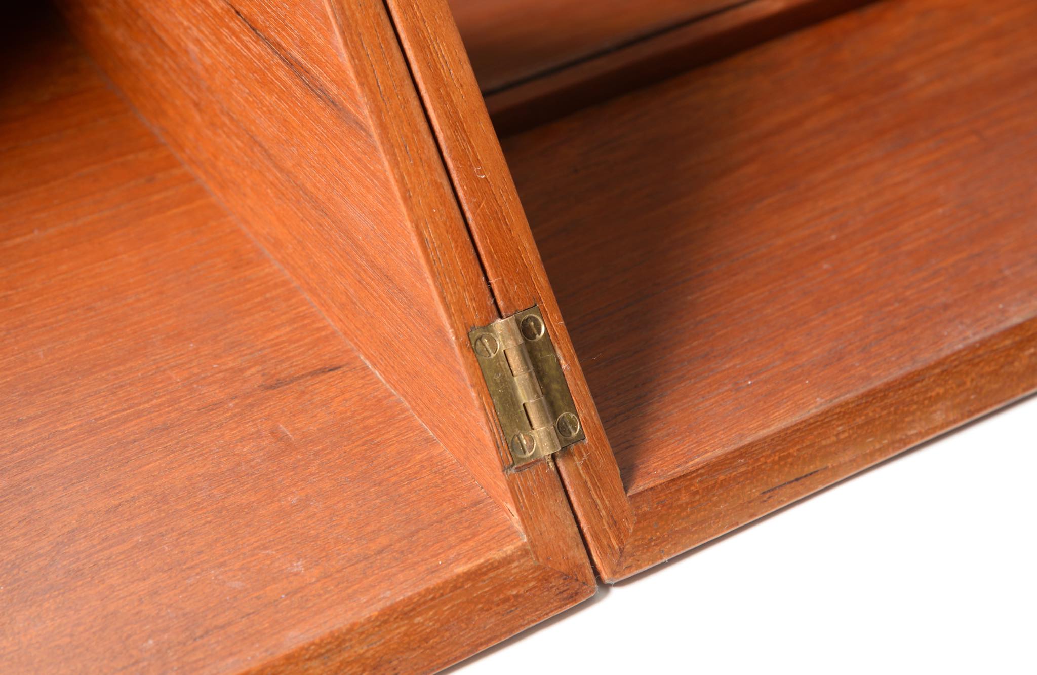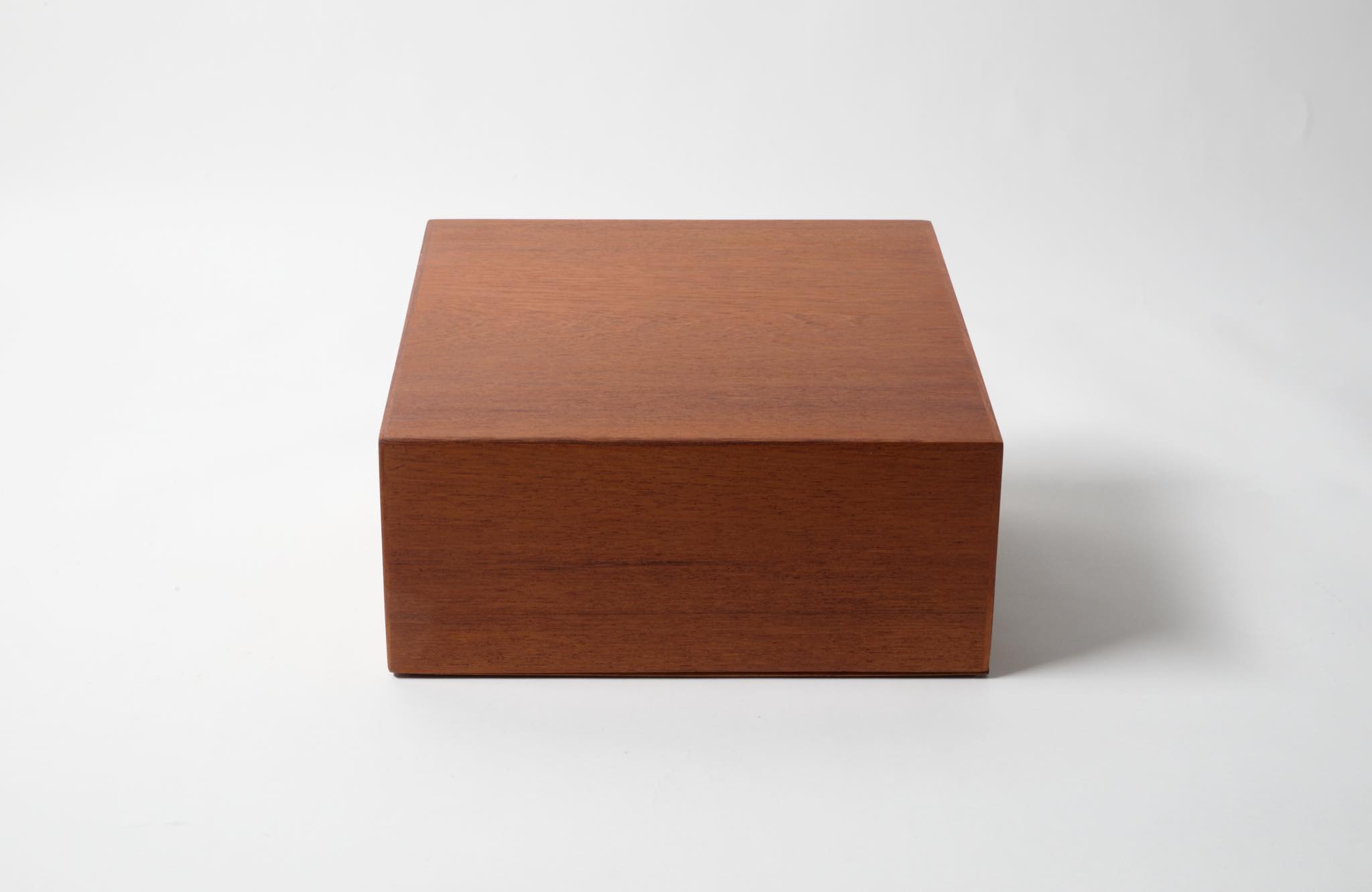デンマークのデザイナーユニット、Andreasen & Ingemann Hansen/アンドレアセン & インゲマン・ハンセンによってデザインされたヴァニティーボックスです。1955年にコペンハーゲンで開催された家具の展示会「Dansk Møbelkunst gennem」へ出品され、展示会を訪問したイングリッド王女がローズウッドのタイプを購入した記録があります。こちらはチーク材で作られたもので、指物工芸と云える精巧な作りのものです。コンディションは良好です。