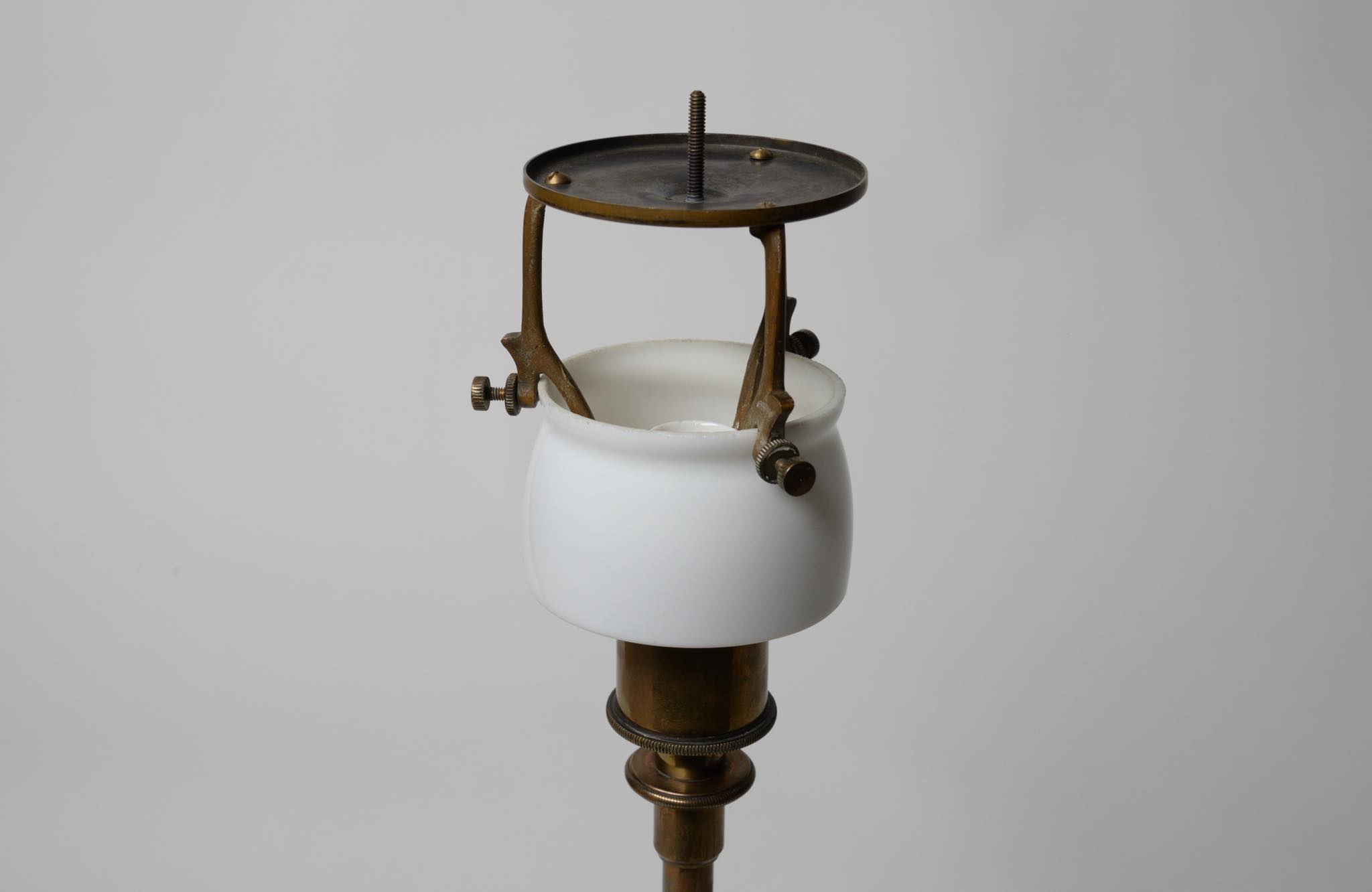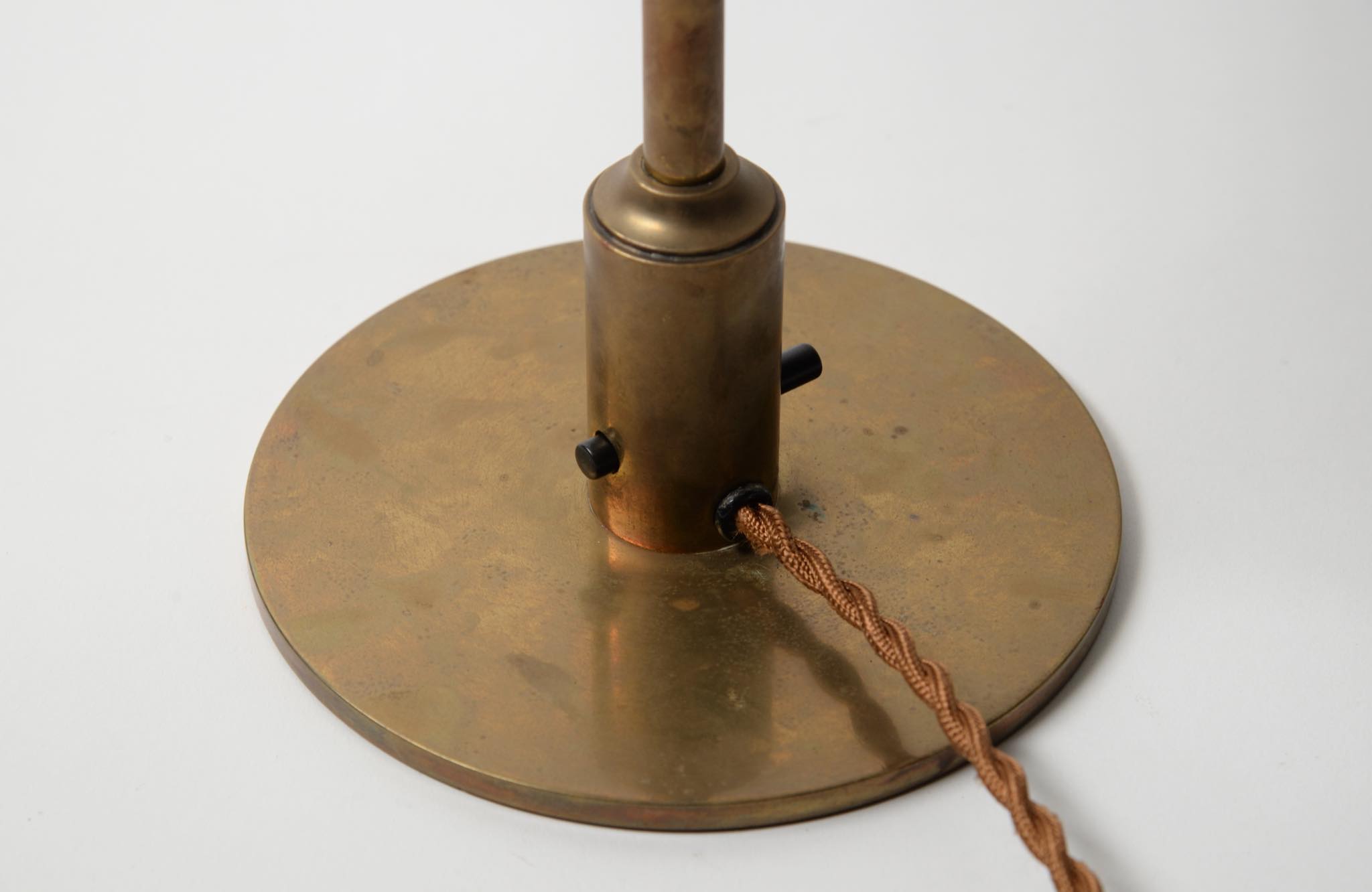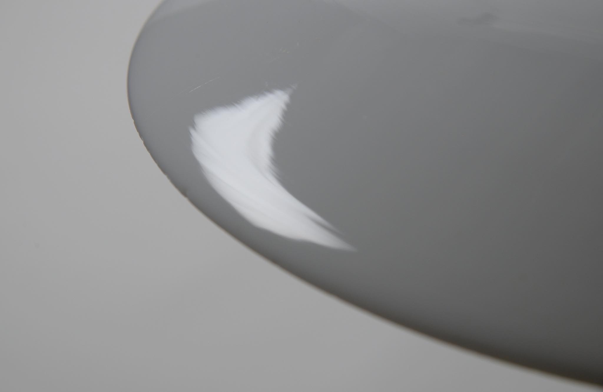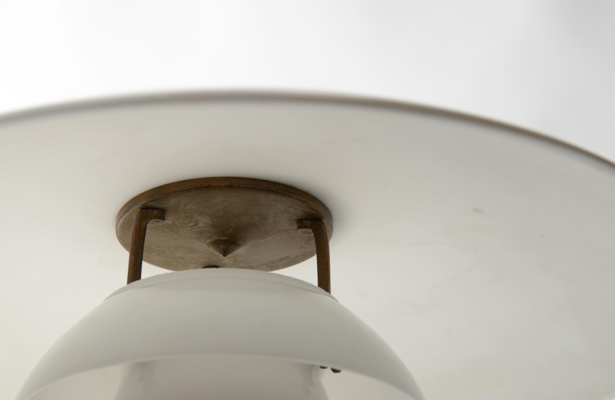 デンマークを代表するデザイナーのPoul Henningsen/ポール・ヘニングセンによるPH3/2テーブルランプです。真鍮のフレームに単層オパールガラスシェードの組み合わせで、1930年代に作られたものです。オパールガラスとはオパールセントガラスとも呼ばれ、ガラス原料に豚などの動物の骨灰を混ぜて成型、急冷と再加熱によってできる半透明な乳白ガラスの総称で、光を通すとくすんだ赤色を呈します。オパールガラスは19世紀にティファニーが開発したという説もあり、20世紀初頭にはルネ・ラリックらの作家が多用、1930年代には世界的に流行しました。また、フレームは真鍮で作られたもので、経年変色は取り除いておりません。コンディションは良好です。