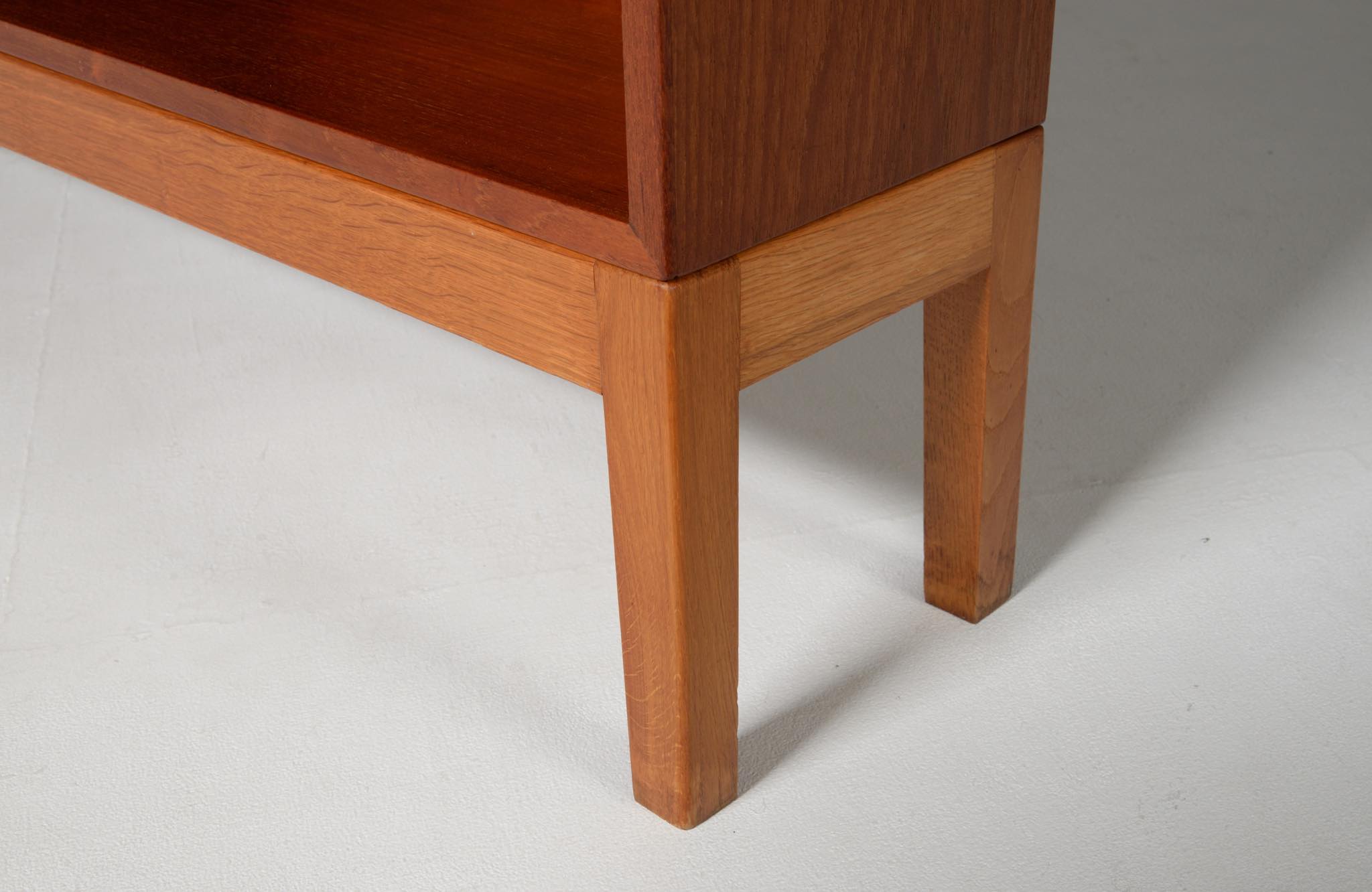 デンマークを代表する家具デザイナーのBørge Mogensen/ボーエ・モーエンセンによるブックシェルフです。チーク材とオーク材とのコンビネーションに時代の趣が表れています。若干の日焼け跡や、背板の小穴の補修などはありますが、コンディションは良好です。こちらは単体での販売となります。