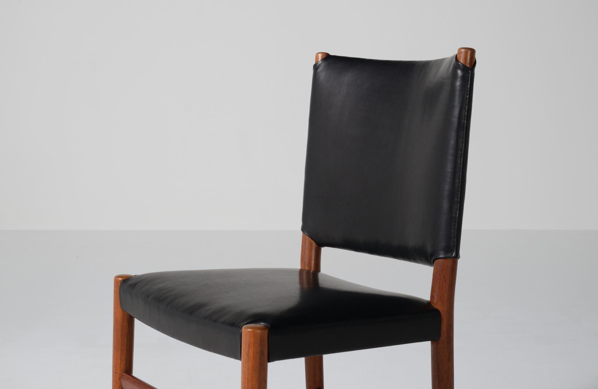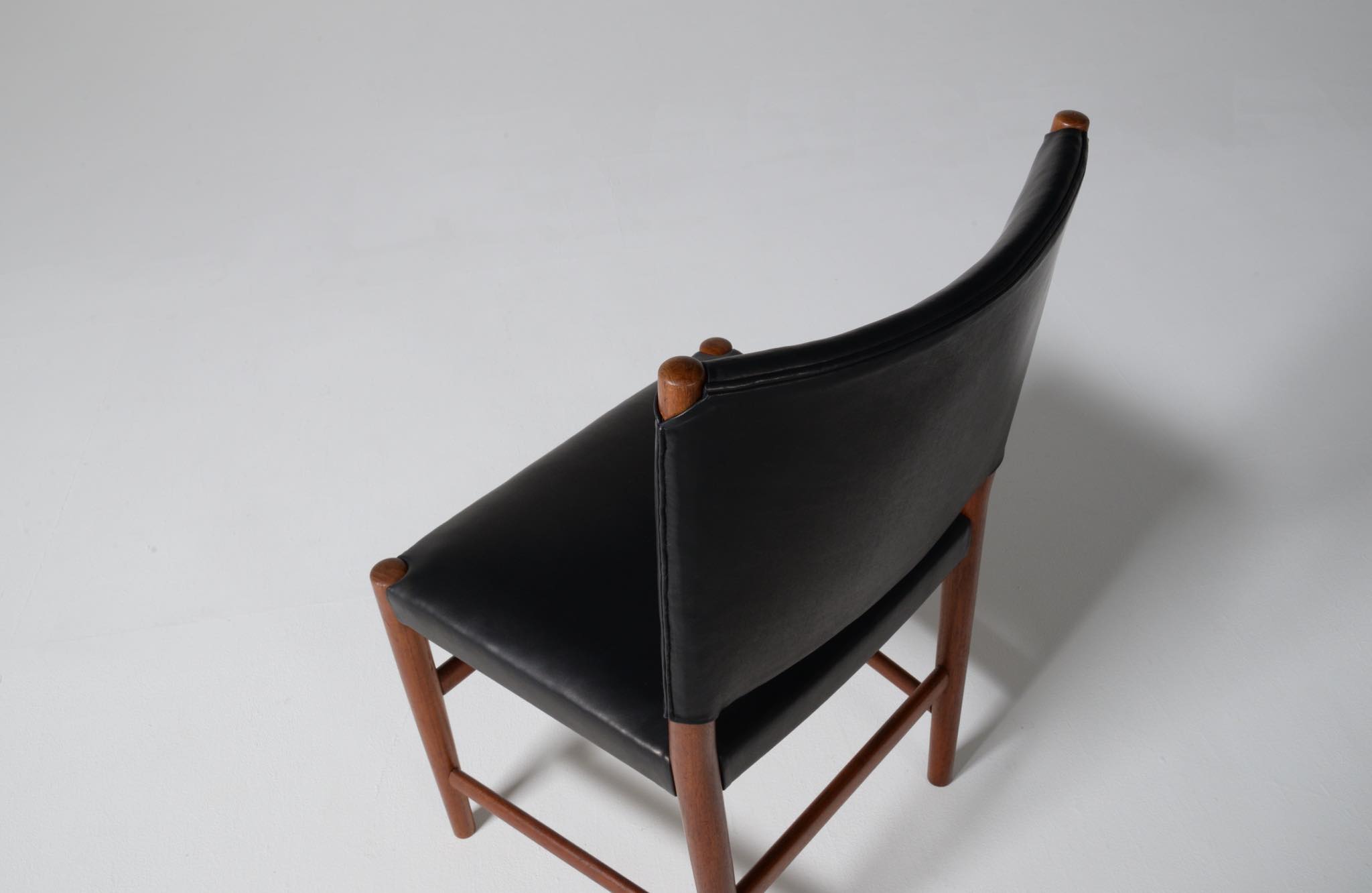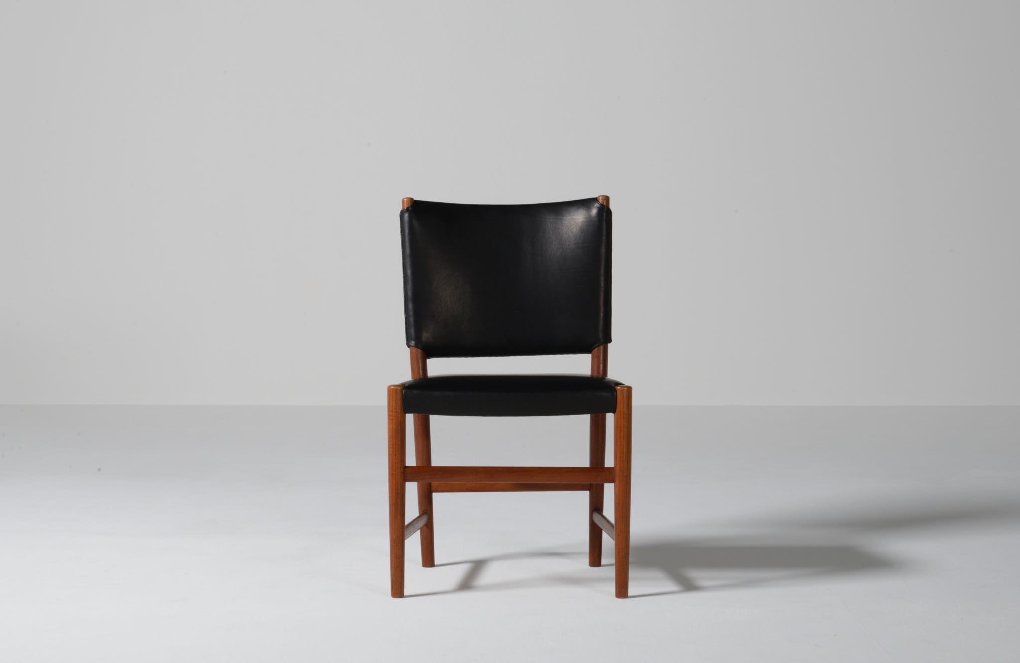 Hans J. Wegner/ハンス・ウェグナーによって1940年代にデザインされた "B 103" サイドチェアです。オーフス市庁舎の家具を手がけた際に携わった工房 Plan Møblerによって作られたもので、あまり見かけないモデルです。シートはウェビング構造のため底突き感が無く、座りやすい椅子です。フレームはチーク材、シートの皮革は張り替えました。