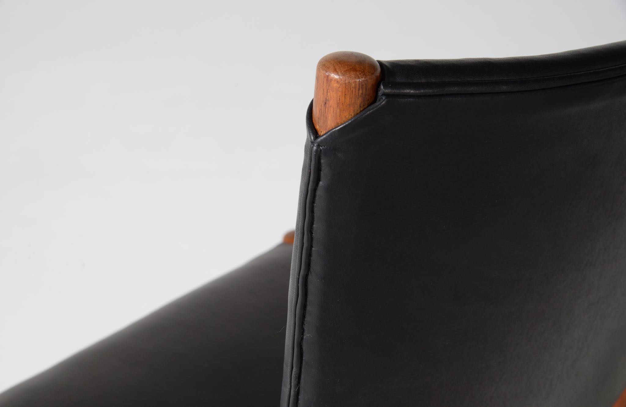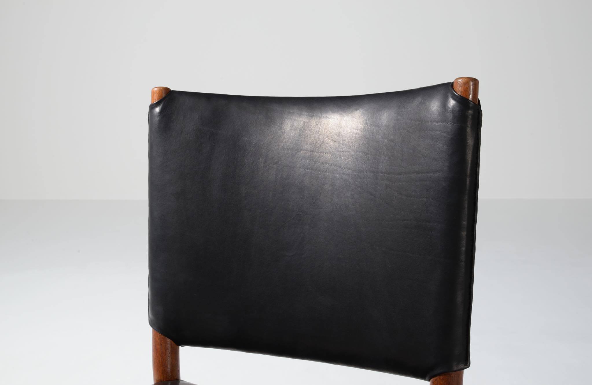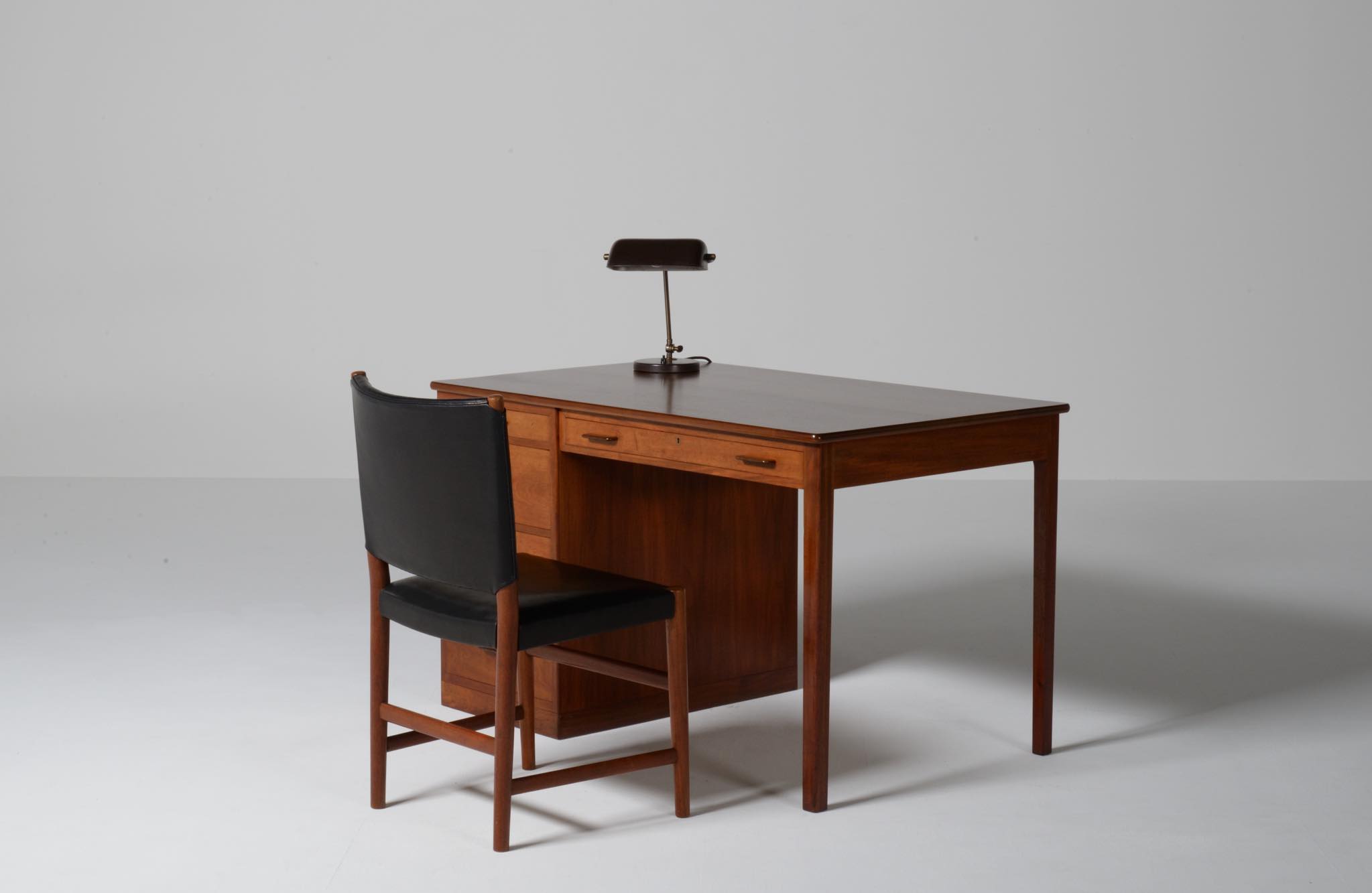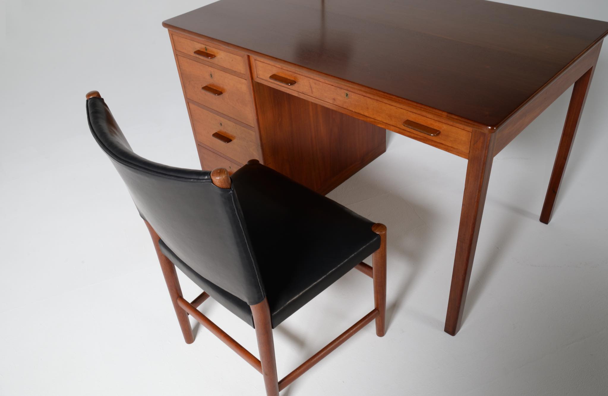 Hans J. Wegner/ハンス・ウェグナーによって1940年代にデザインされた "B 103" サイドチェアです。オーフス市庁舎の家具を手がけた際に携わった工房 Plan Møblerによって作られたもので、あまり見かけないモデルです。シートはウェビング構造のため底突き感が無く、座りやすい椅子です。フレームはチーク材、シートの皮革は張り替えました。