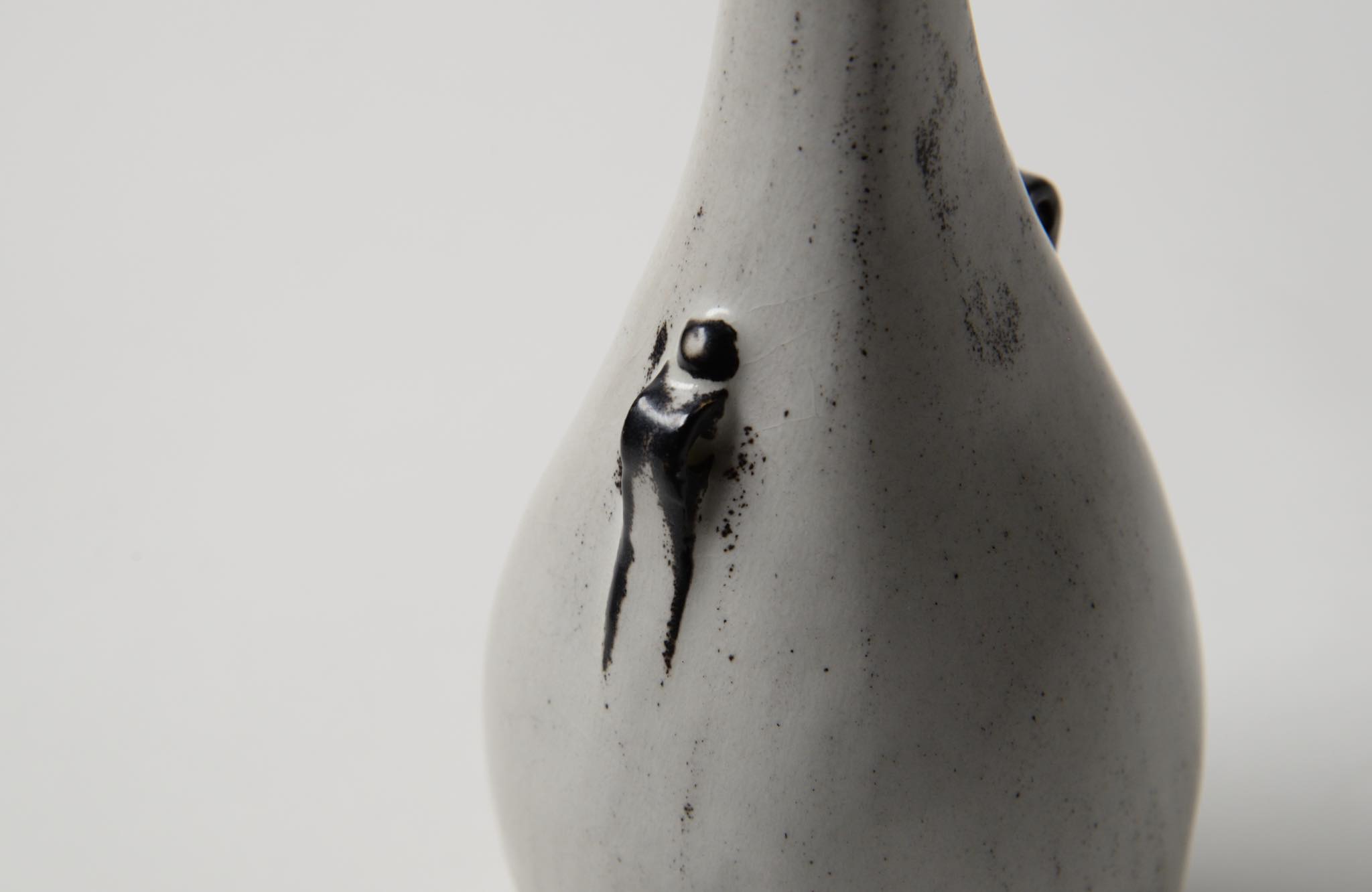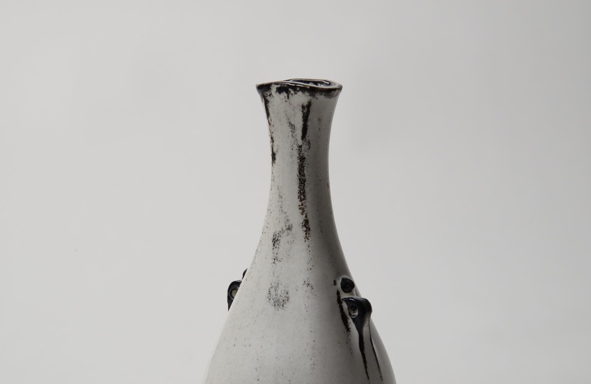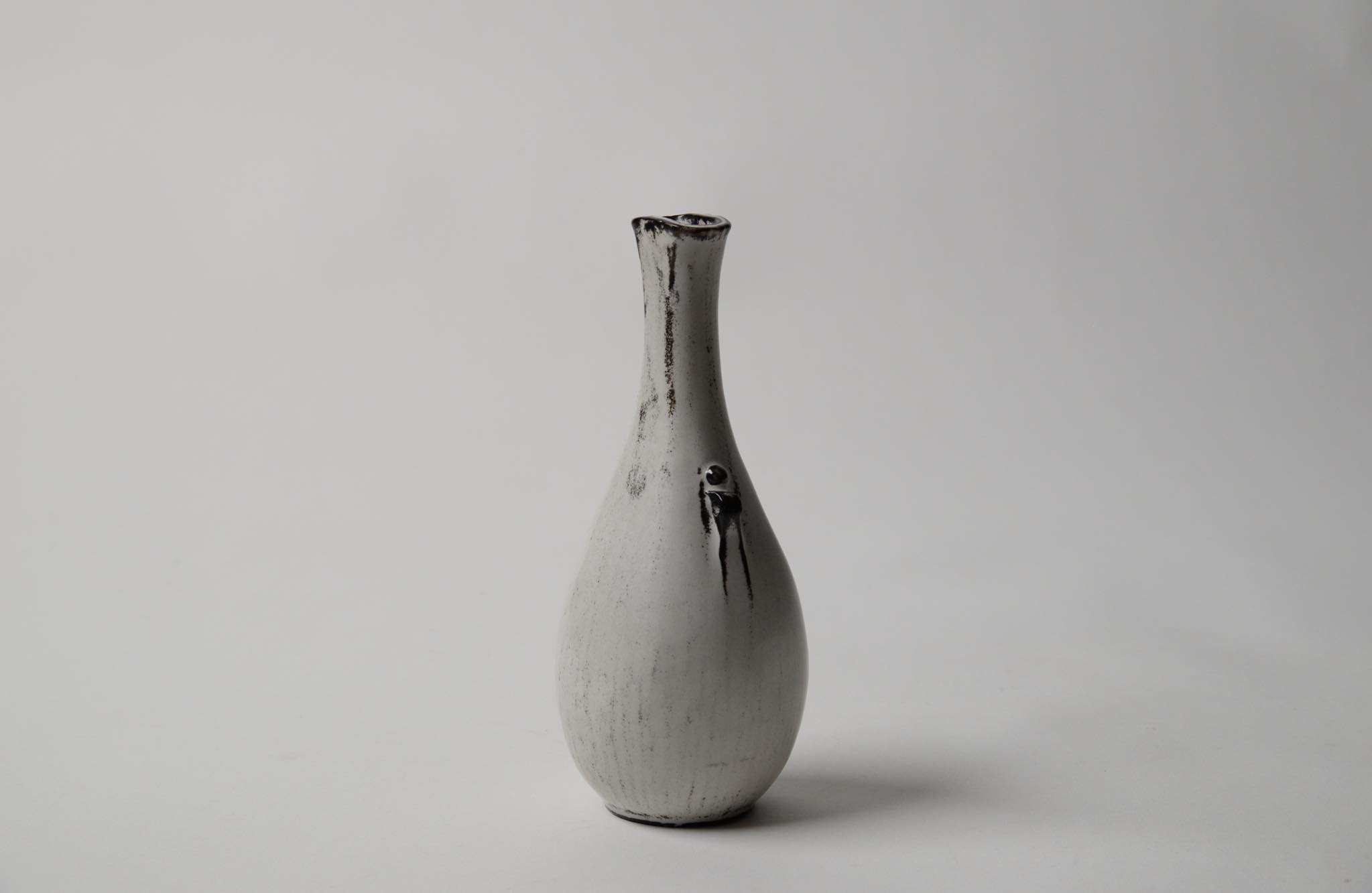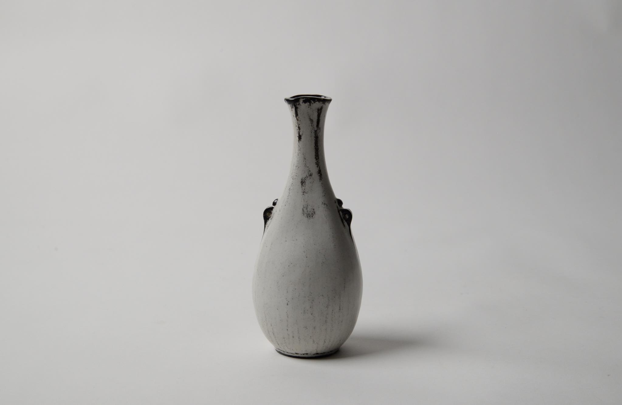 デンマークの陶芸家、Svend Hammershøi/スヴェン・ハマスホイによる鶴首のベース作品、1930年代頃に焼成されたものです。黒色釉の上から灰色釉を施釉したもので、スヴェンが得意とするマットでモノクロームな世界観が表現されています。コンディションは良好です。