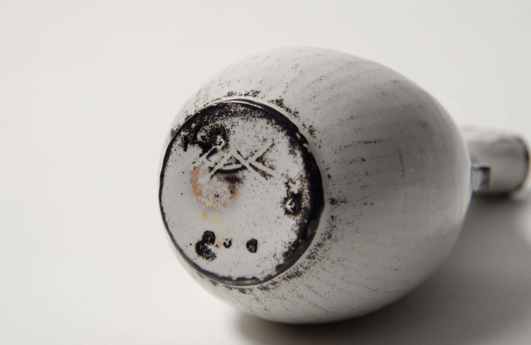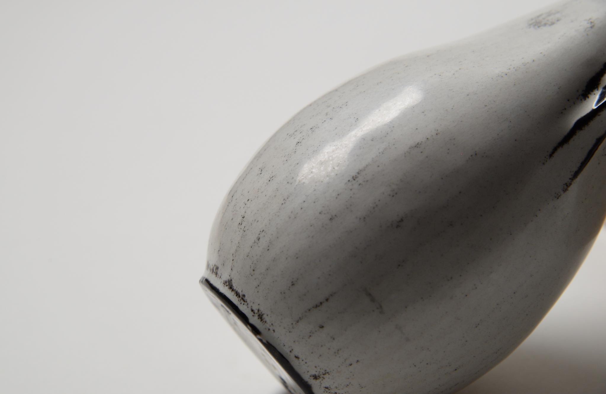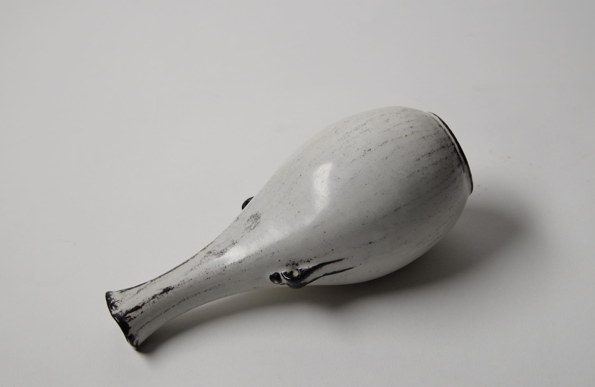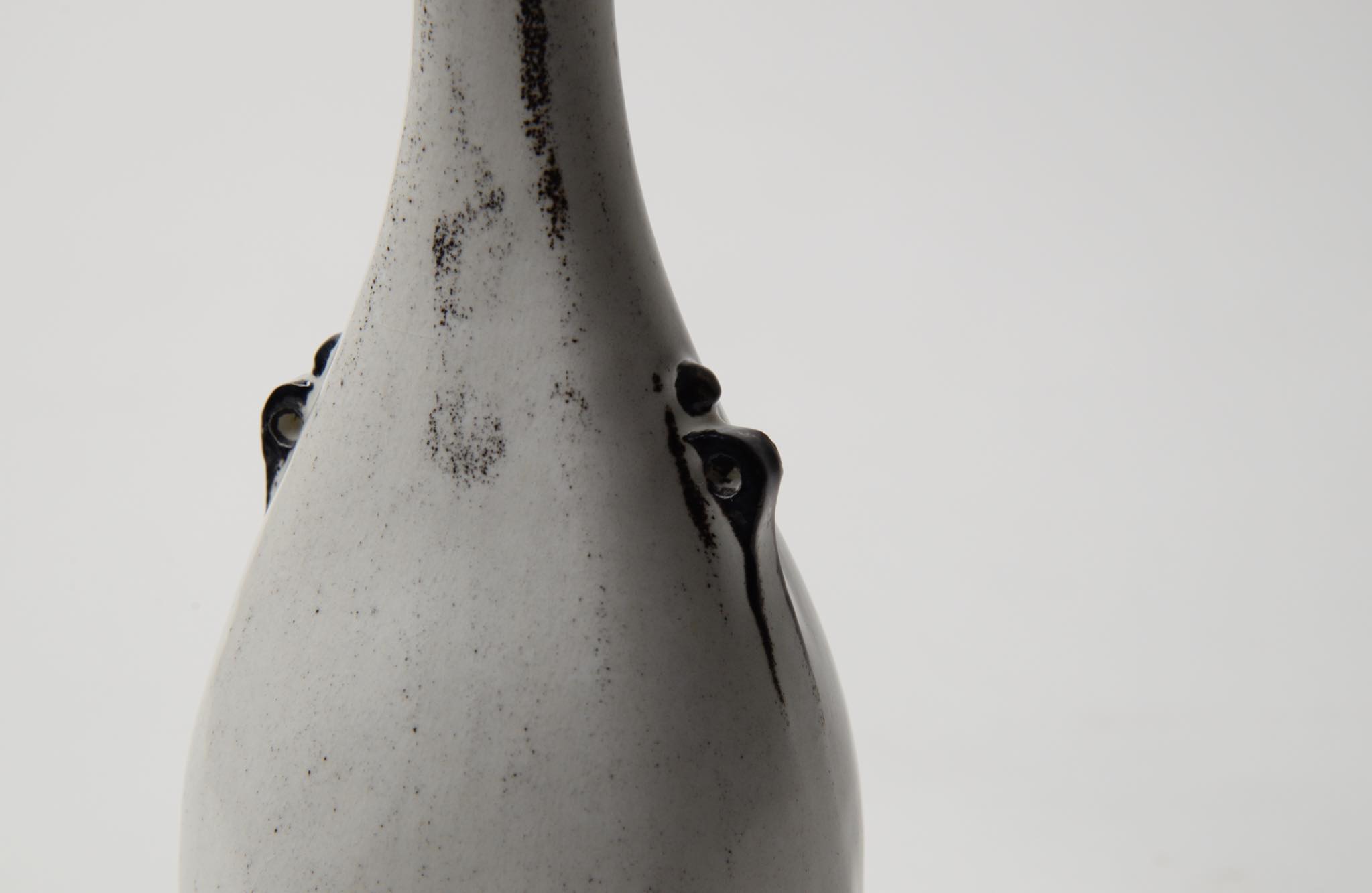 デンマークの陶芸家、Svend Hammershøi/スヴェン・ハマスホイによる鶴首のベース作品、1930年代頃に焼成されたものです。黒色釉の上から灰色釉を施釉したもので、スヴェンが得意とするマットでモノクロームな世界観が表現されています。コンディションは良好です。