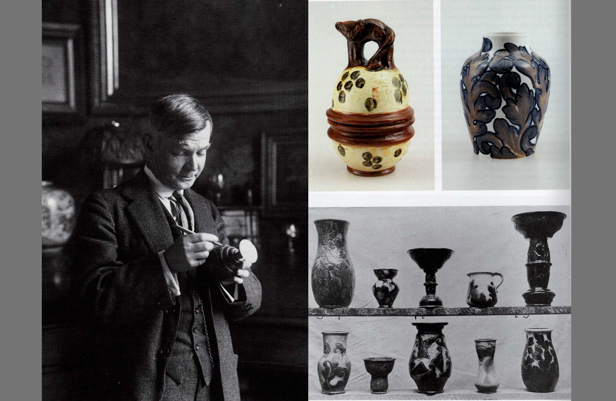 デンマーク人で世界的に有名な画家のヴィルヘルム・ハマスホイを兄に持ち、兄の影響で絵画を学びつつ、デンマークの高名なデザイナー、トルヴァルド・ビンデスボールに出会い陶芸に傾倒します。ビンデスボールの亡き後、渡仏。やがて自身の方向性を見出し、錫を主成分とするモノクロームの釉を使った立体物を作陶し始め、スヴェンの表現する個性的な作品が確立され、世間の評価を集めるようになります。スヴェンの得意としたモノクロームの釉は、戦前のものと思えぬほどモダンな印象です。