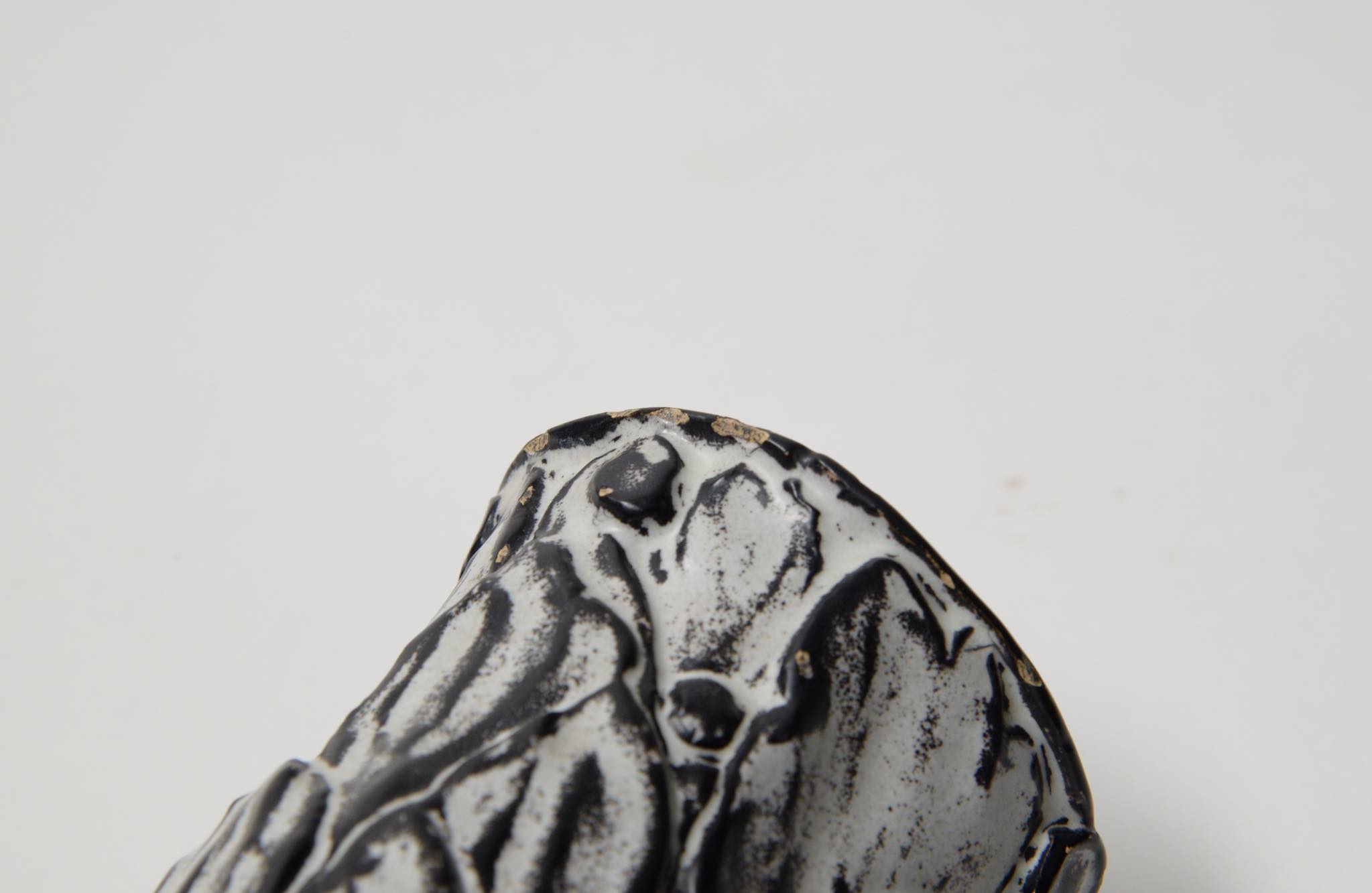 デンマーク人で世界的に有名な画家のヴィルヘルム・ハマスホイを兄に持ち、兄の影響で絵画を学びつつ、デンマークの高名なデザイナー、トルヴァルド・ビンデスボールに出会い陶芸に傾倒します。ビンデスボールの亡き後、渡仏。やがて自身の方向性を見出し、錫を主成分とするモノクロームの釉を使った立体物を作陶し始め、スヴェンの表現する個性的な作品が確立され、世間の評価を集めるようになります。スヴェンの得意としたモノクロームの釉は、戦前のものと思えぬほどモダンな印象です。