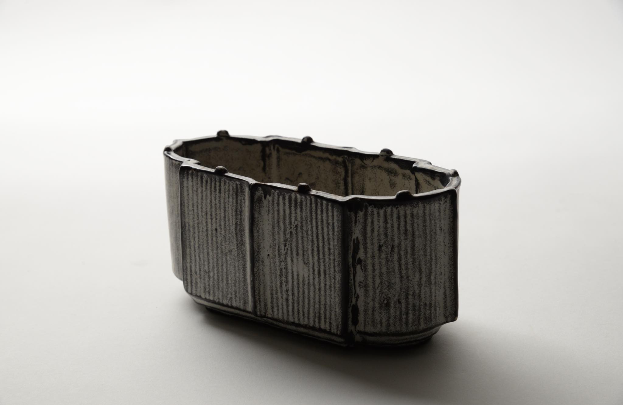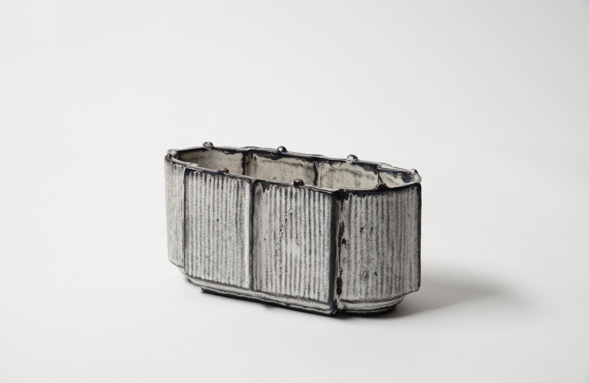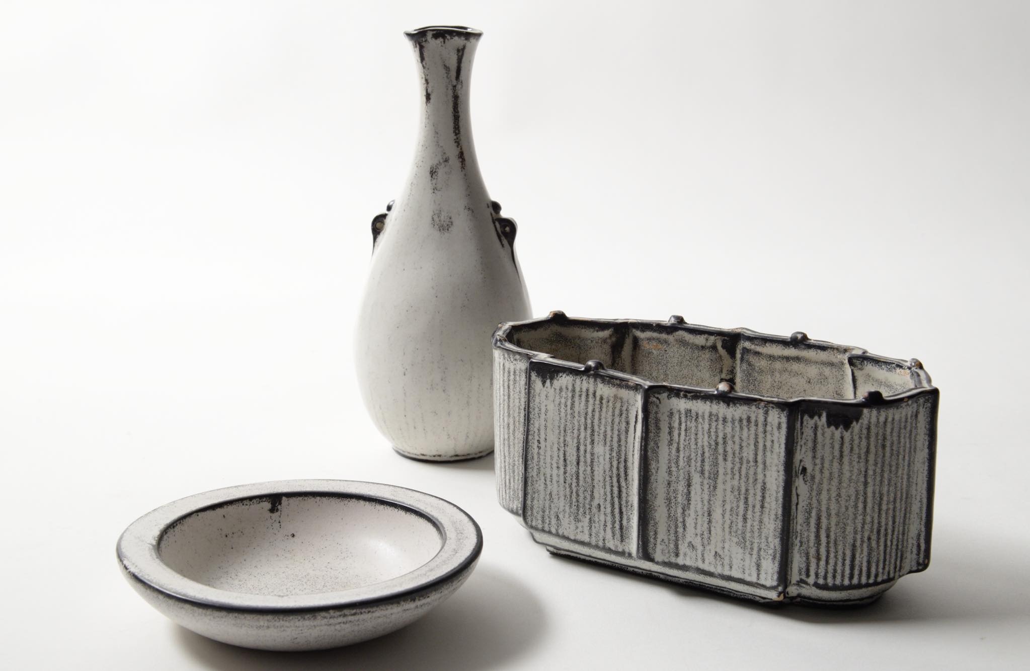 デンマーク人で世界的に有名な画家のヴィルヘルム・ハマスホイを兄に持ち、兄の影響で絵画を学びつつ、デンマークの高名なデザイナー、トルヴァルド・ビンデスボールに出会い陶芸に傾倒します。ビンデスボールの亡き後、渡仏。やがて自身の方向性を見出し、錫を主成分とするモノクロームの釉を使った立体物を作陶し始め、スヴェンの表現する個性的な作品が確立され、世間の評価を集めるようになります。スヴェンの得意としたモノクロームの釉は、戦前のものと思えぬほどモダンな印象です。