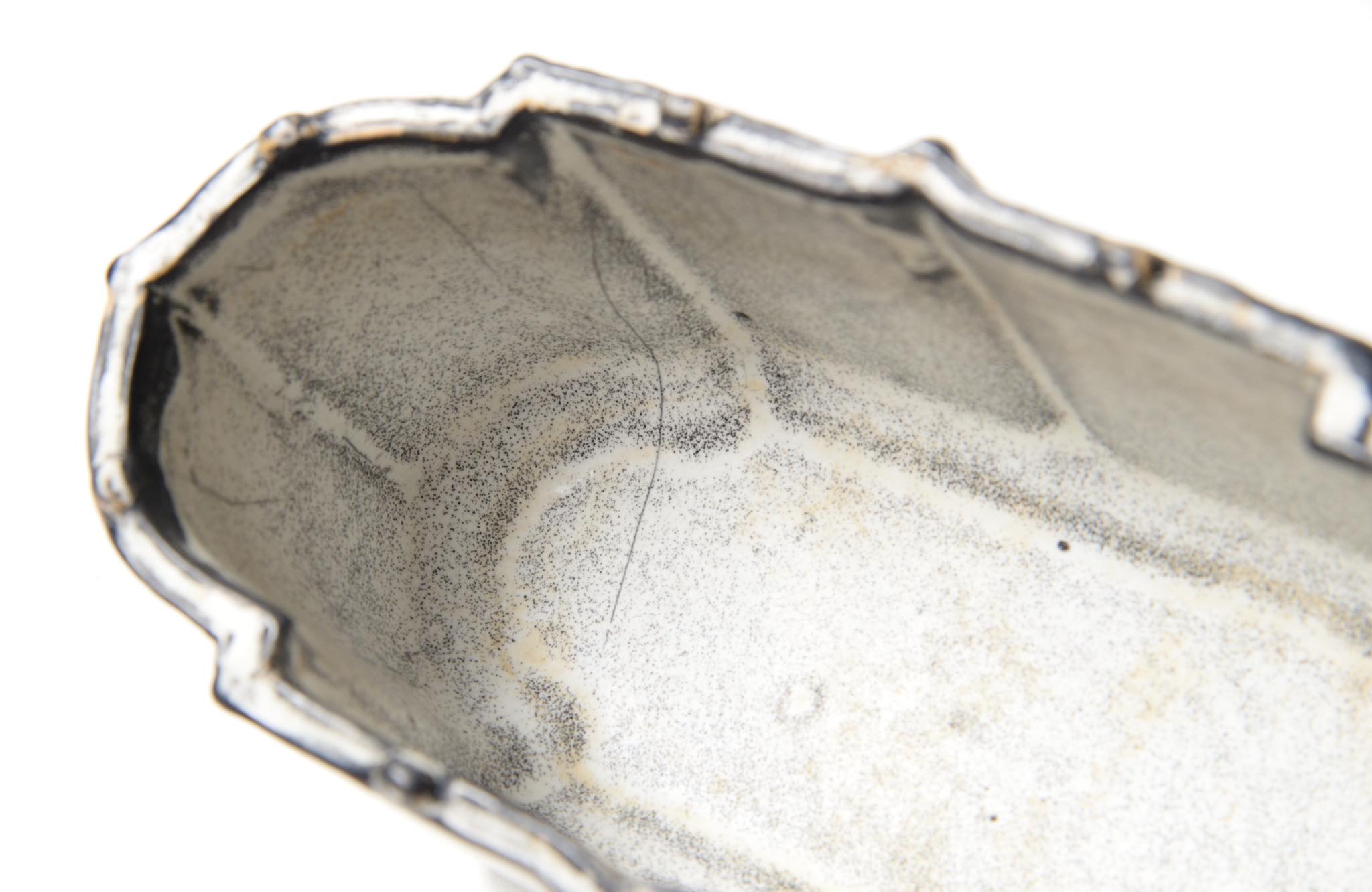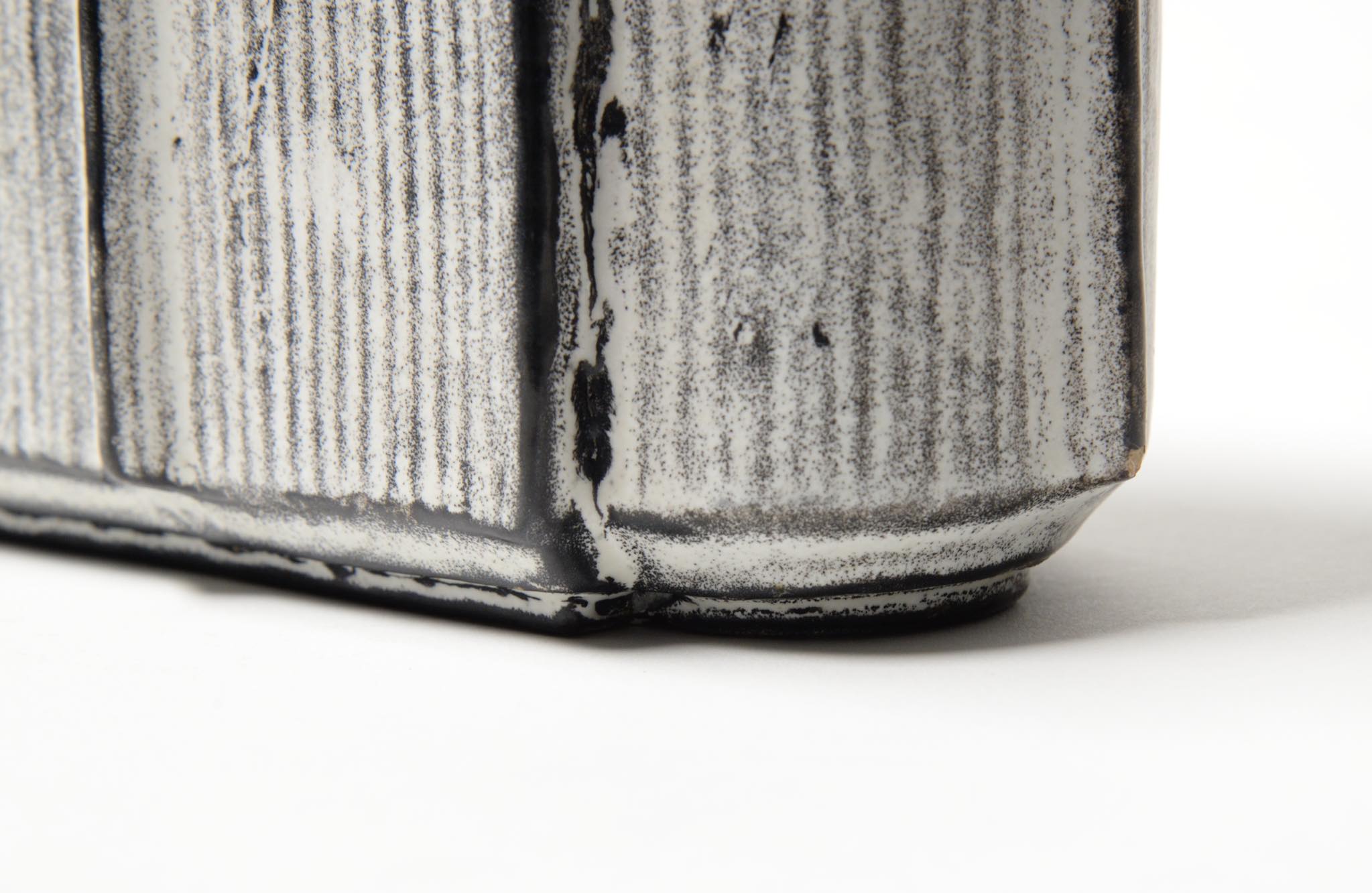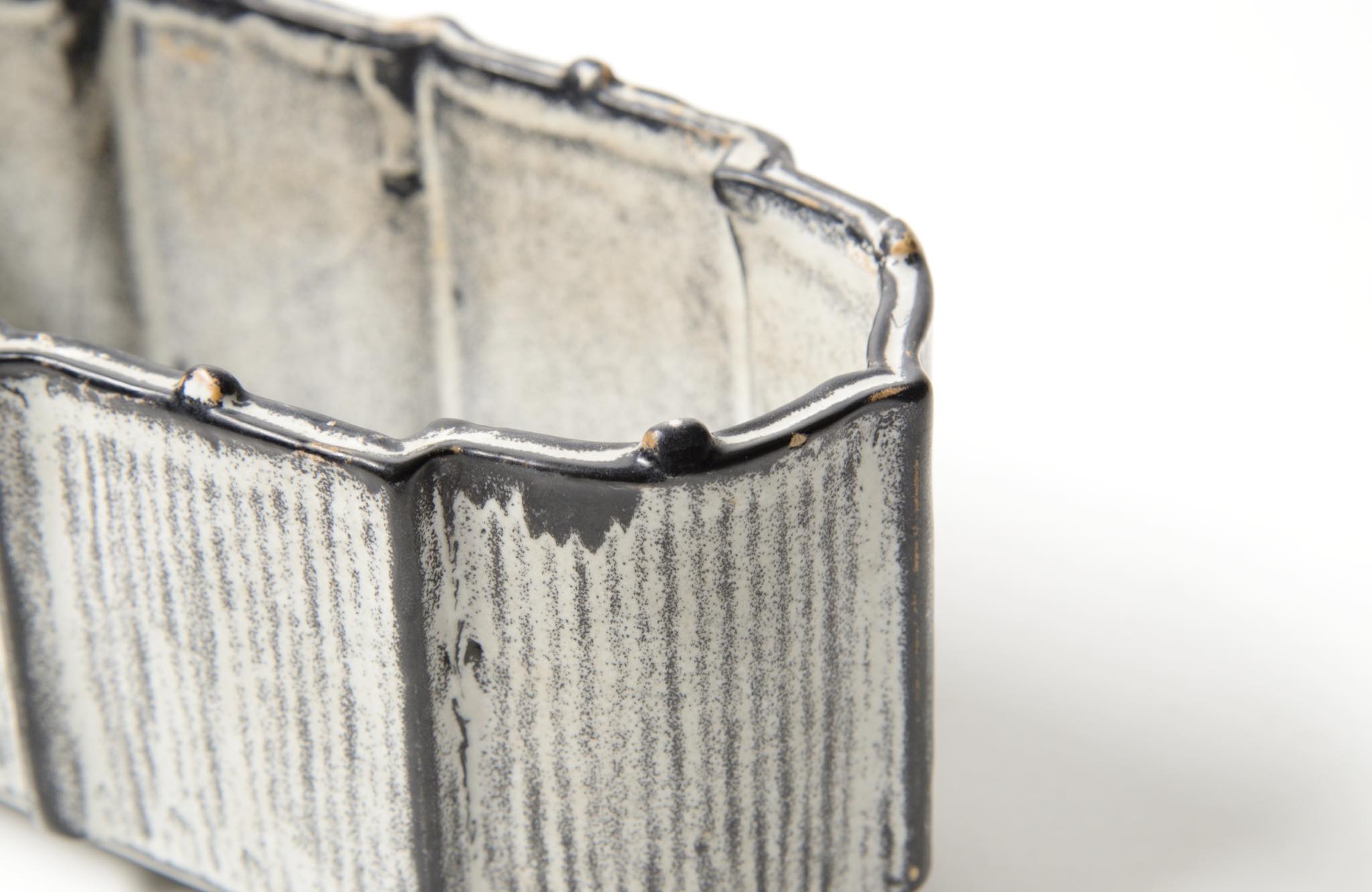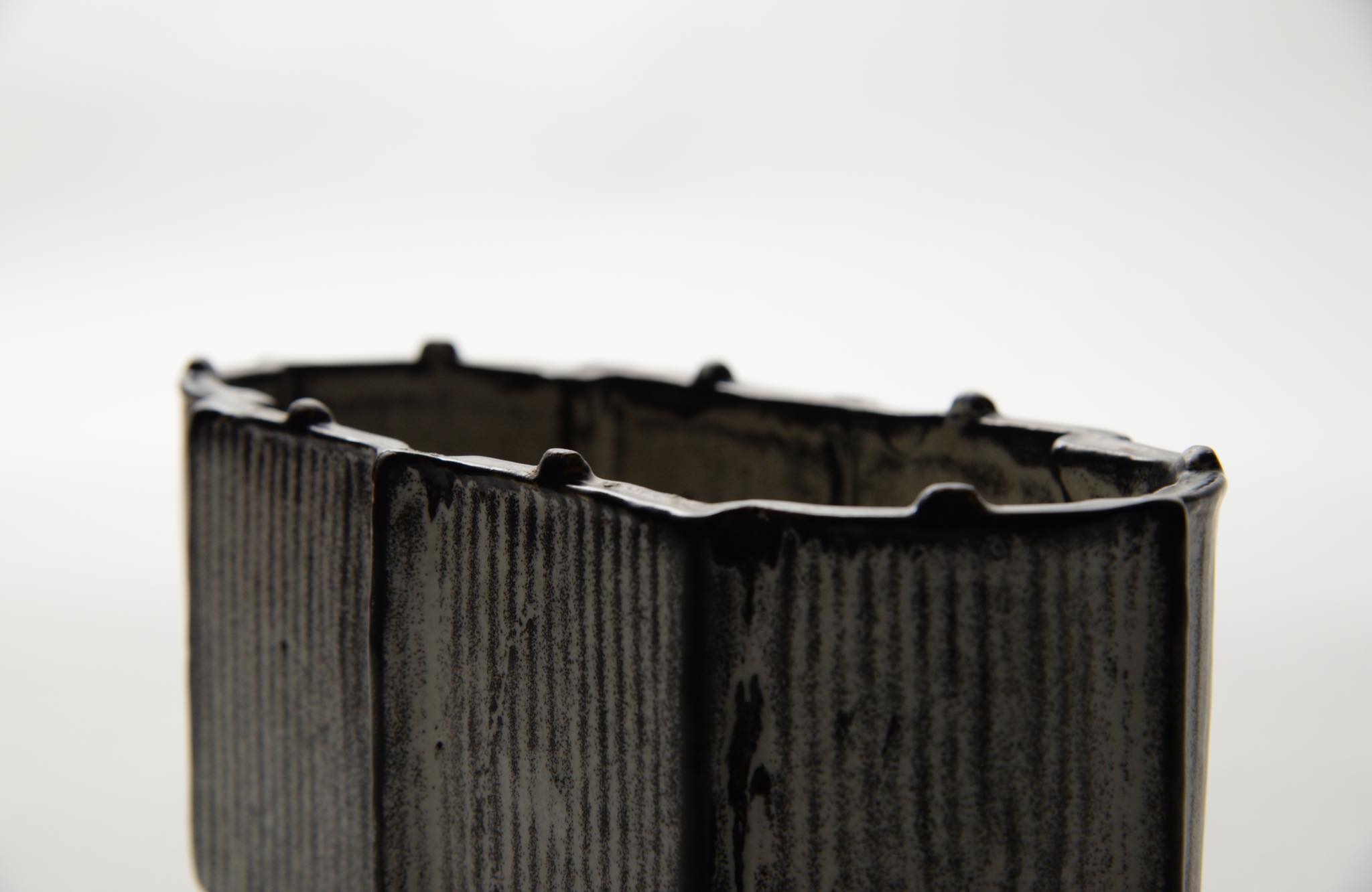 デンマークの陶芸家、Svend Hammershøi/スヴェン・ハマスホイによるベースです。1930年代頃に焼成されたもので、黒色釉の上から灰色釉を施釉し、スヴェンが得意とするマットでモノクロームな世界観が表現されています。本体に大きくニュウ(クラック)があり、水漏れはおろか衝撃にも弱い状態です。