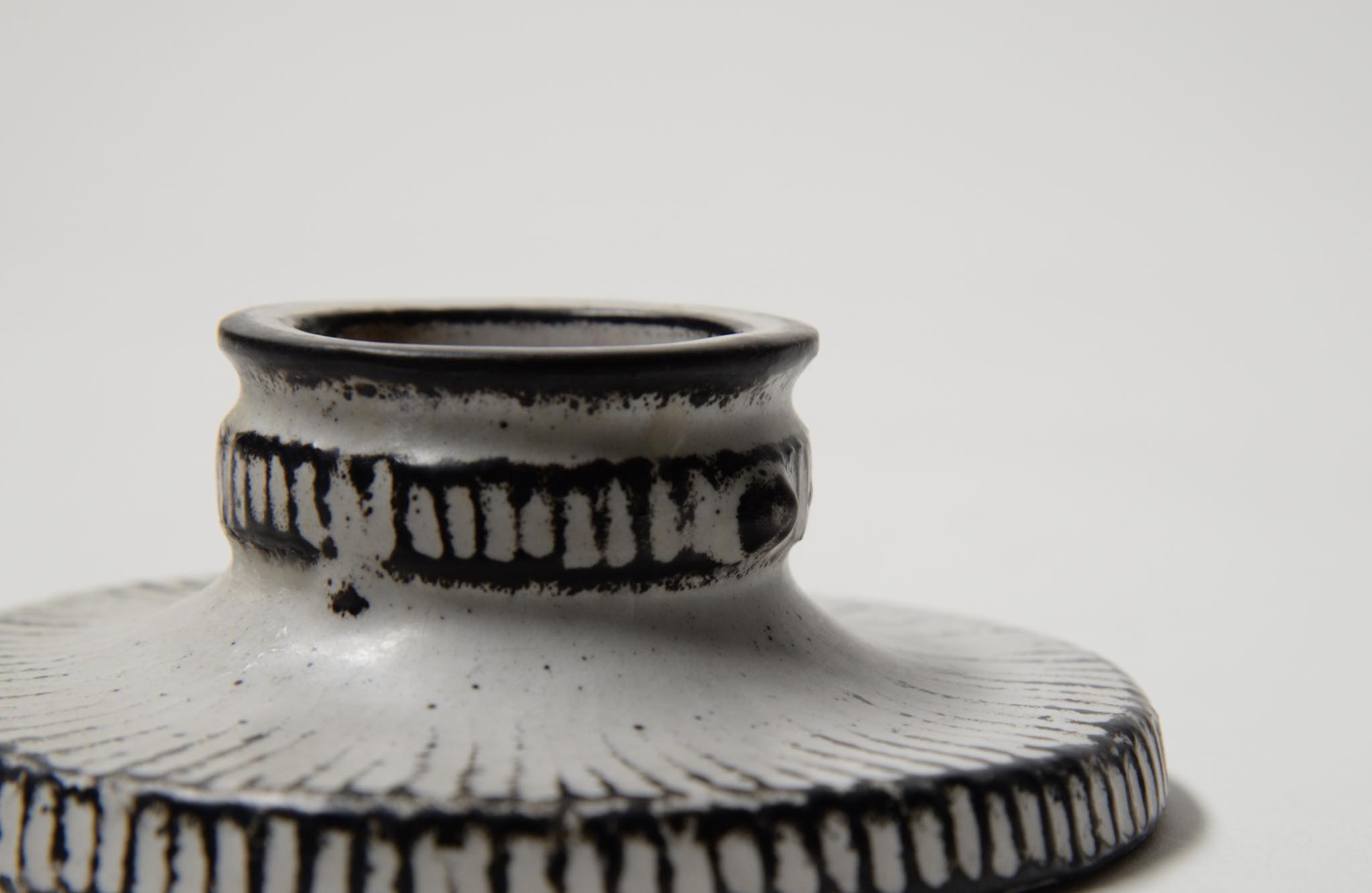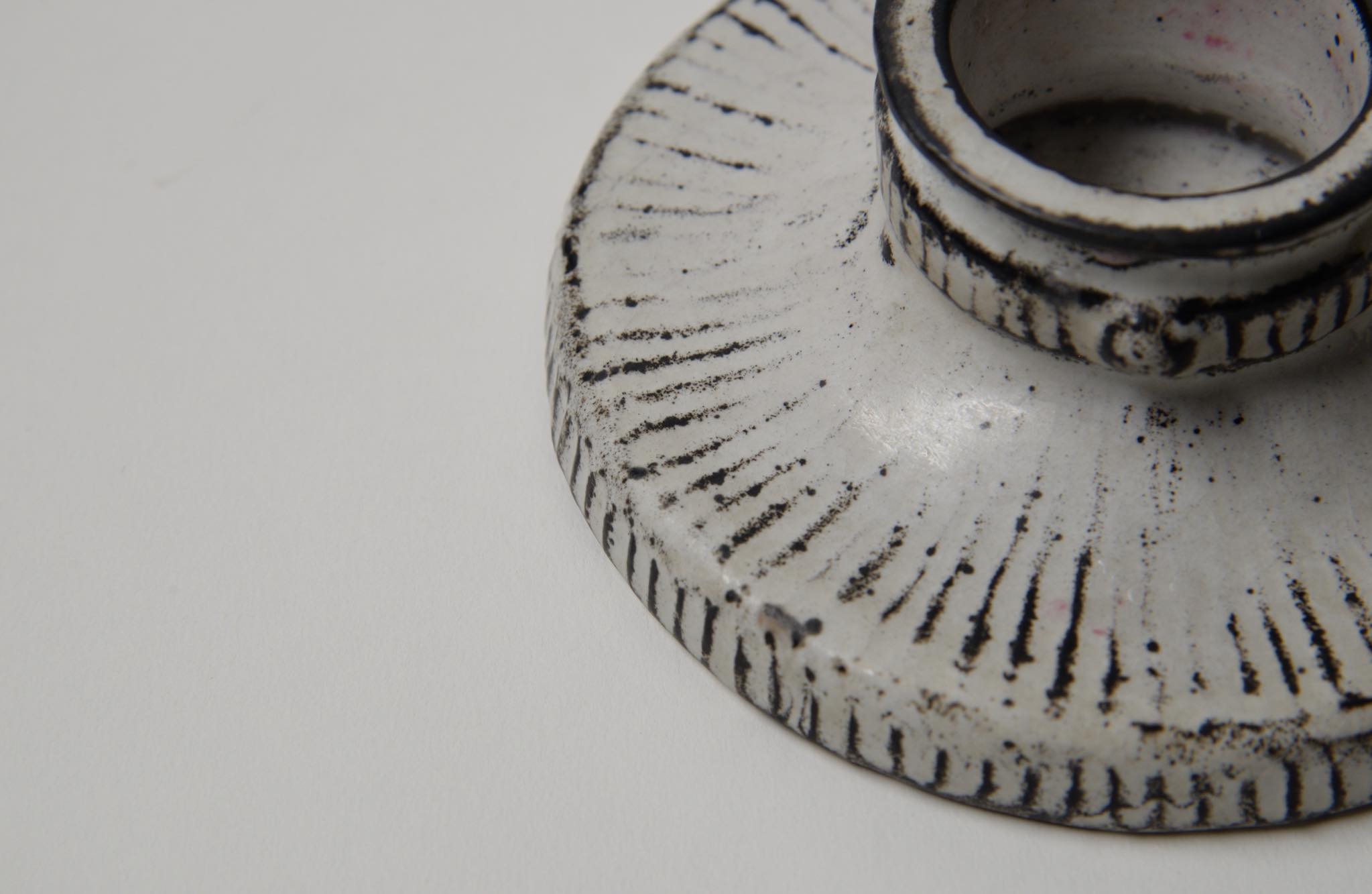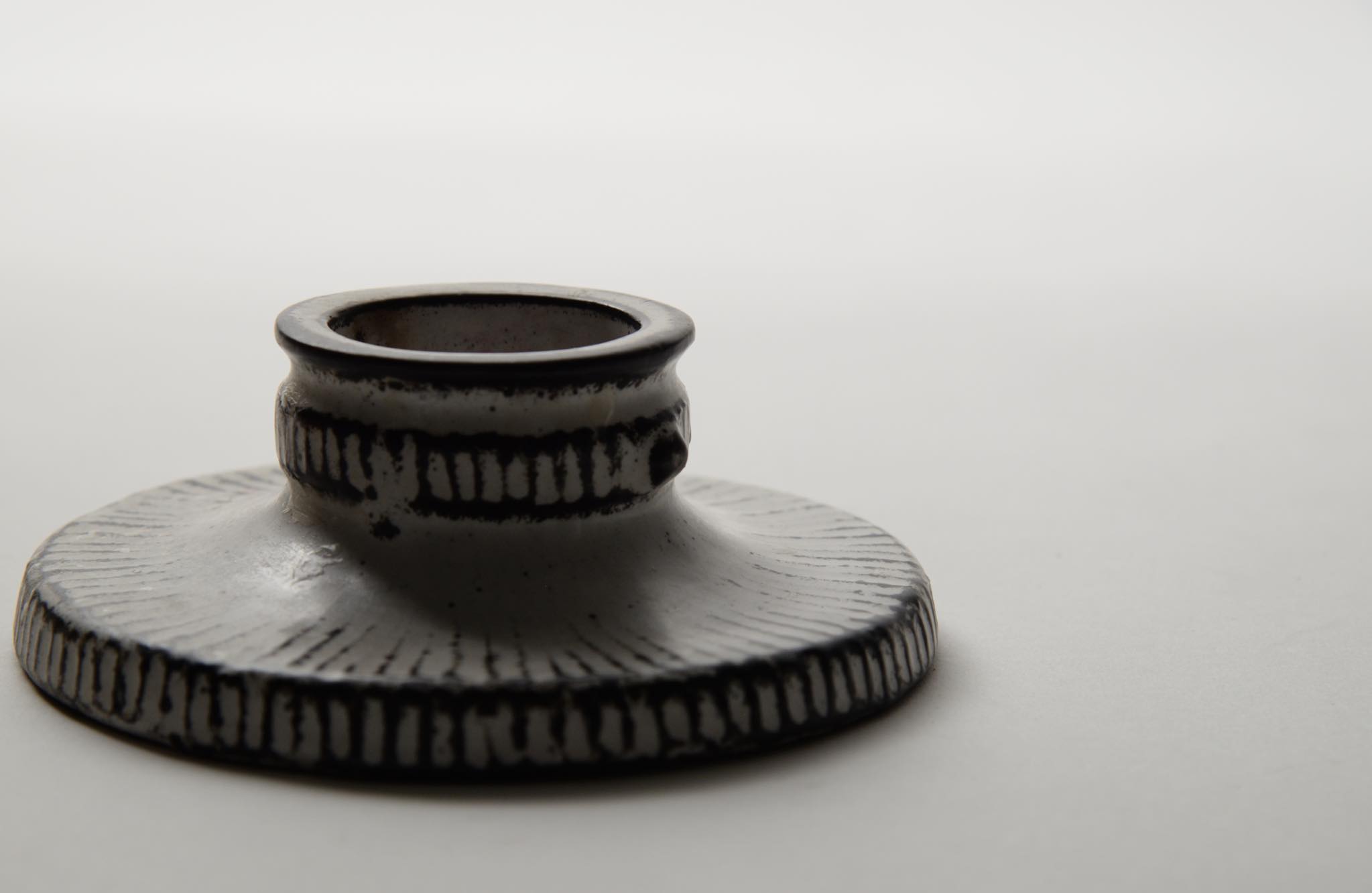 デンマークの陶芸家、Svend Hammershøi/スヴェン・ハマスホイによる燭台です。1930年代頃に焼成されたもので、黒色釉の上から灰色釉を施釉したもので、スヴェンが得意とするマットでモノクロームな世界観が表現されています。コンディションは良好です。
