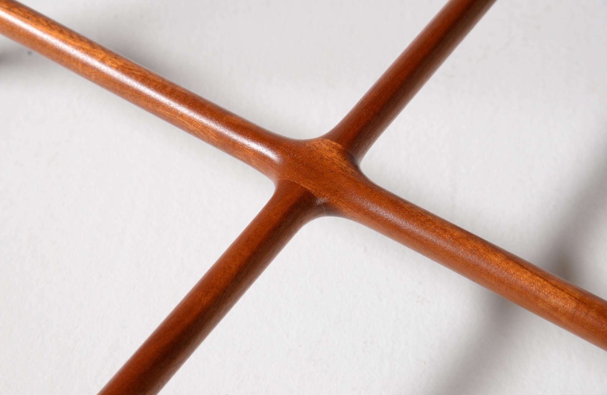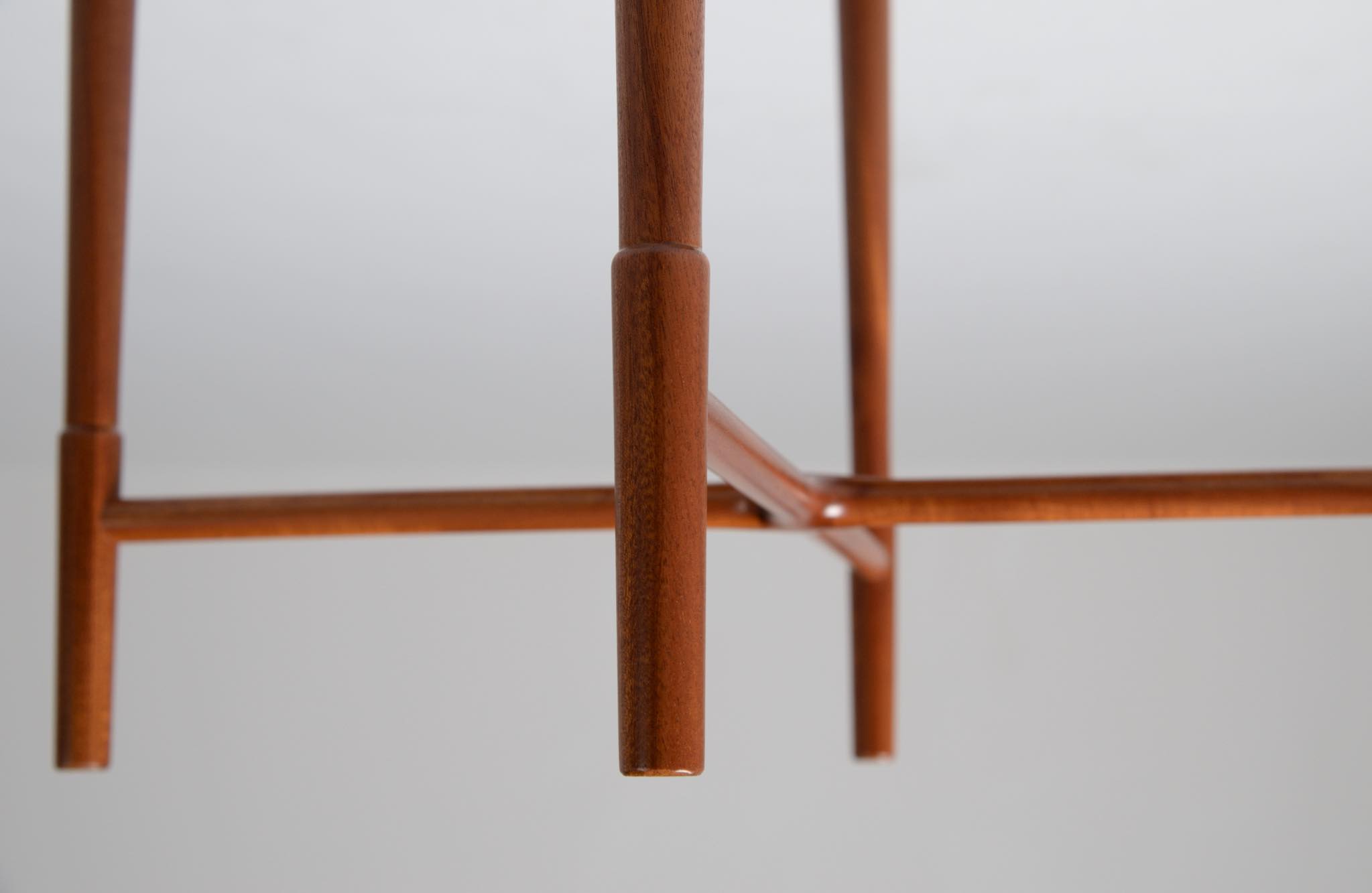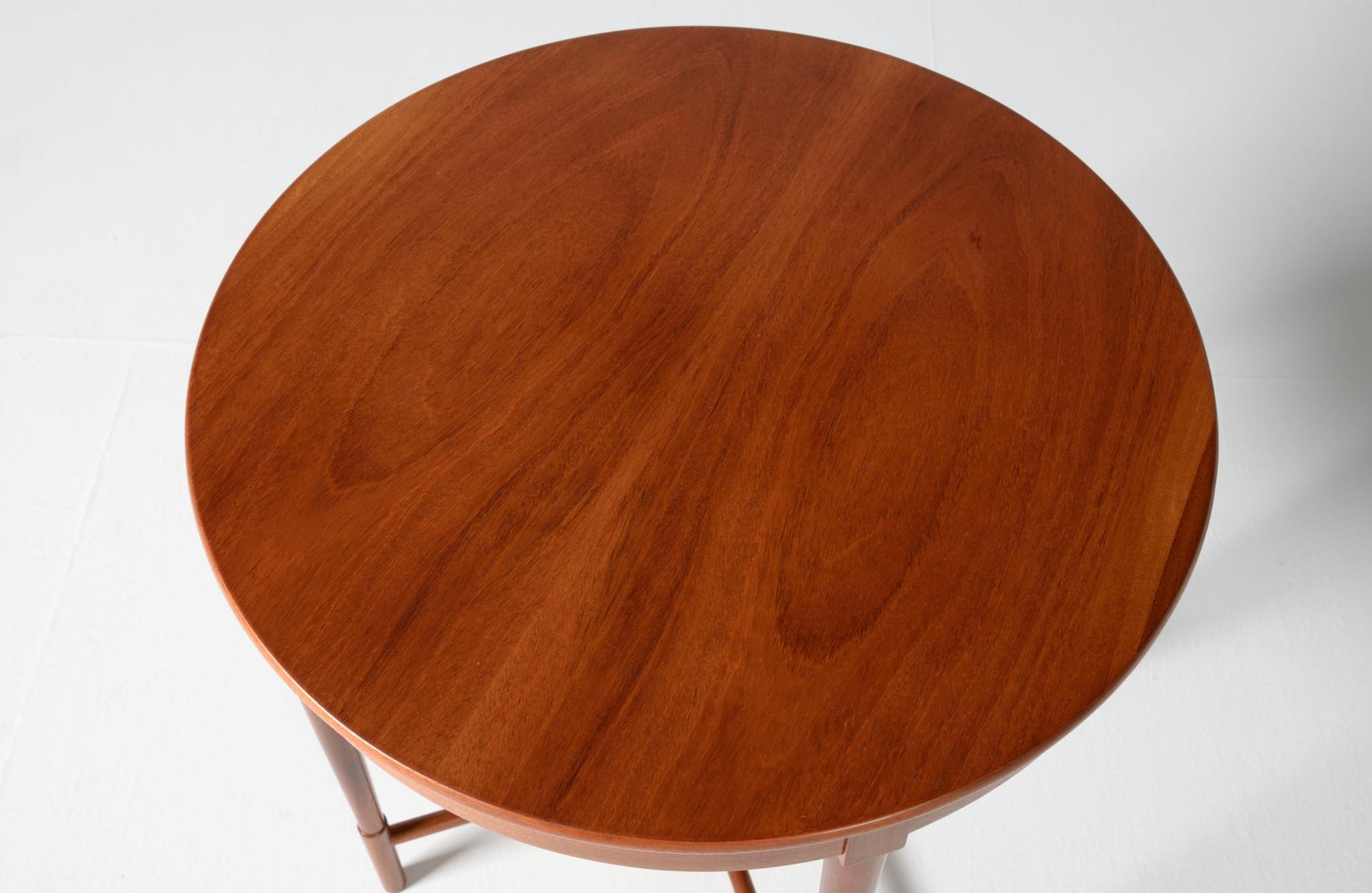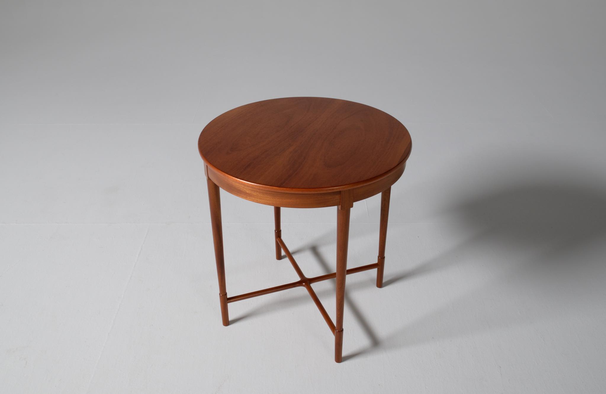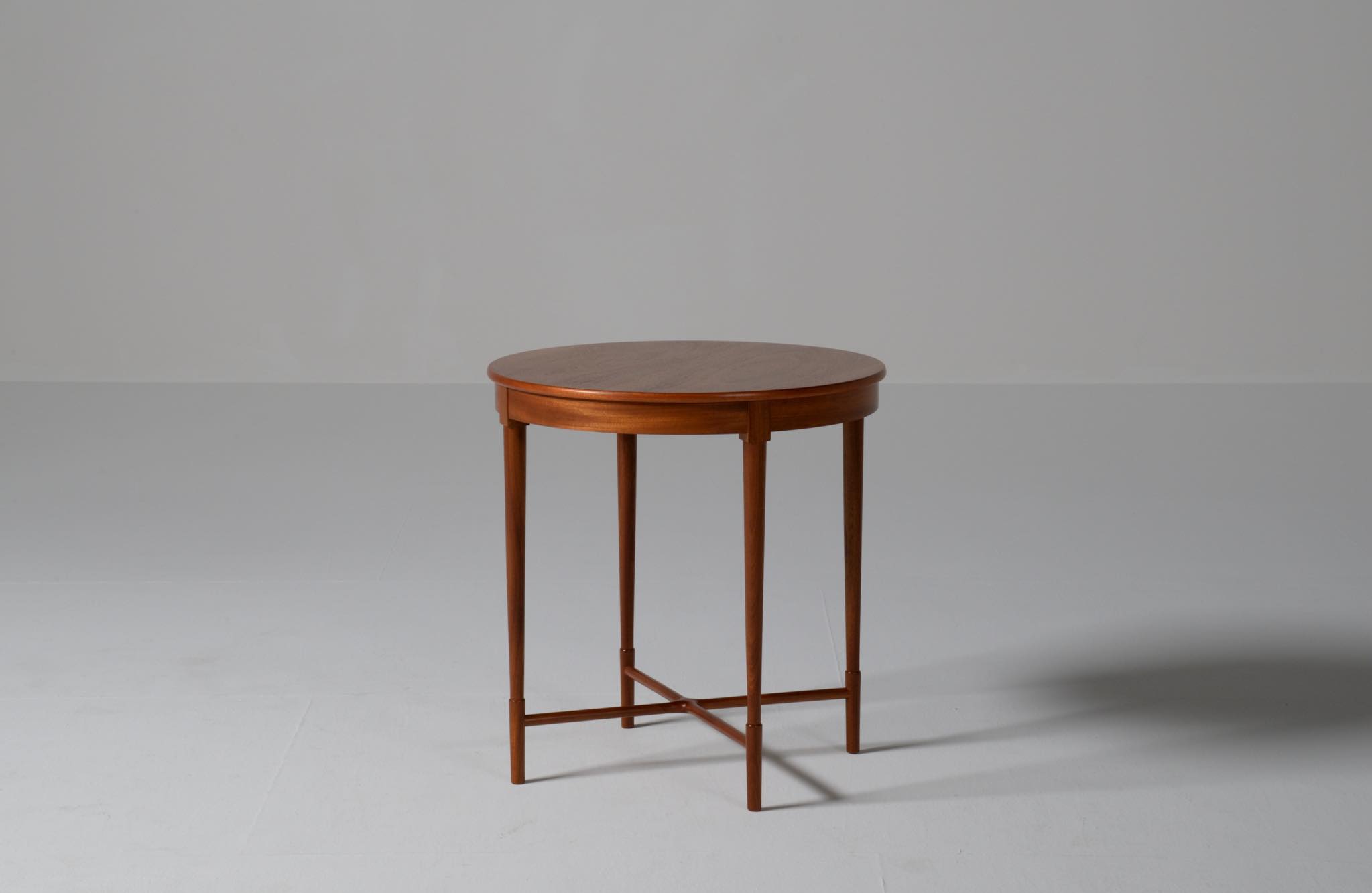デンマークの建築家兼デザイナーのMogens Lassen/モーエンス・ラッセンによるサイドテーブル、1940年代頃の作品と思われます。落ち着いたマホガニー材を用いたもので、デンマークの家具工芸として極上のクオリティーを誇る作品です。背高のフォルムや貫の接合など見所があります。コンディションは良好です。