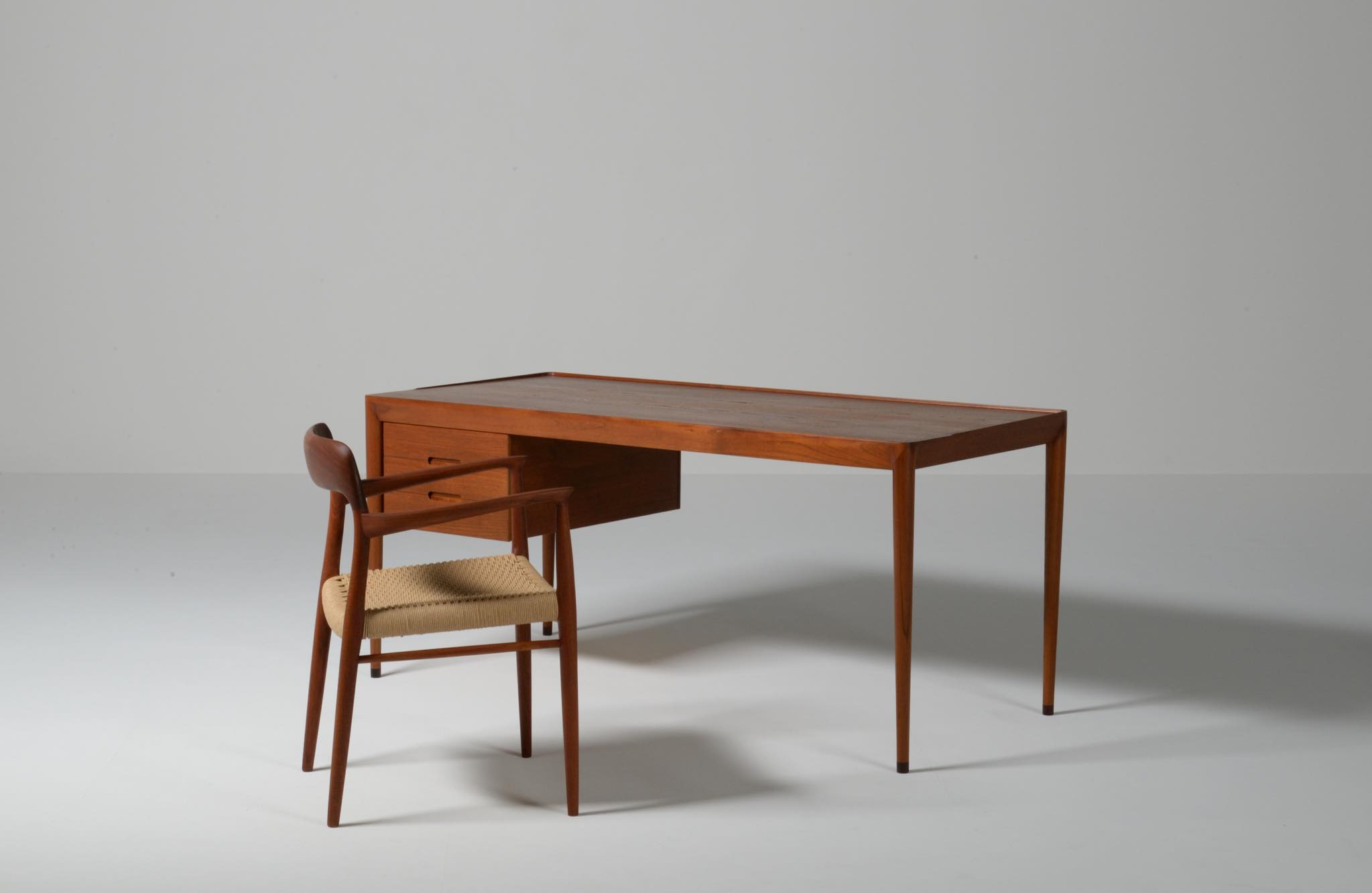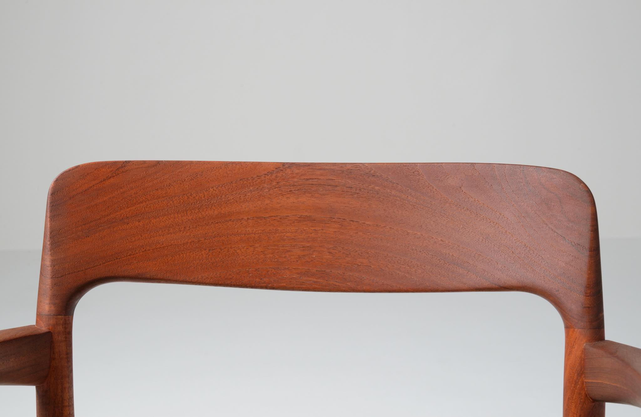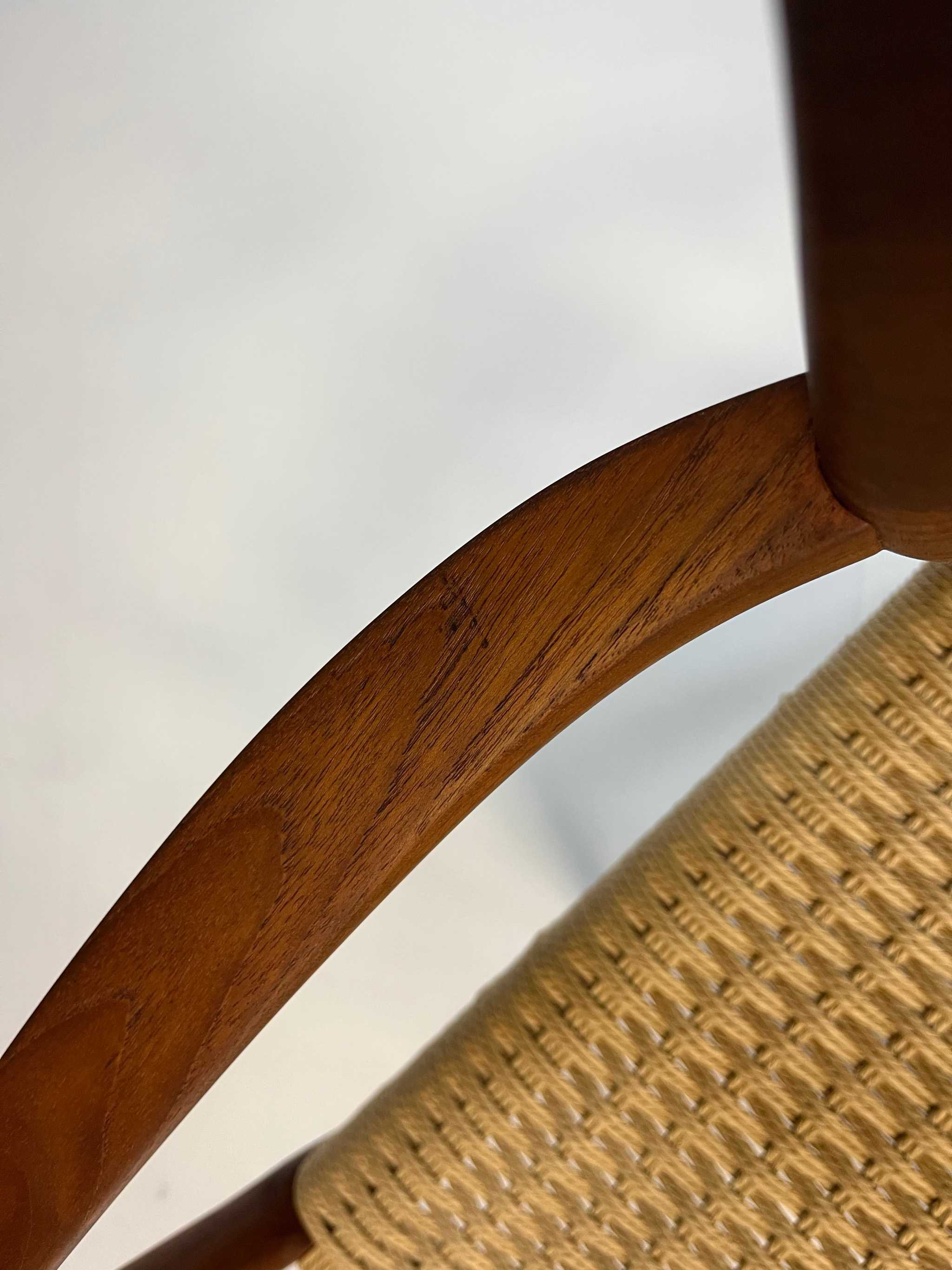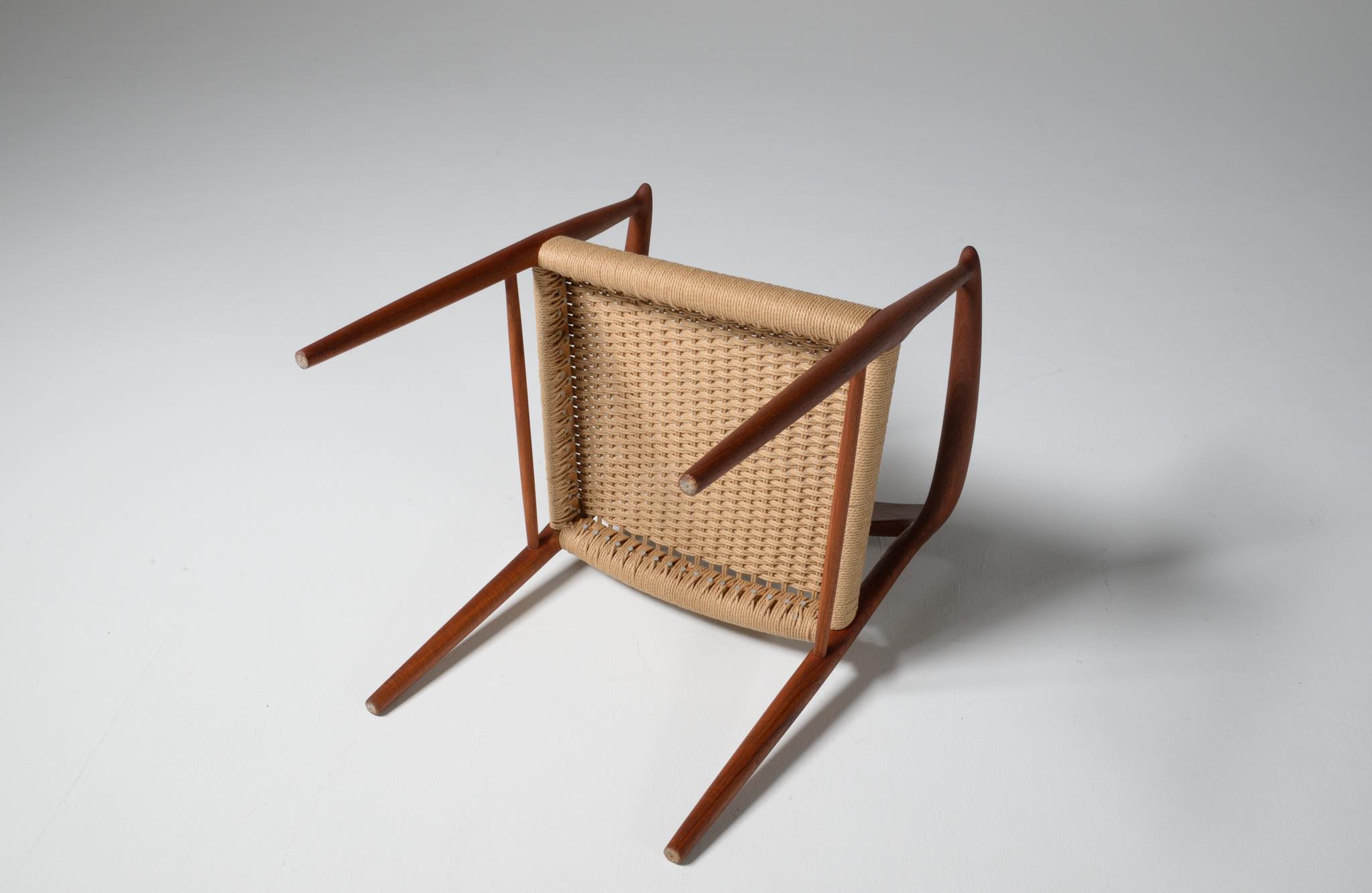 デンマークのデザイナー、N.O. Møller/ニルス・オットー・モラーによるアーム付きダイニングチェアです。自身の工房、J.L.Møller/J.L.モラーによるもので、1960年代頃に作られたものでしょう。チーク材のフレームは程よい経年感があり、目立った傷もなく良好です。座面のペーパーコードは新たに張り替えました。