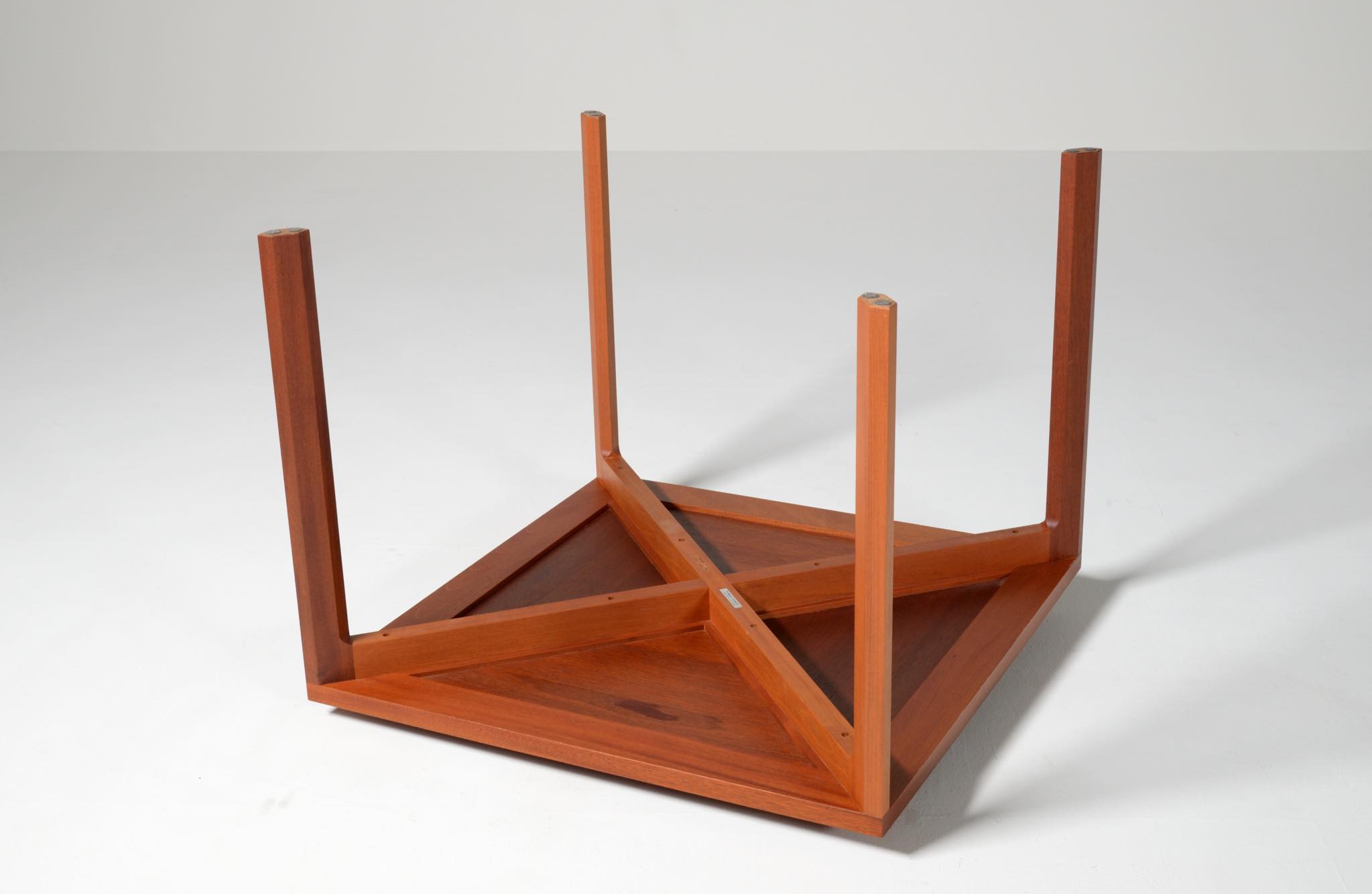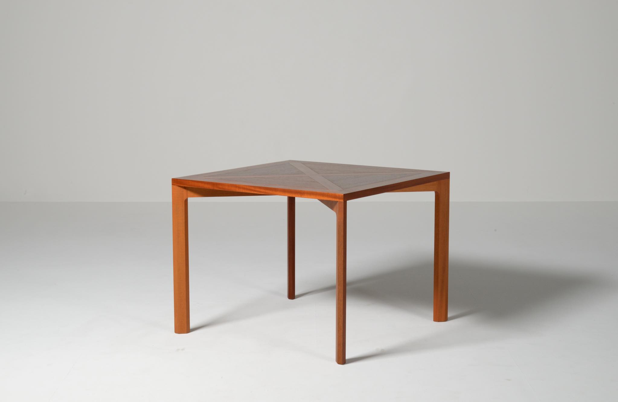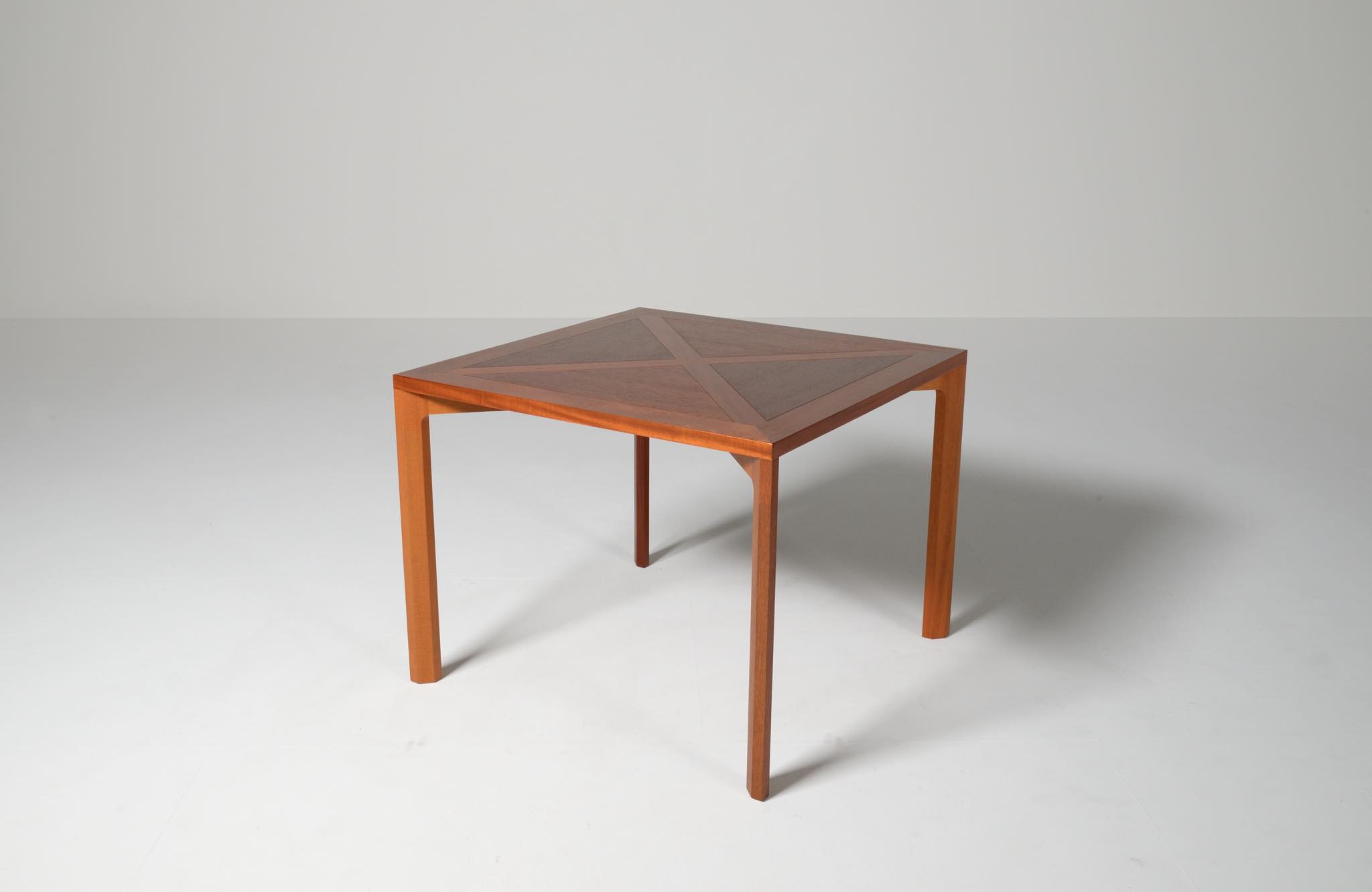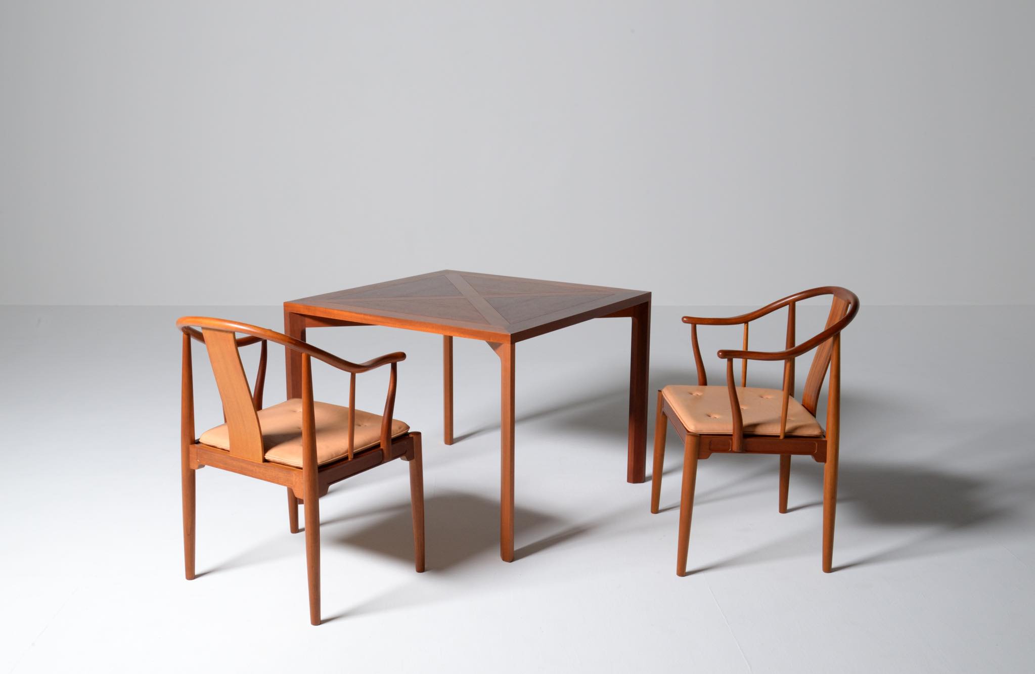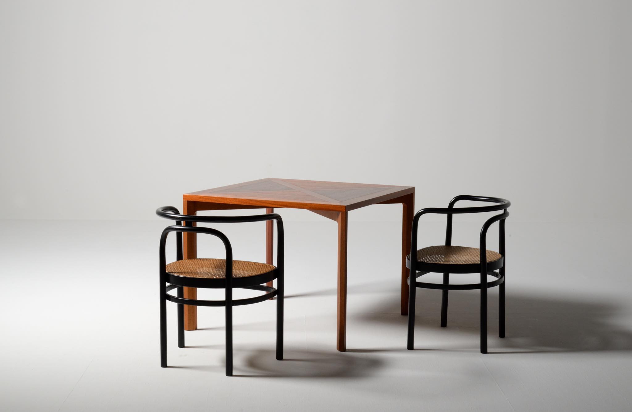 デンマークを代表する家具デザイナーの Poul Kjærholm/ポール・ケアホルムによる"PK70"カフェテーブル、90センチ角です。オリジナルのPK70は、1978年にクリスチャンハウンの KANALEN/カナルレストランのためにケアホルムによってデザイン、PP Moblerによって製造されたもので、コペンハーゲンの工芸博物館(現デザインミュージアム)のカフェにて近年まで使われていました。