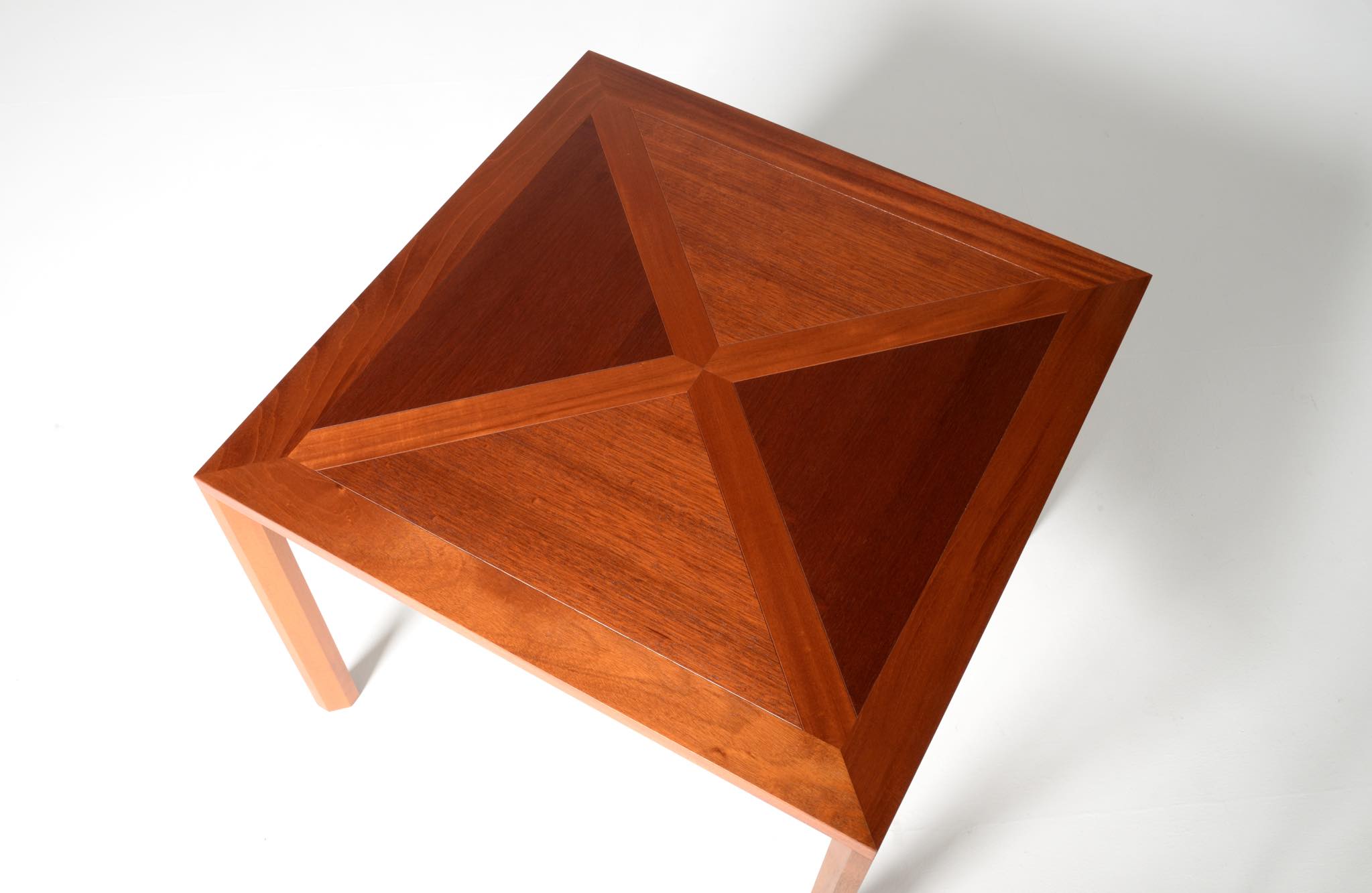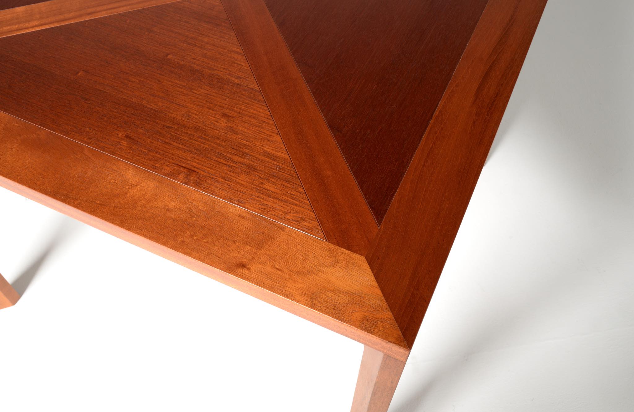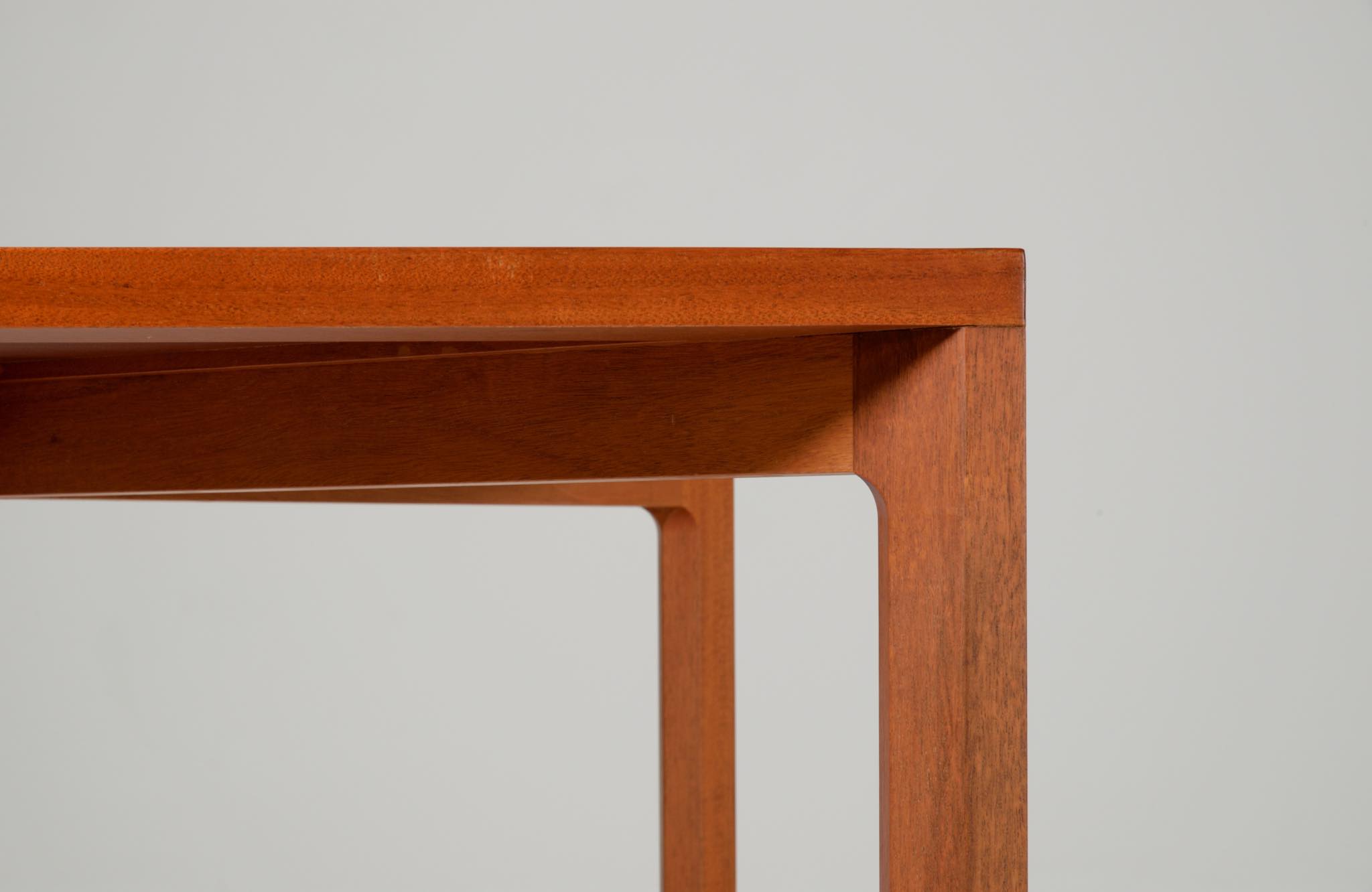 こちらのテーブルは2003年に一般向けに作られたもので、マホガニーの木取りが美しいテーブルです。角の接合にわずかな隙間が生じておりますが、ゆるみではなく経年による材の縮みかと思われます。コンディションは良好です。もう一台同品が入荷しましたがサイズが異なります。