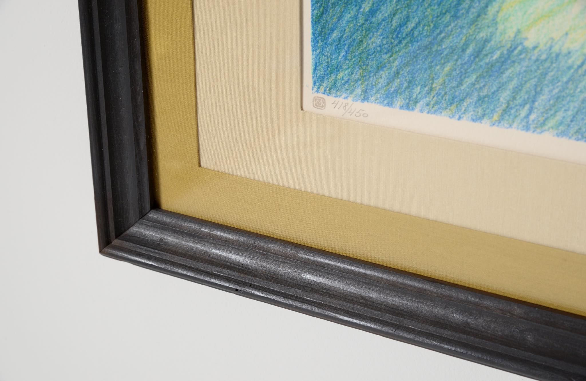 Lithograph in colors in repainted original frame with new mat