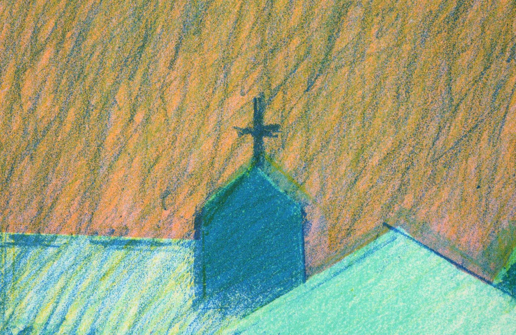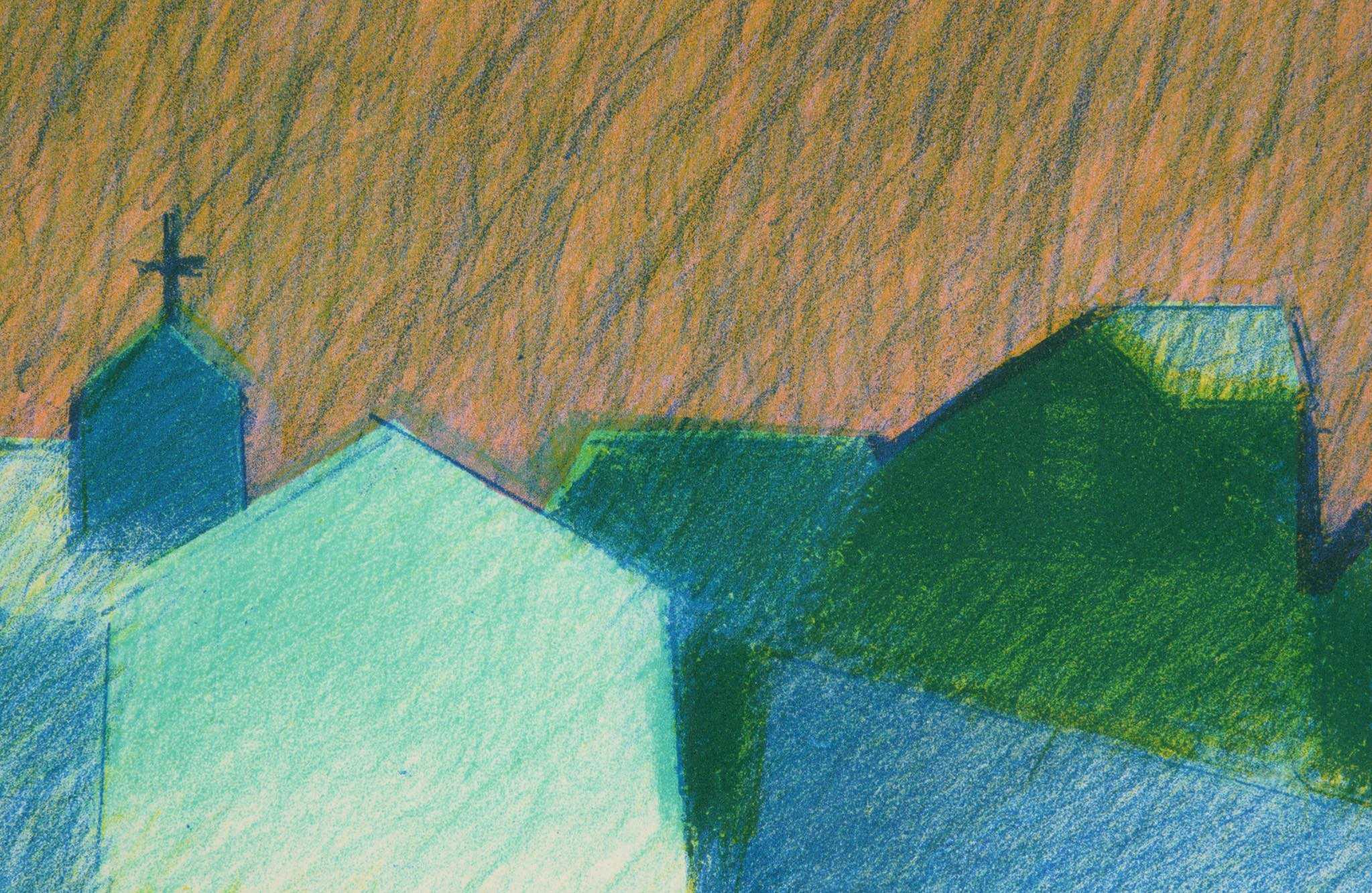 デンマーク人画家、Jack Kampmann/ジャック・カンプマンによるリトグラフ作品、フェロー諸島の厳しい自然環境と対峙しながら生活する島民たちの家々や情景を独自のタッチで描いています。