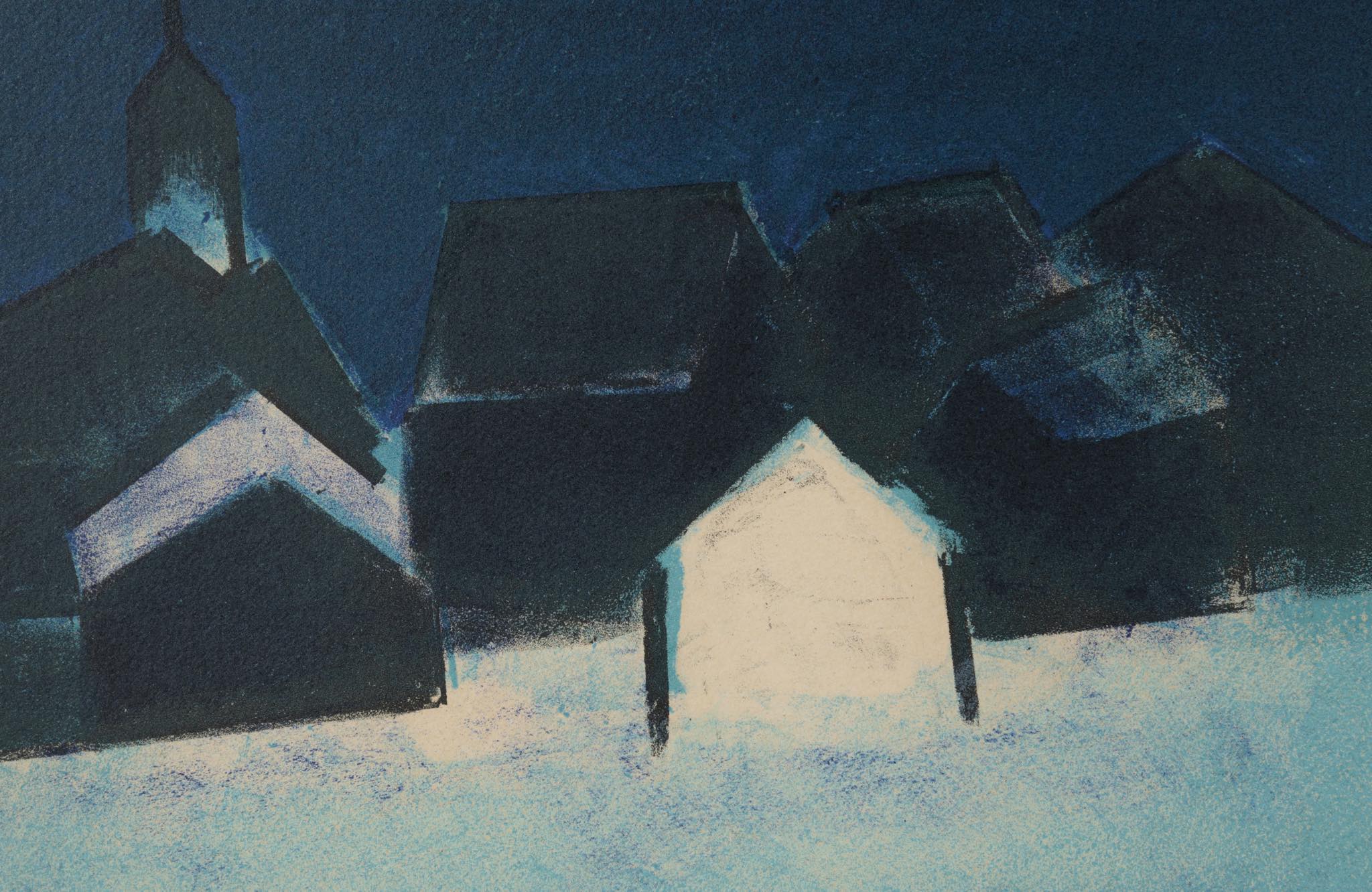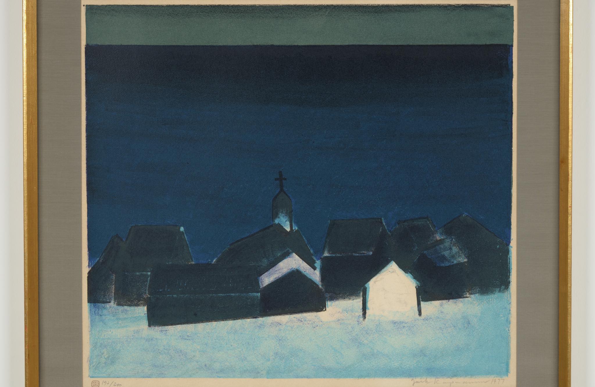 デンマーク人画家、Jack Kampmann/ジャック・カンプマンによるリトグラフ作品です。フェロー諸島の厳しい自然環境と対峙しながら生活する島民たちの家々や情景を独自のタッチで描いています。