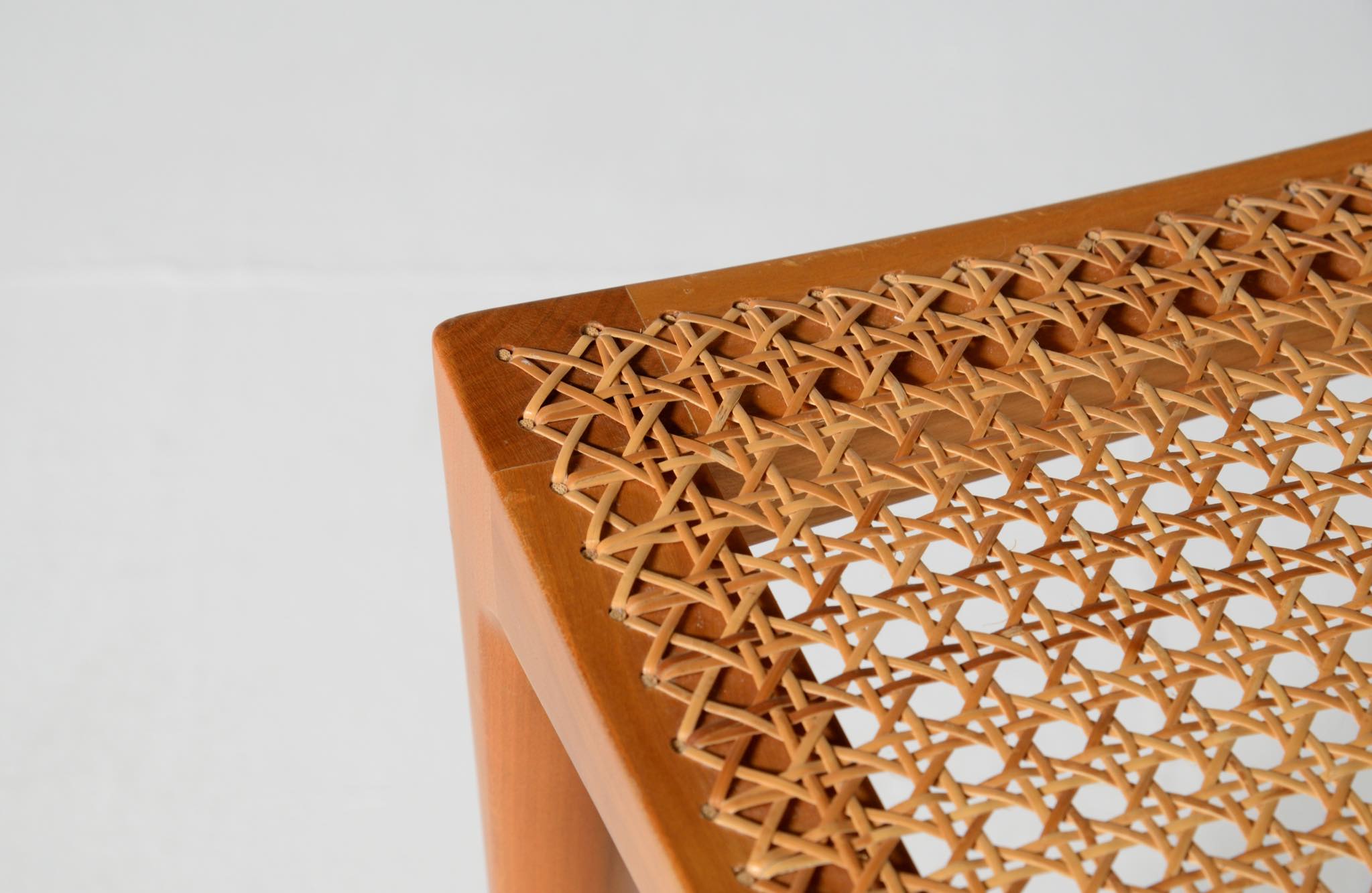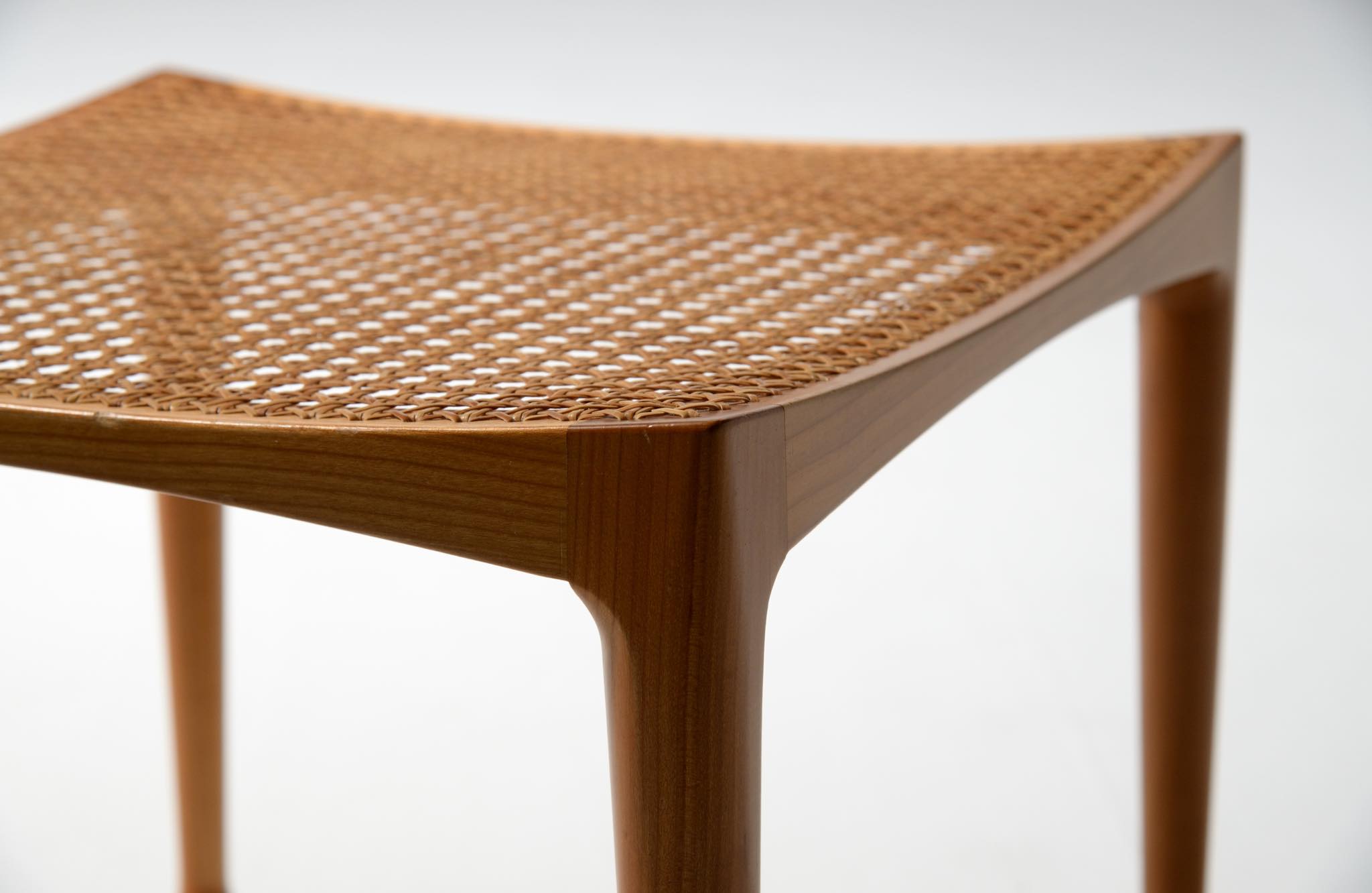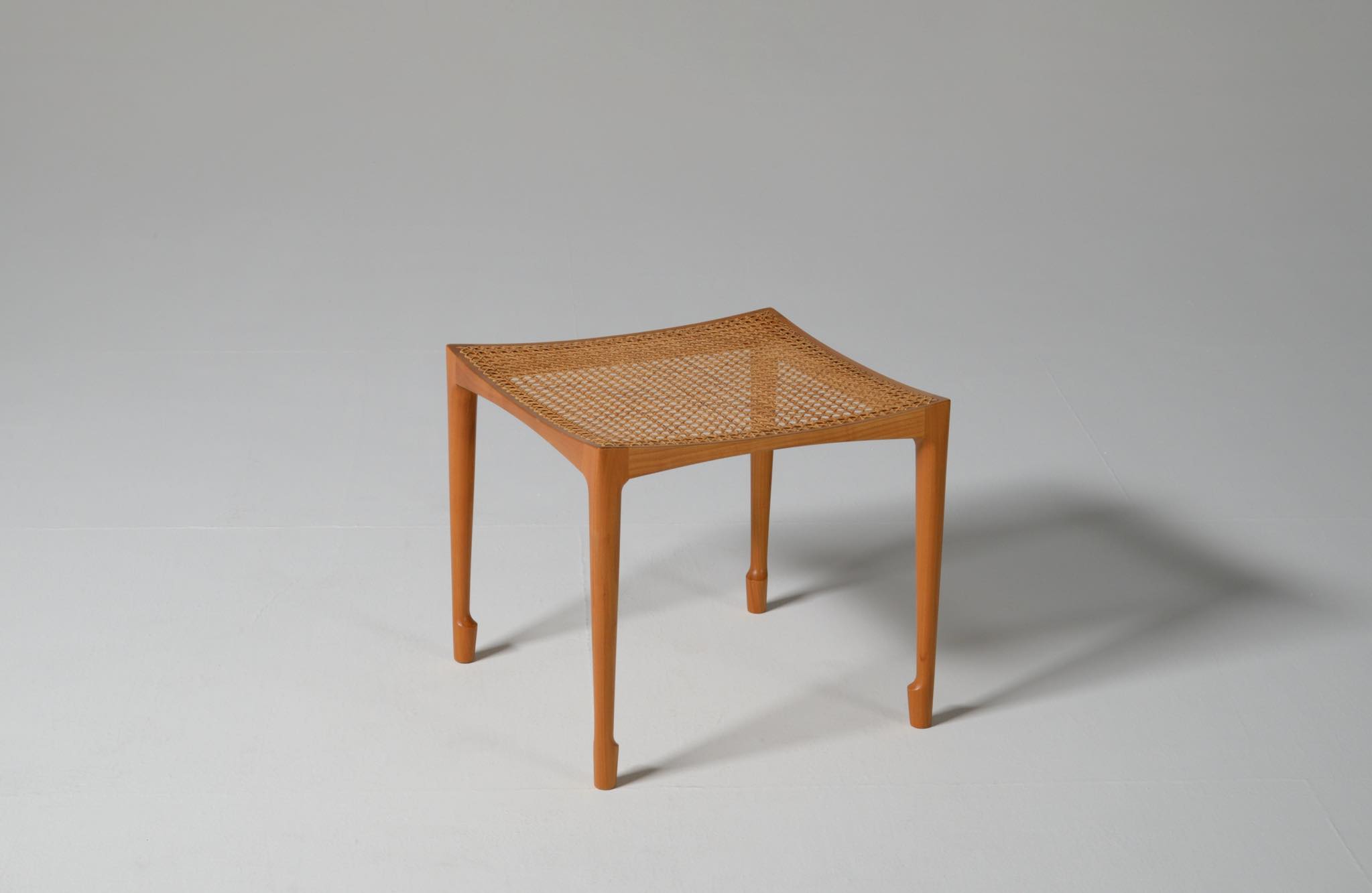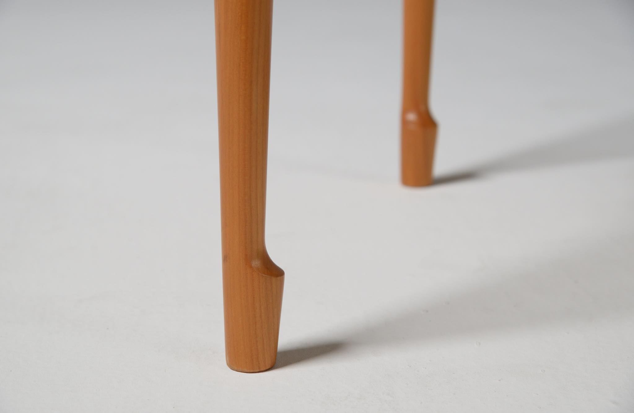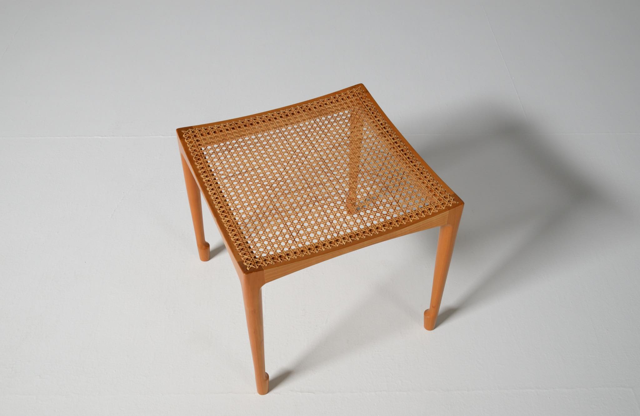 デンマークの家具デザイナー、Bernt/ベアントによる代表作のスツールです。卒業制作で発表し高評価を得た作品として知られています。近年まで Rud. Rasmussen工房にて作られていましたが、こちらのスツールは初期の工房の Wørtz Møbelsnedkeriにて、1960年代頃に作られたものとされています。無垢のチェリー材が用いられており、籐張りの劣化も無さそうです。綺麗な状態です。
