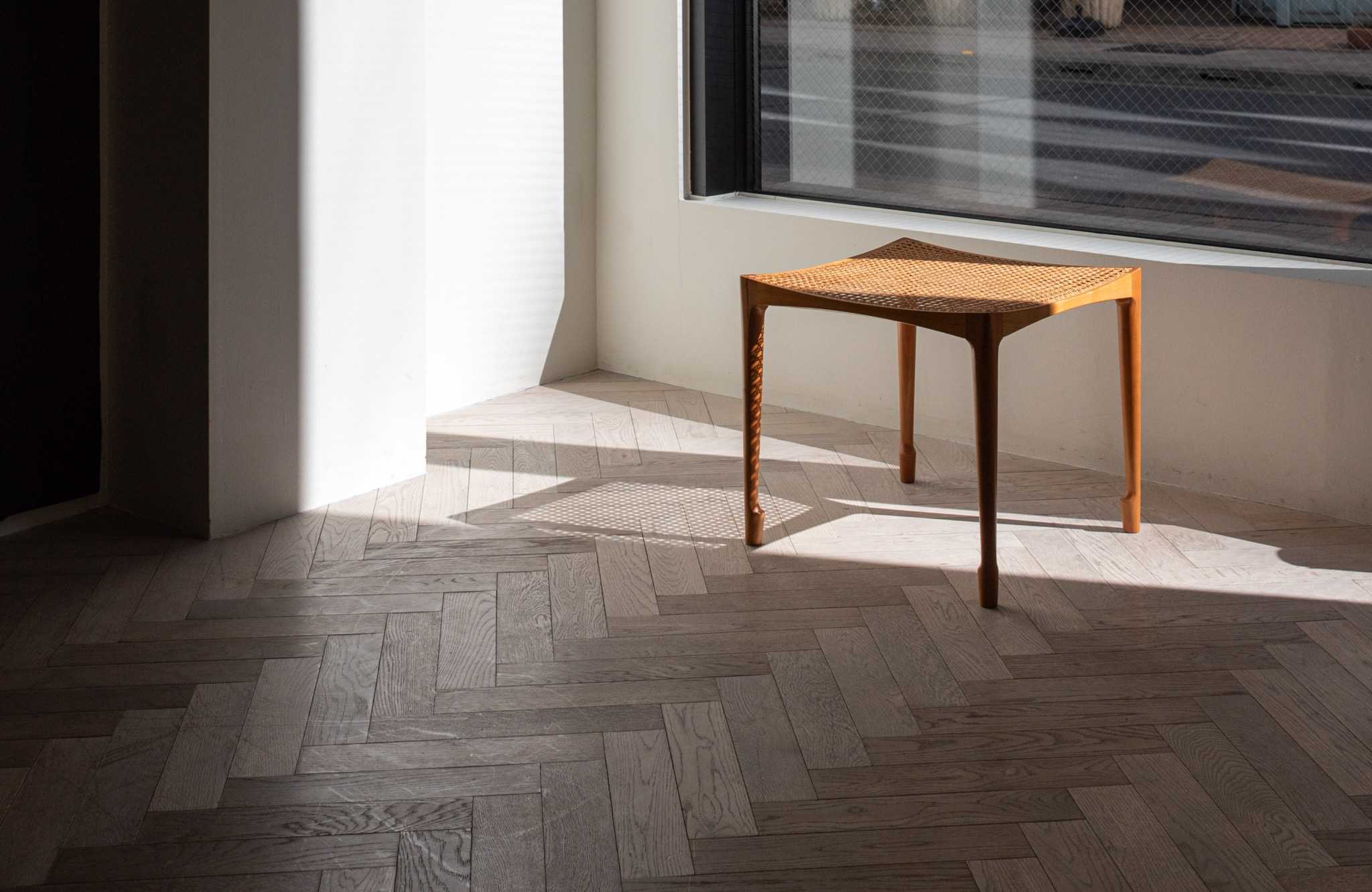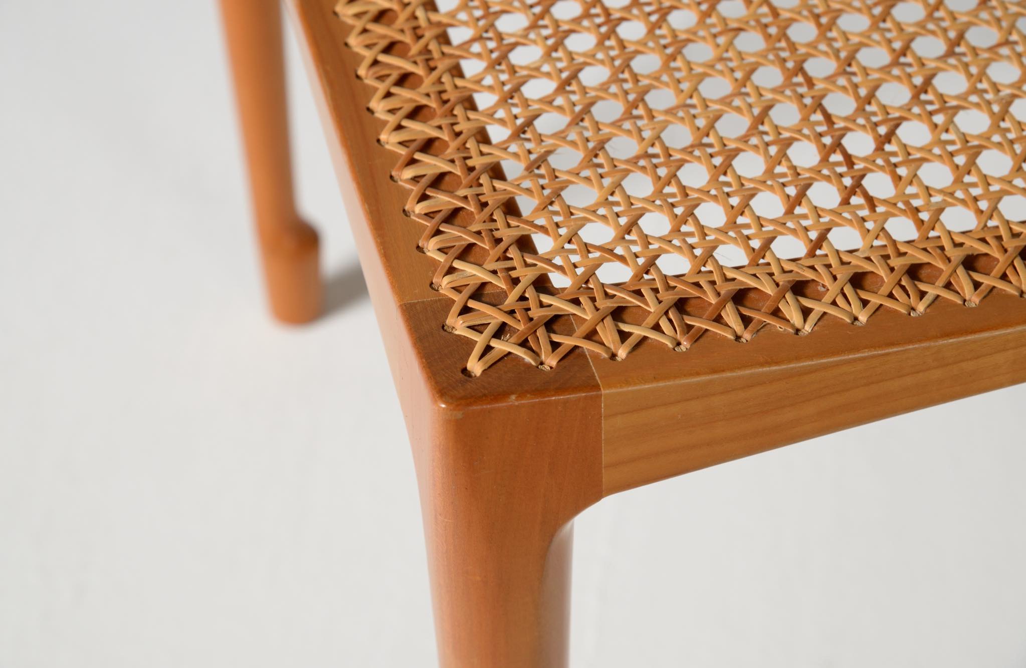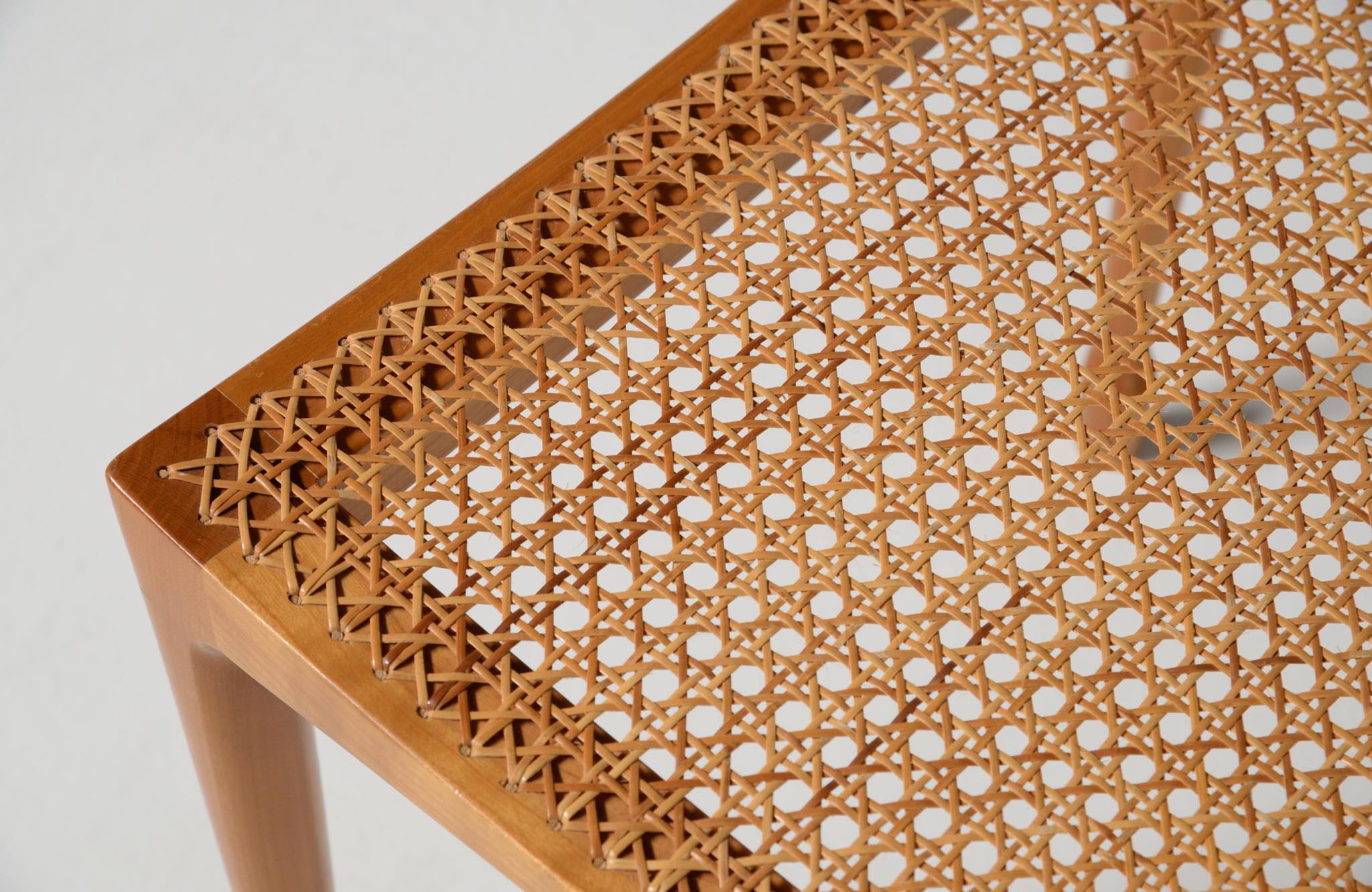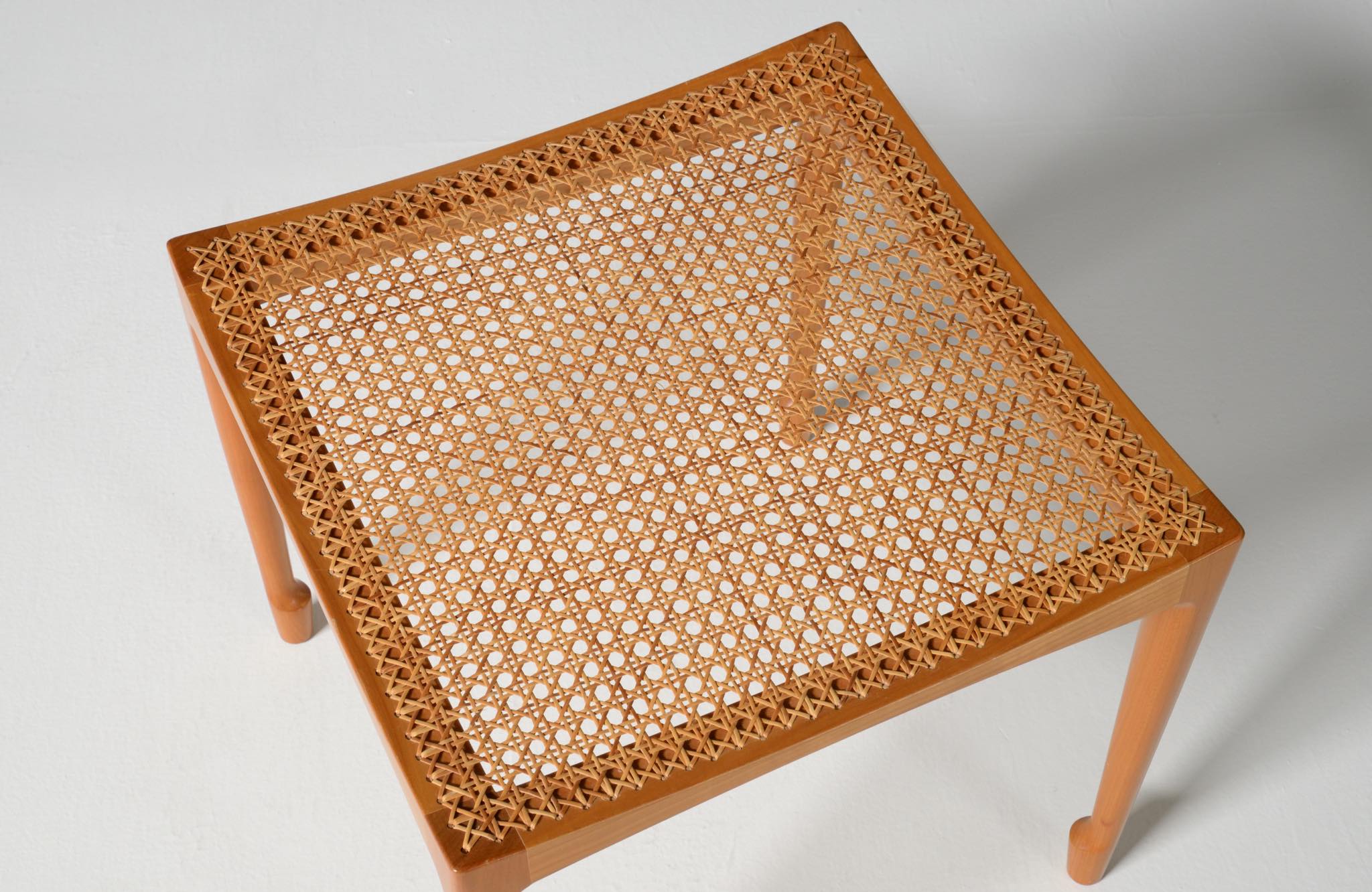 デンマークの家具デザイナー、Bernt/ベアントによる代表作のスツールです。卒業制作で発表し高評価を得た作品として知られています。近年まで Rud. Rasmussen工房にて作られていましたが、こちらのスツールは初期の工房の Wørtz Møbelsnedkeriにて、1960年代頃に作られたものとされています。無垢のチェリー材が用いられており、籐張りの劣化も無さそうです。綺麗な状態です。
