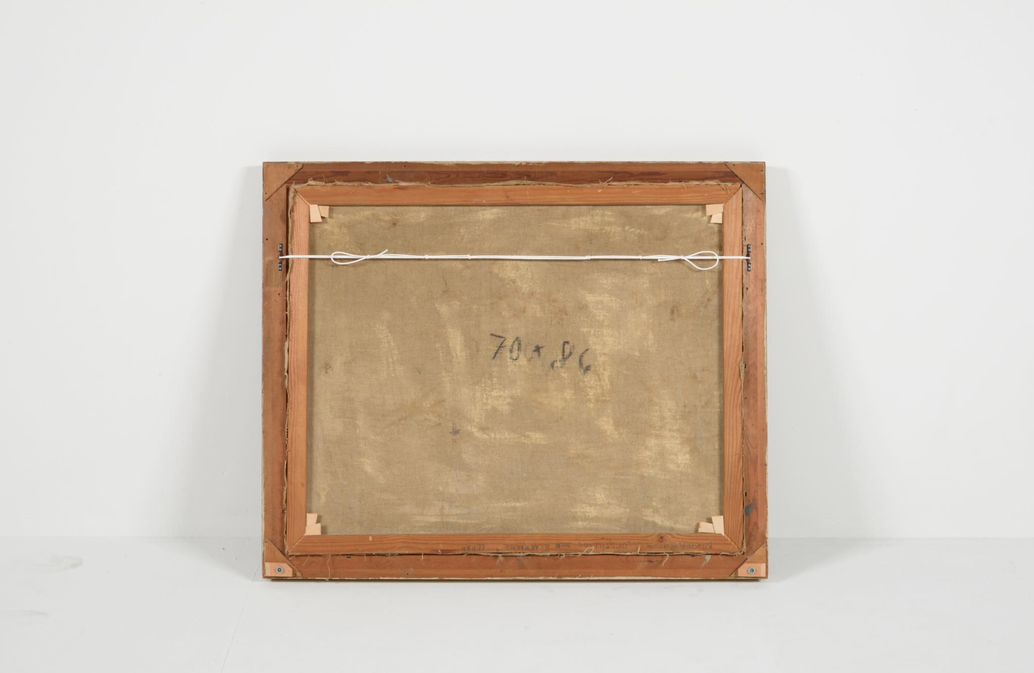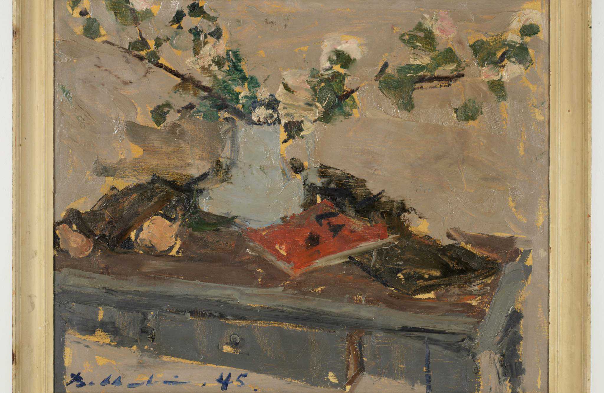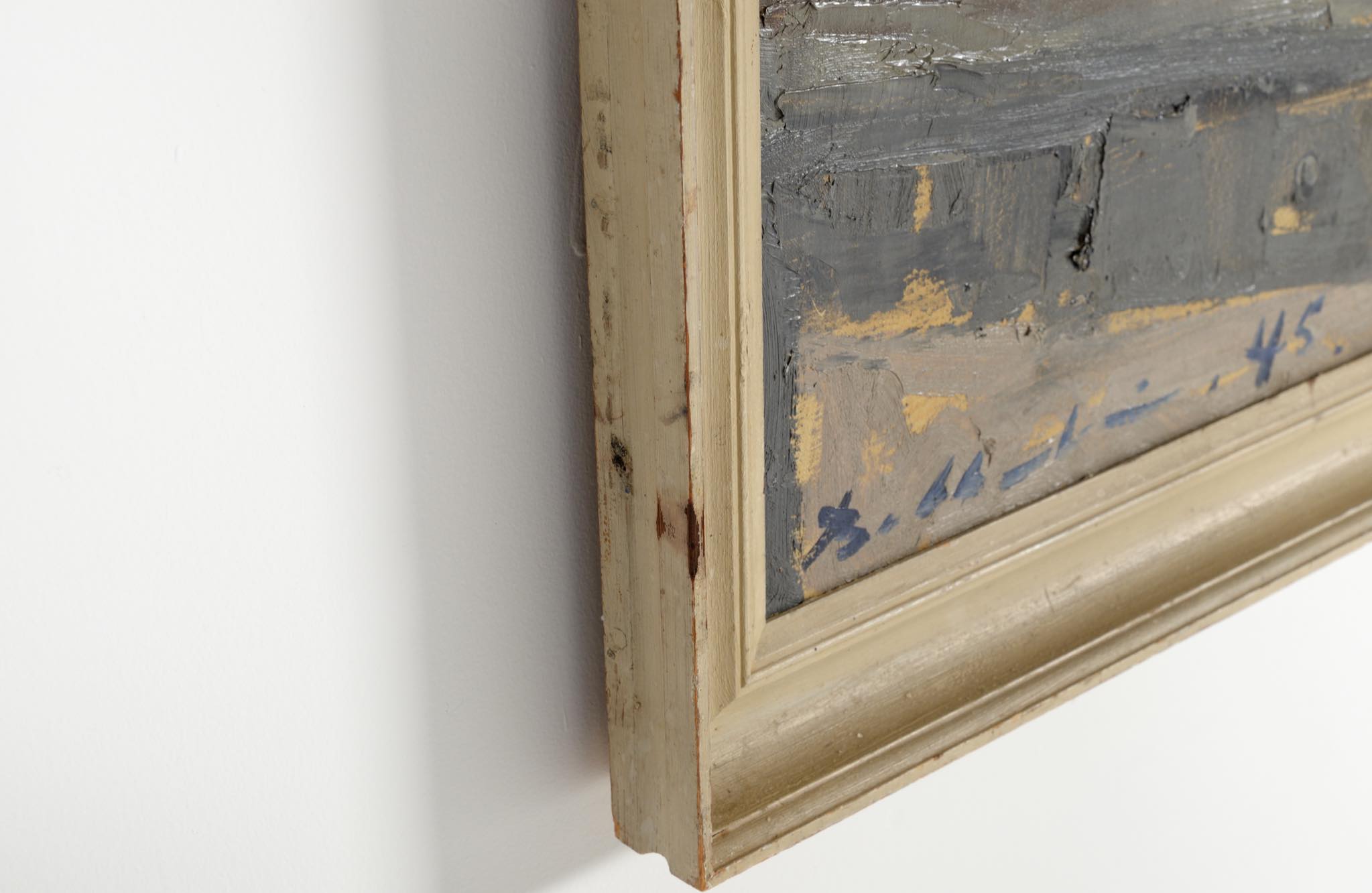 20世紀前中葉のデンマークで活躍した画家のBørge Bokkenheuser/ボーエ・ボッケンホイザーによる油彩の静物画です。1945年に制作されたもので、卓上に置かれた薄瑠璃色のピッチャーが主題となった作品です。タイトルは背面のキャンバス枠に鉛筆で書き込まれています。作品のコンディションは良好ですが、フレームがまあまあの経年感があります。作品と馴染んでいるのでこのままとしておりますが、新たに誂えることも可能ですのでお気軽にご相談ください。