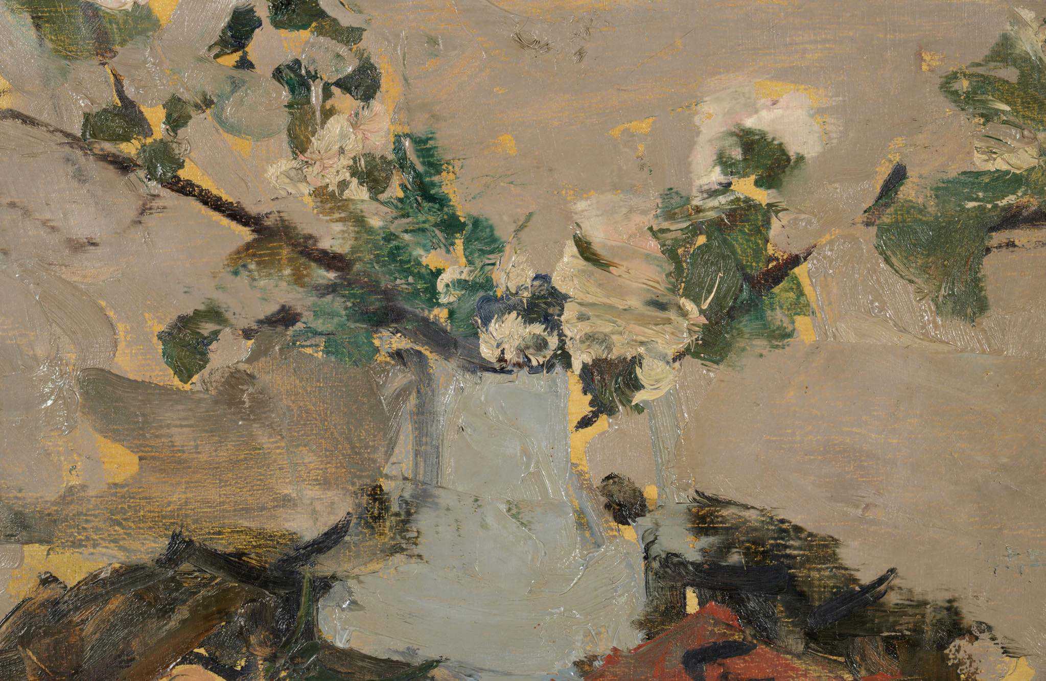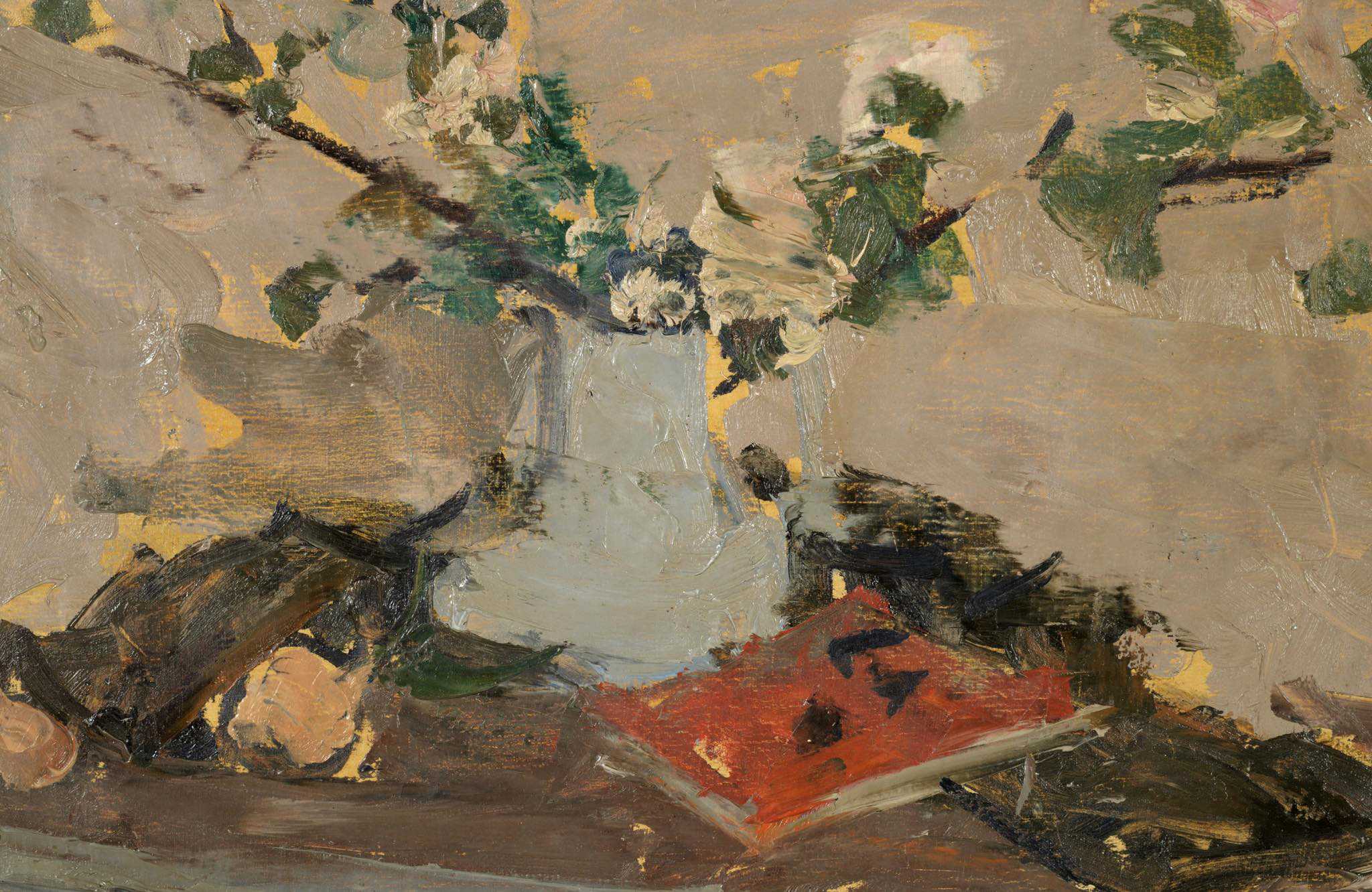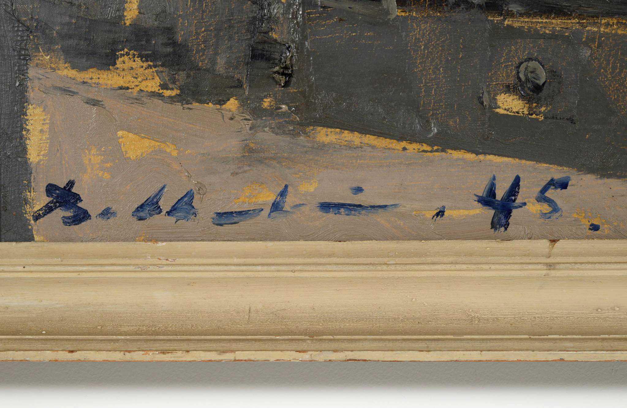20世紀前中葉のデンマークで活躍した画家のBørge Bokkenheuser/ボーエ・ボッケンホイザーによる油彩の静物画です。1945年に制作されたもので、卓上に置かれた薄瑠璃色のピッチャーが主題となった作品です。タイトルは背面のキャンバス枠に鉛筆で書き込まれています。作品のコンディションは良好ですが、フレームがまあまあの経年感があります。作品と馴染んでいるのでこのままとしておりますが、新たに誂えることも可能ですのでお気軽にご相談ください。