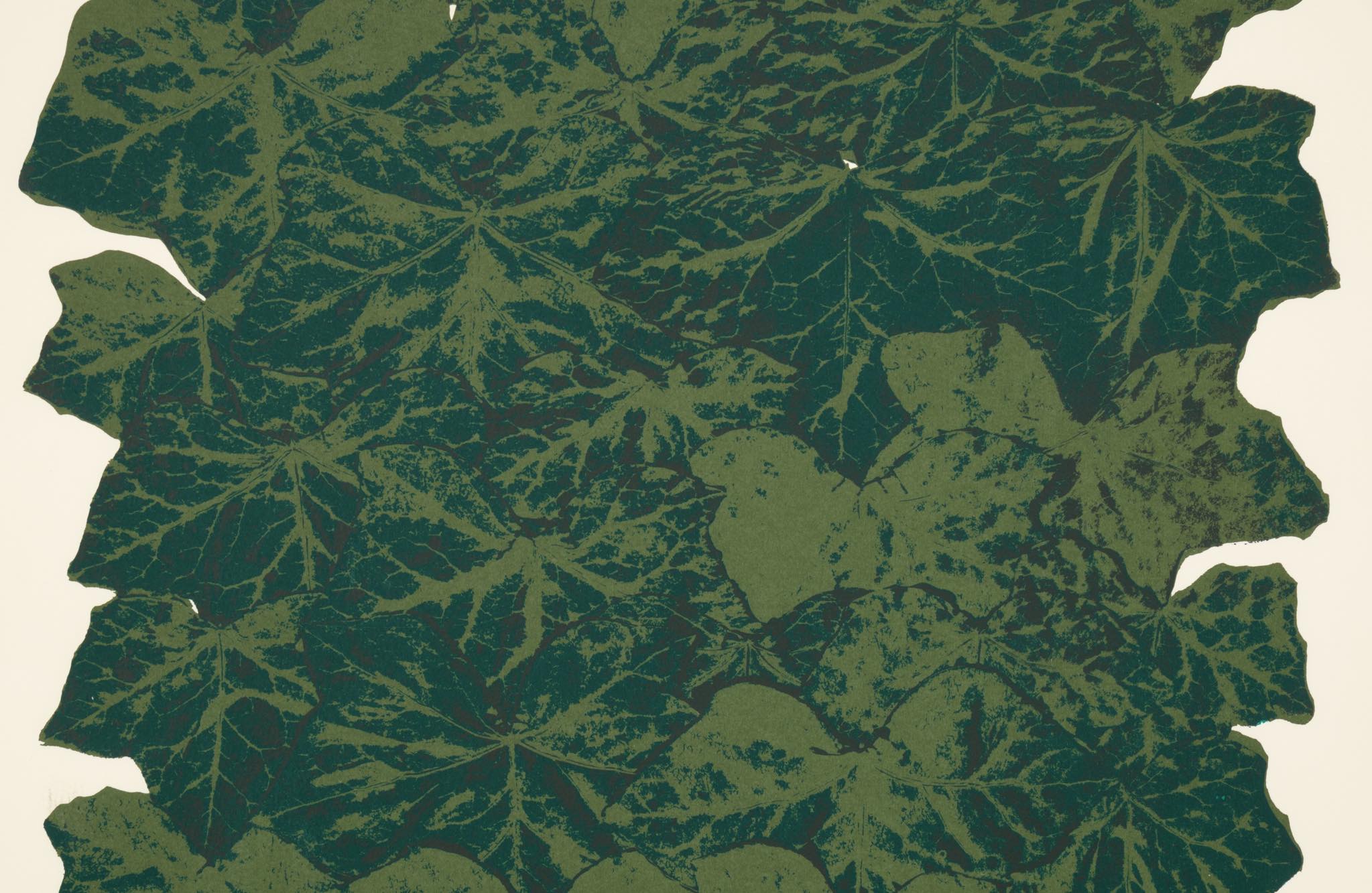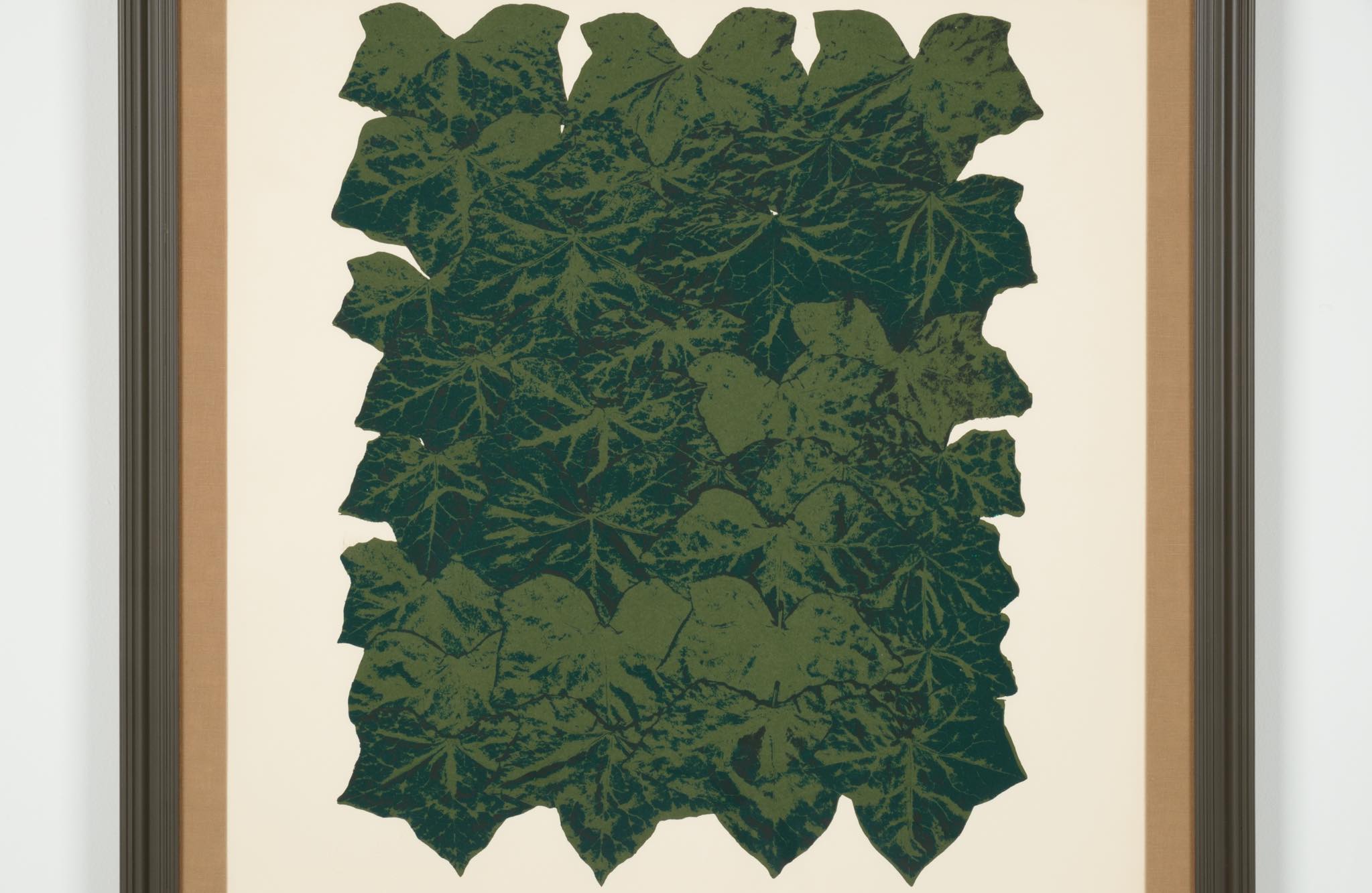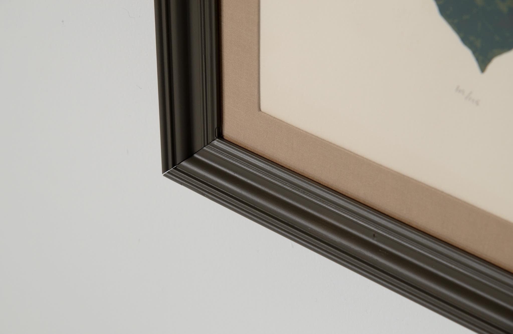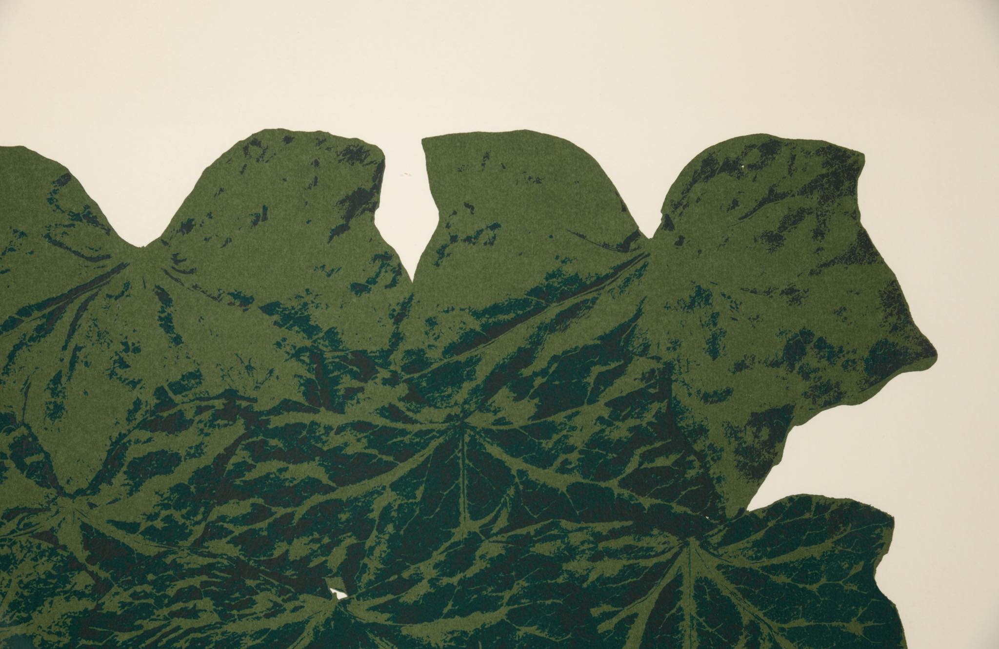 デンマークの芸術家、Peter Bonnén/ピーター・ボンネンによるリトグラフ作品です。1977年に刷られたもので、折り重なるアイビーの葉が一つの塊となり、別な物体にも見えるような、彫刻家らしい表現の作品です。オリジナルの木製フレームに表面的な劣化が見られたので塗装にて整え、内部のマットを新調しました。コンディションは良好です。