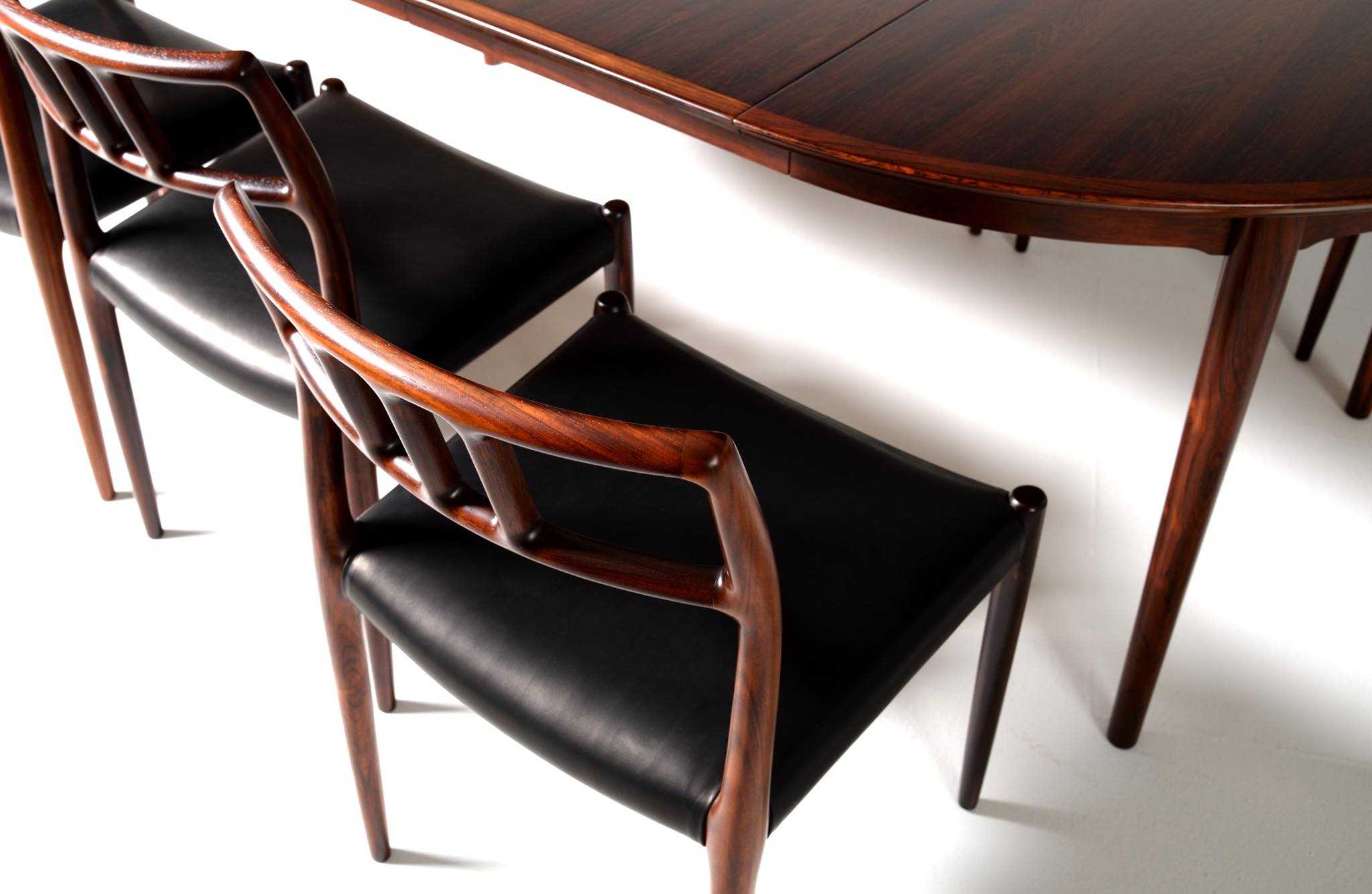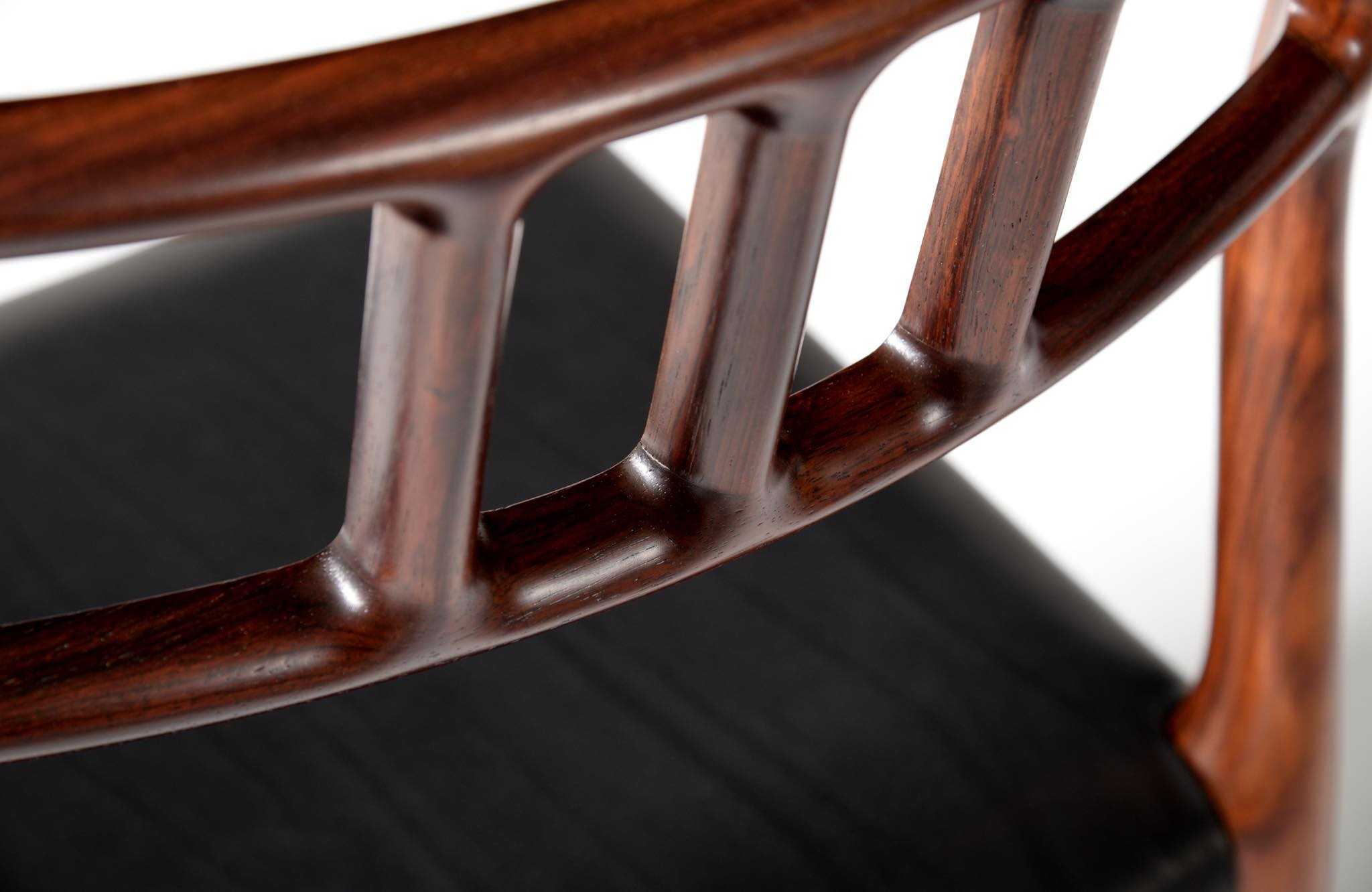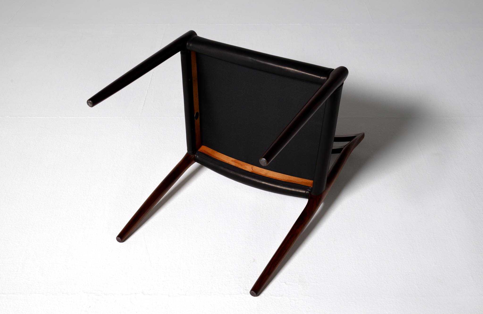 Model 79 Dining chair in Brazilian rosewood with black leather