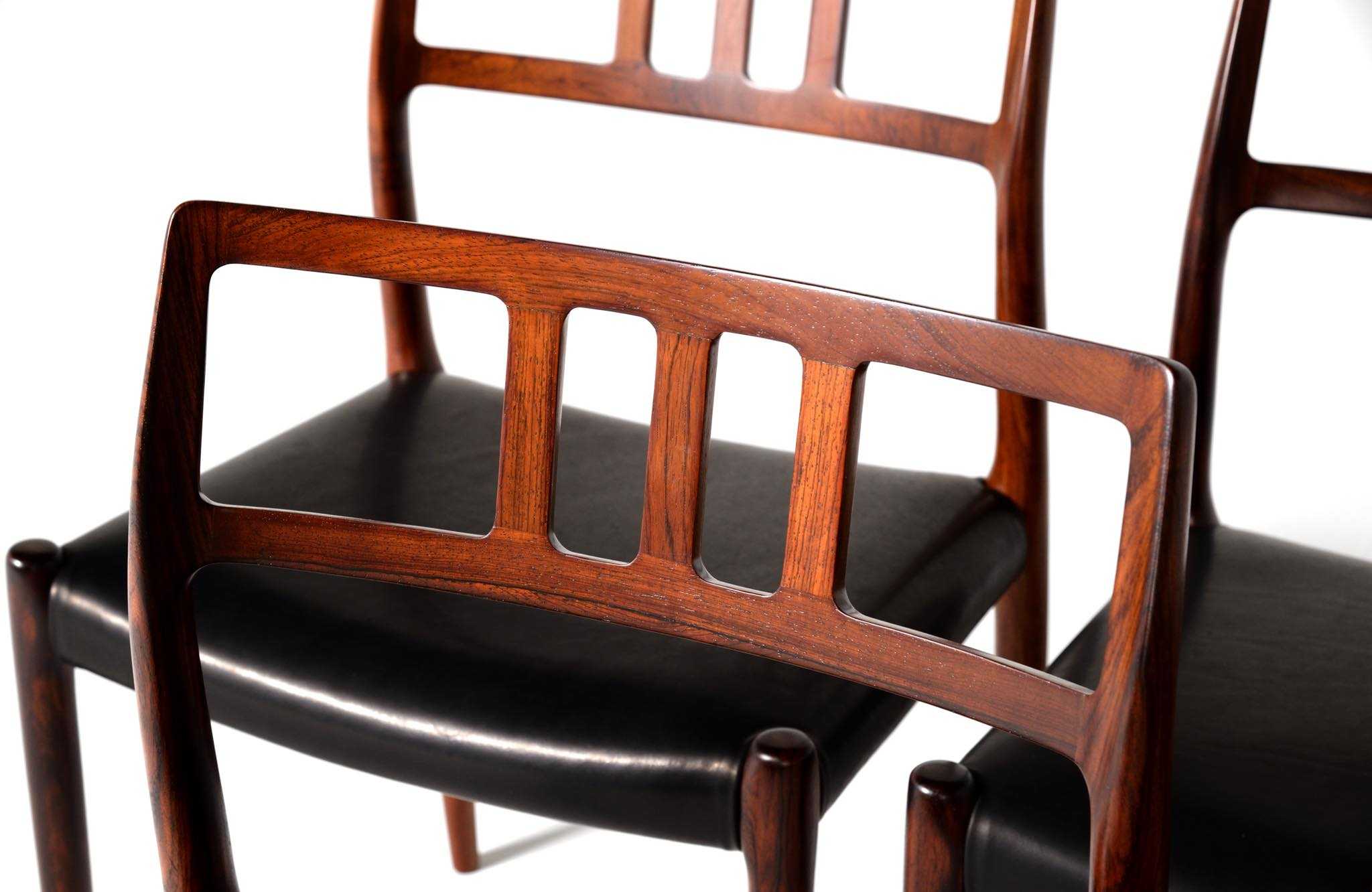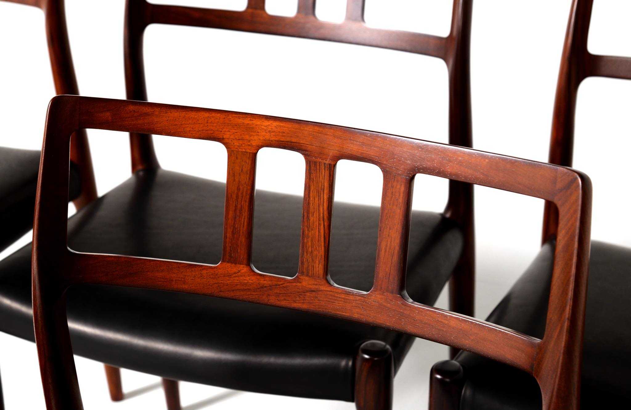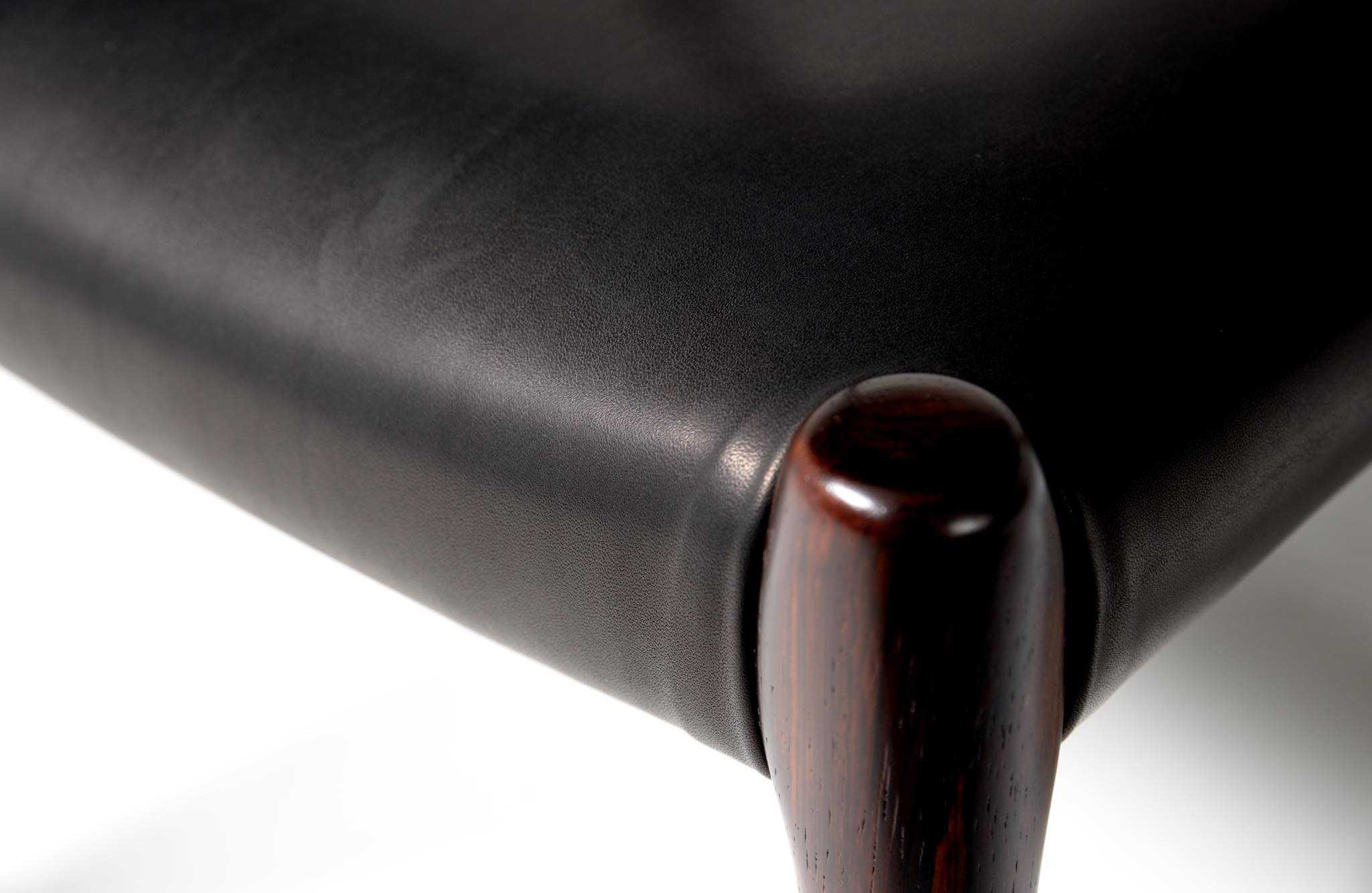 Model 79 Dining chair in Brazilian rosewood with black leather