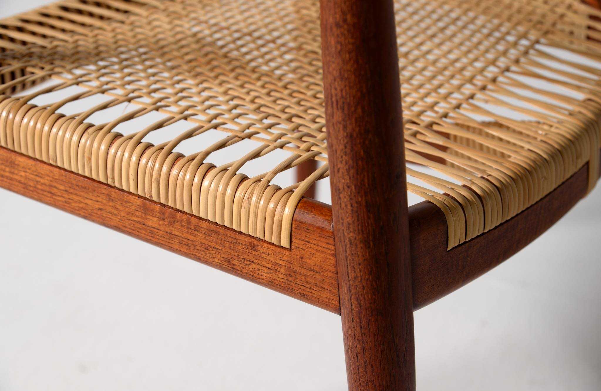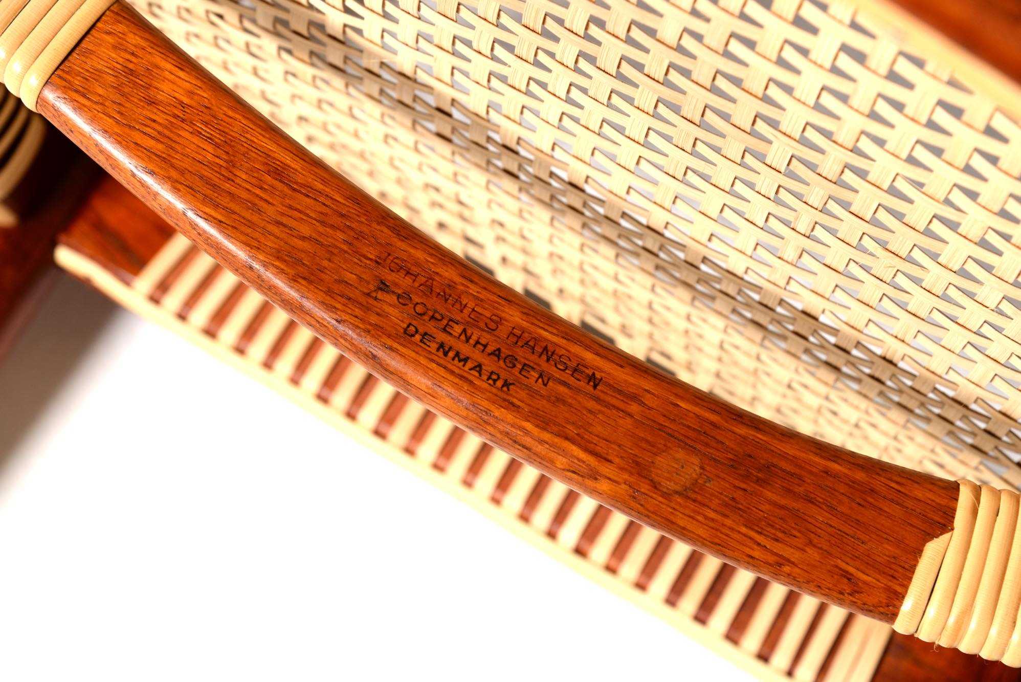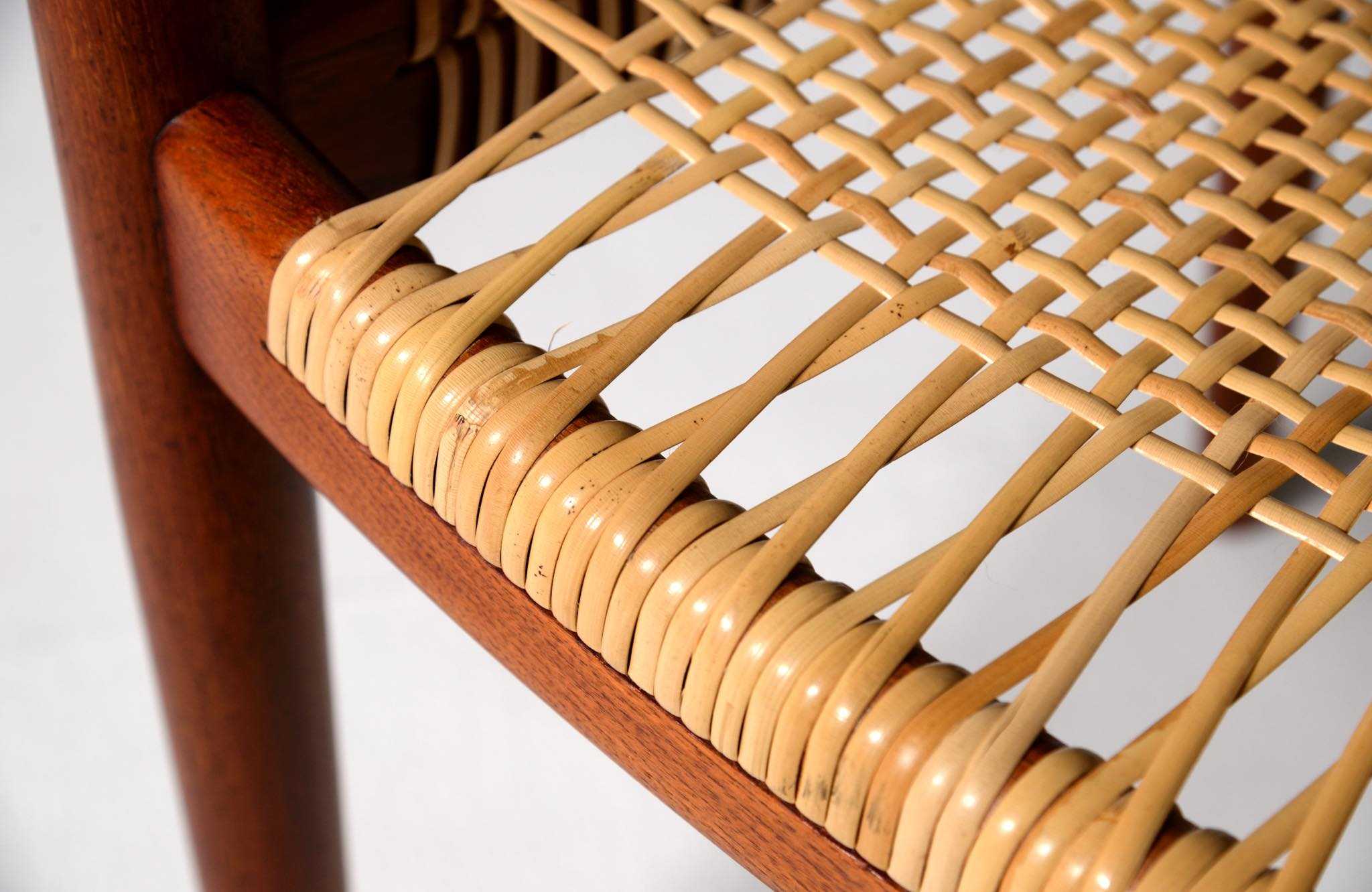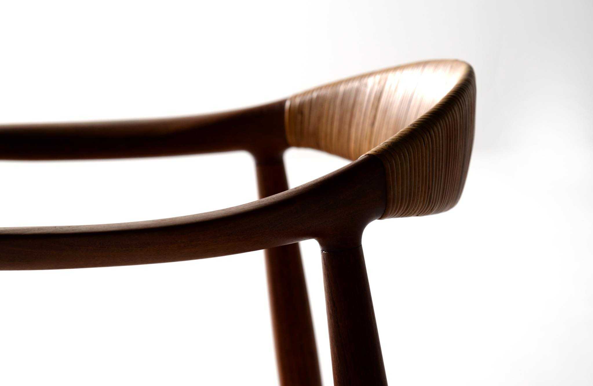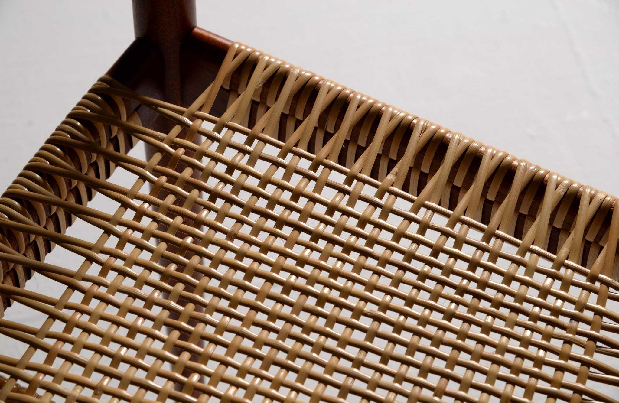 デンマークを代表する家具デザイナーのHans J. Wegner/ハンス・ウェグナーによる、名作椅子JH501、通称 ”The Chair” チーク材xラタンシート、ラタンバックの仕様です。1950年〜60年代頃に作られたものでしょう。タイ国原産と思しき良質なチーク材が用いられており、アームの先端など規則的に現れた木目文様は、恒常的で安定したタイの気候を現しています。背はオリジナル、座はおそらく数年前に張り替えられたものですが、経年により馴染んでくるでしょう。