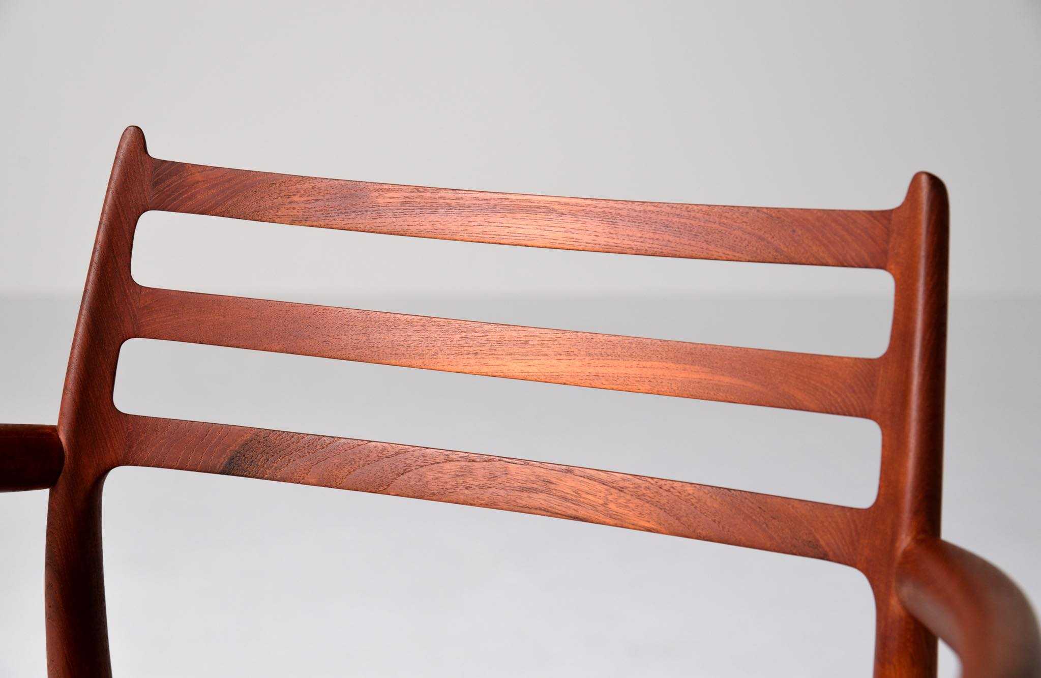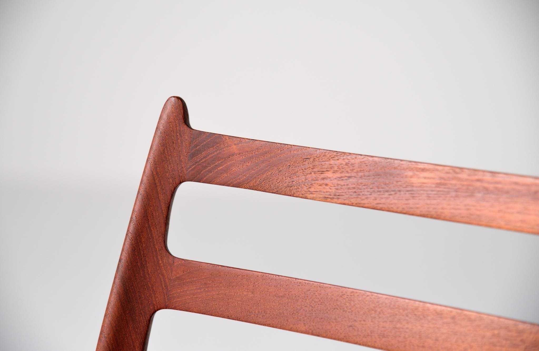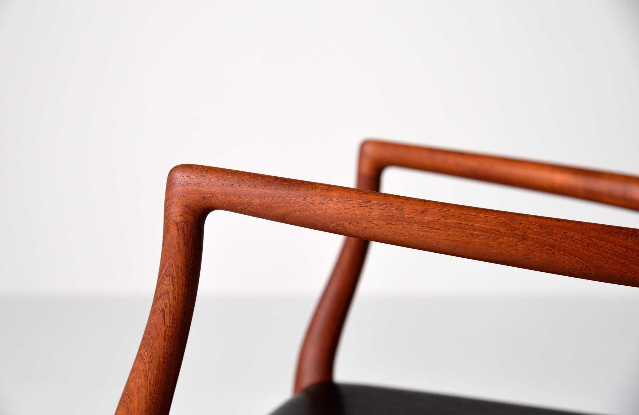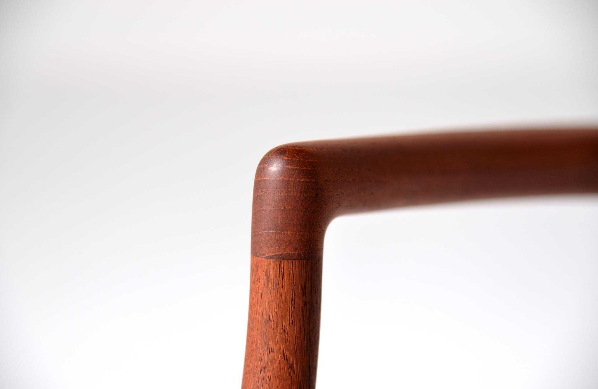 J.L. Møllerの名作椅子 "Model 62" アームチェア、1960年代に作られたものです。タイ国原産と思しき良質な無垢のチーク材を細く削り出されたフレームは天然木ならではの賜物です。シートは黒皮革で張り替えました。