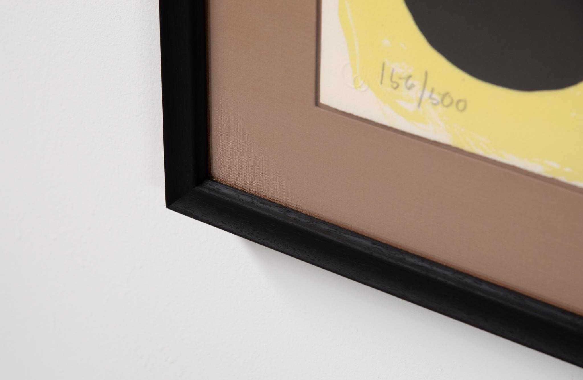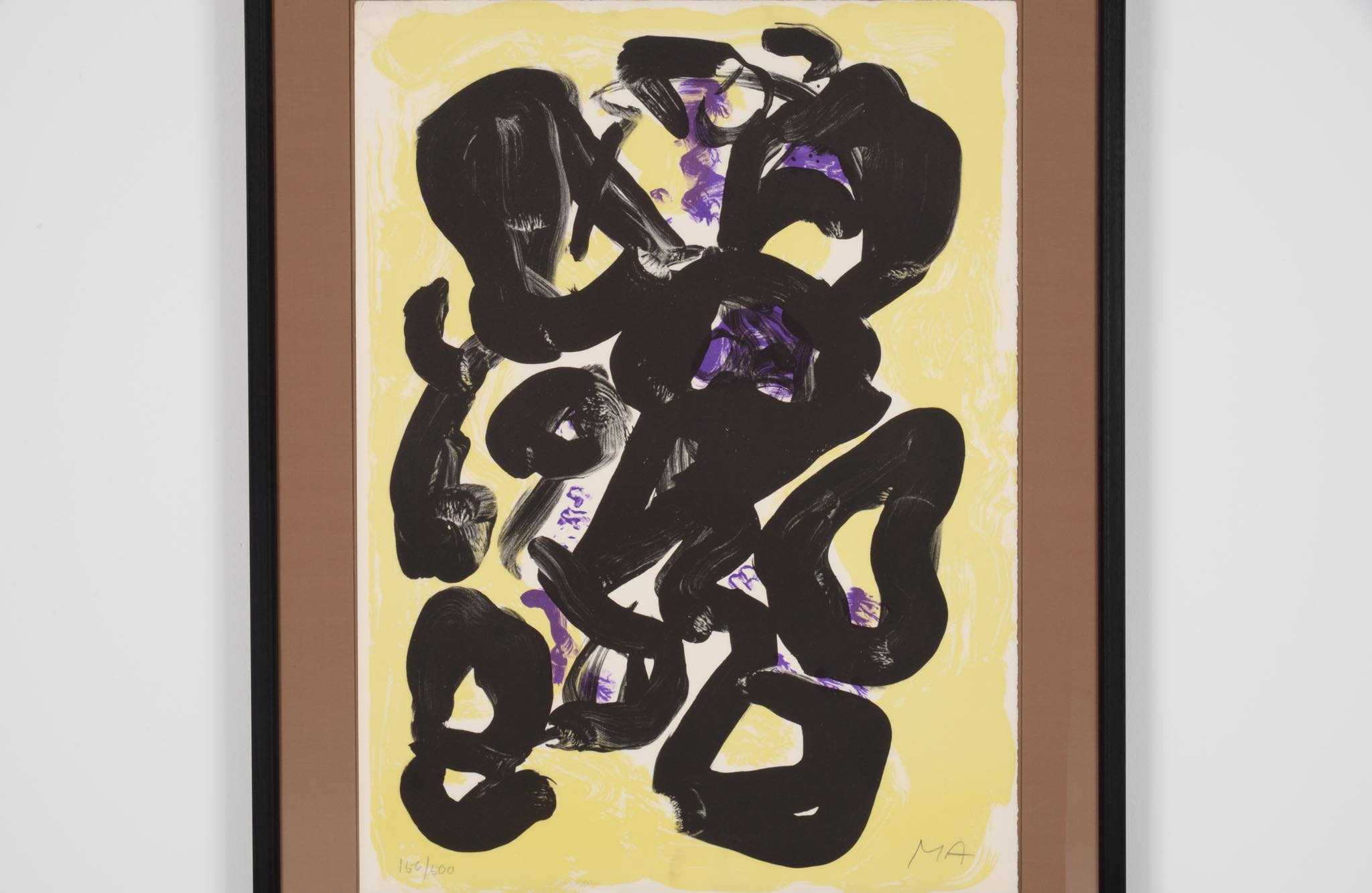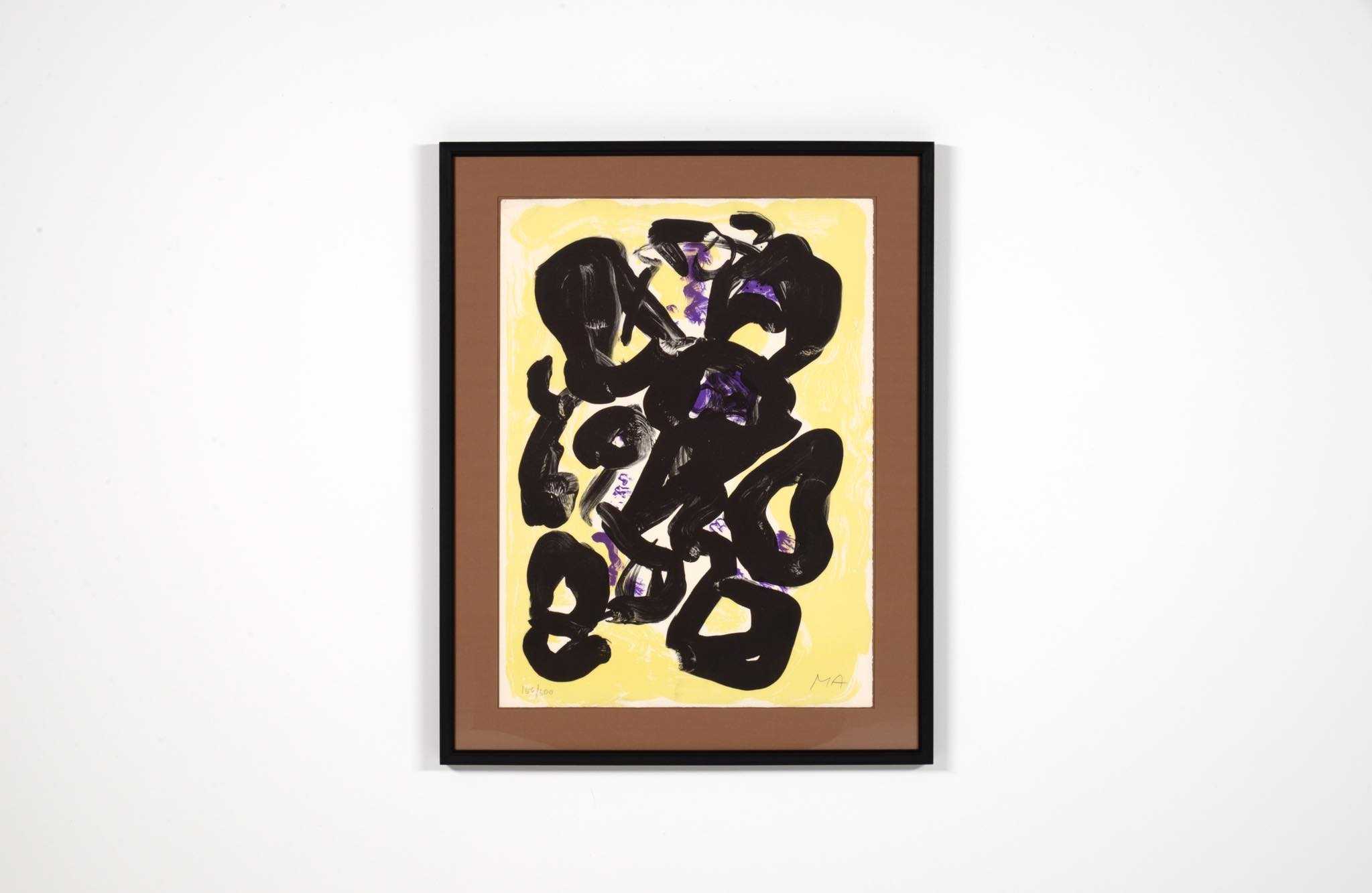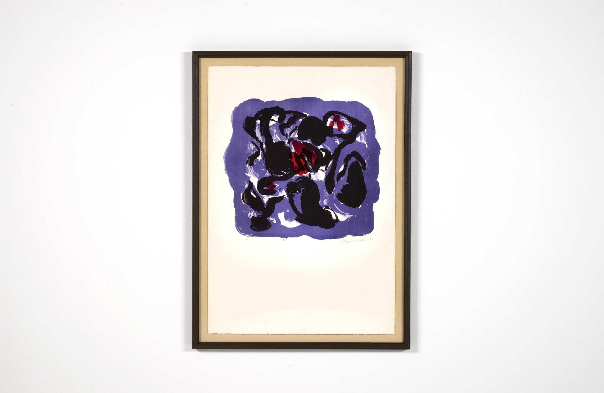 20世紀に活躍したデンマークの芸術家、モーエンス・アナセンによるリトグラフ、大振りな作品です。ダイナミックな筆致で描かれた抽象的な作風は独自の世界観を表現しています。こちらはエディション500部と多部数刷りの作品で、当時人気を博したことが伺えます。全体的に綺麗な状態です。新たなフレームにて整えました。