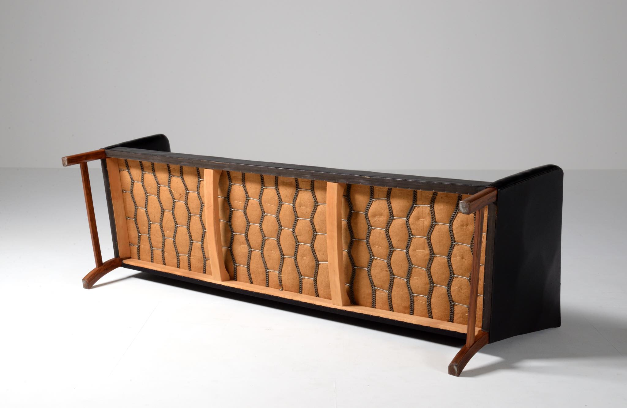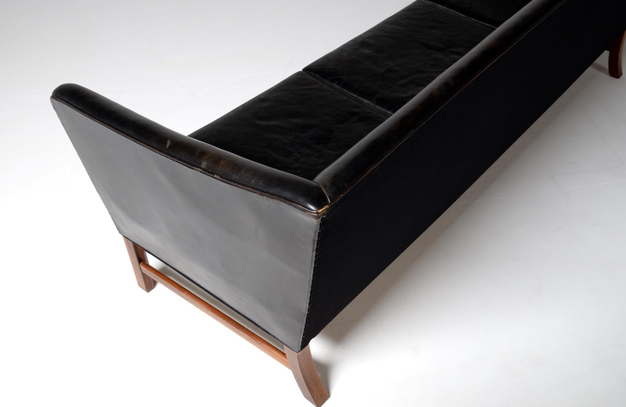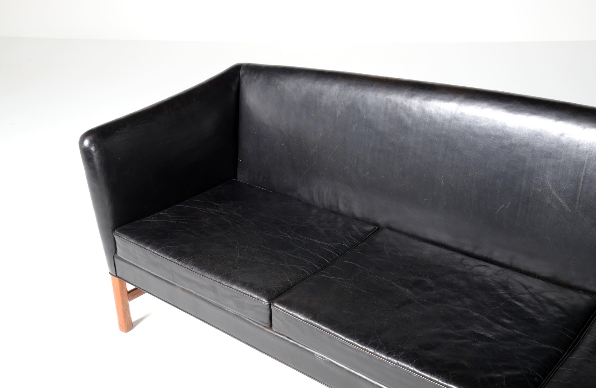 3 seater sofa in Original black leather with Brazilian Rosewood legs