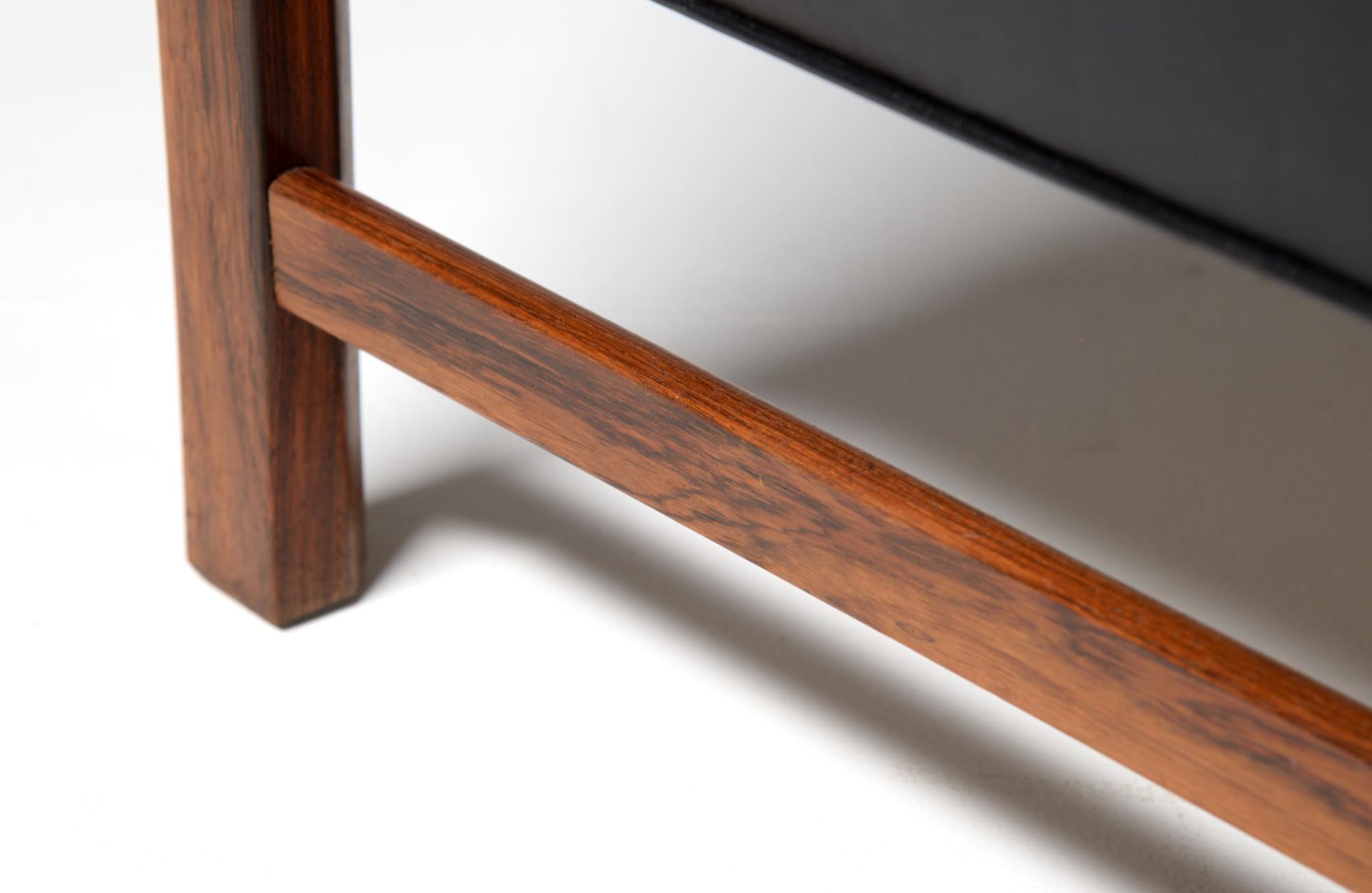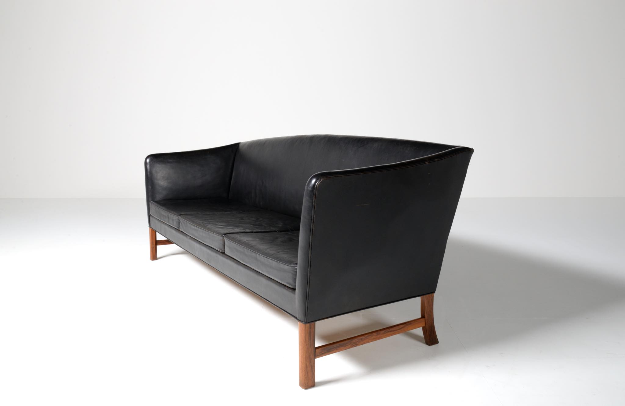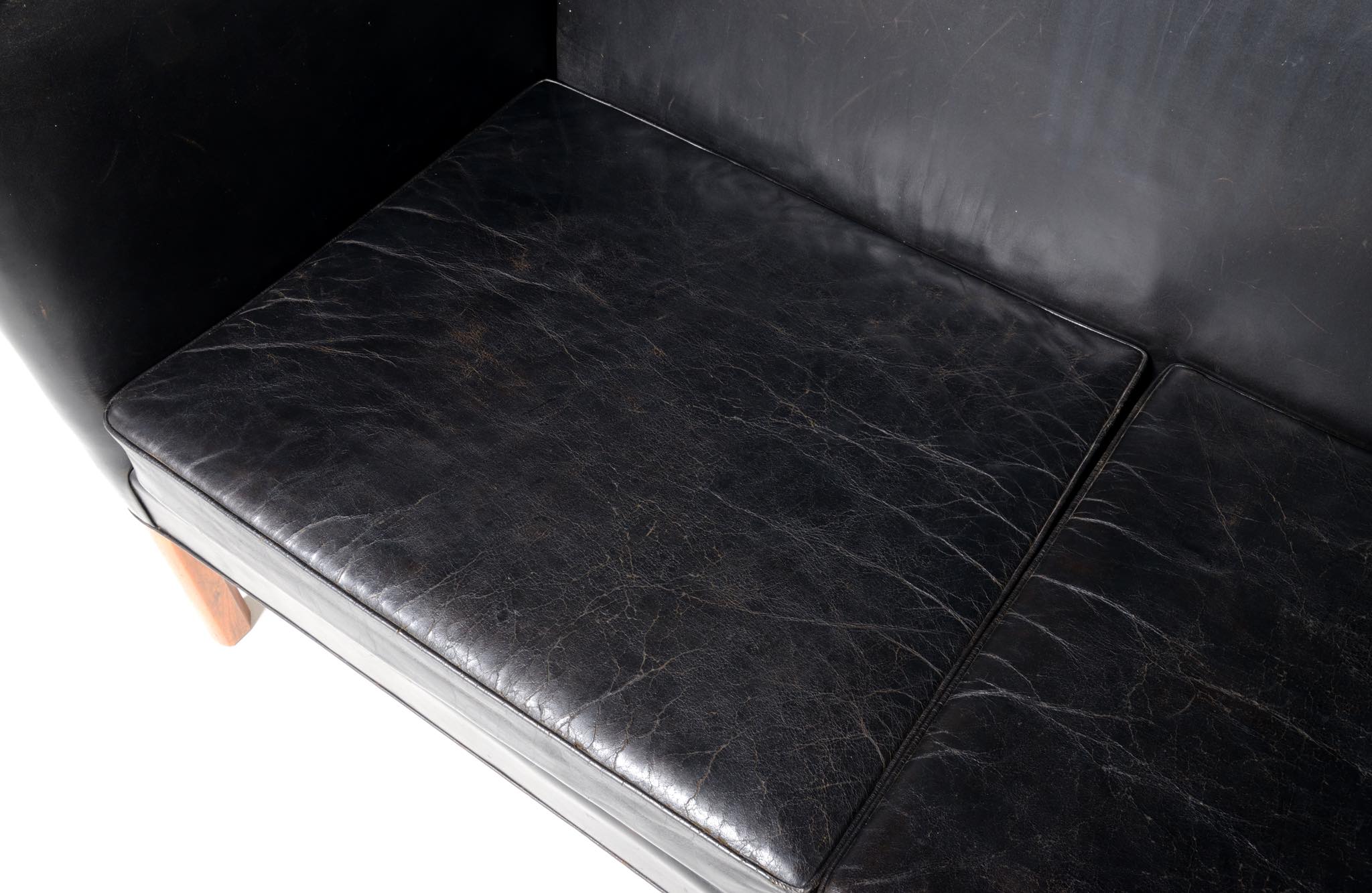 3 seater sofa in Original black leather with Brazilian Rosewood legs