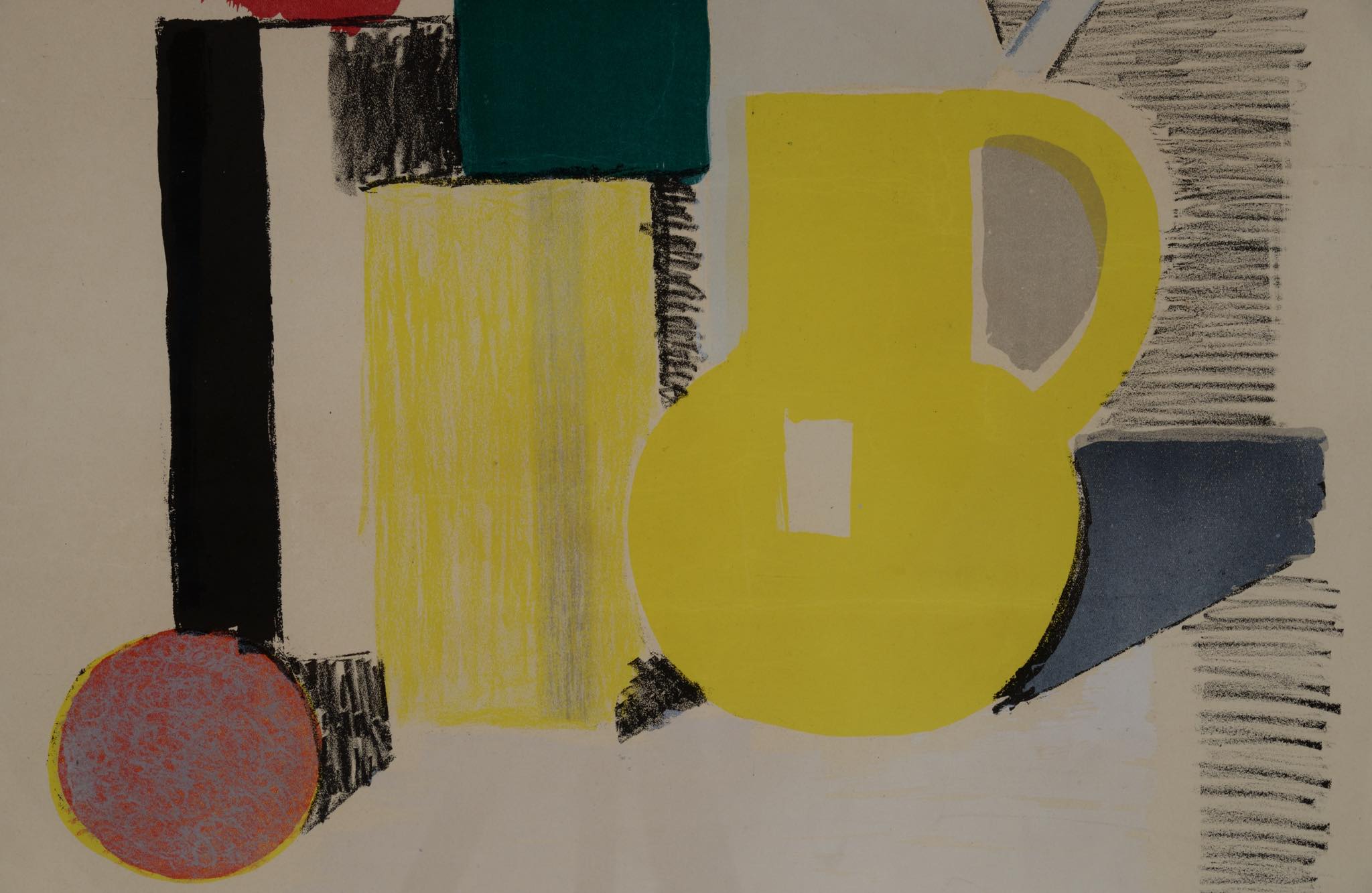 20世紀の前葉に活躍し、フィン・ユールをはじめ多くのデザイナーに影響を与えた画家、Vilhelm Lundstrøm/ヴィルヘルム・ルンストロームによる、1947年発表のリトグラフ作品です。卓上の静物を独自の表現で描いたもので、こちらの作品にはサインが確認できます。マットとフレームは新調しました。紙に折り皺が見られますが、概ねきれいな状態です。