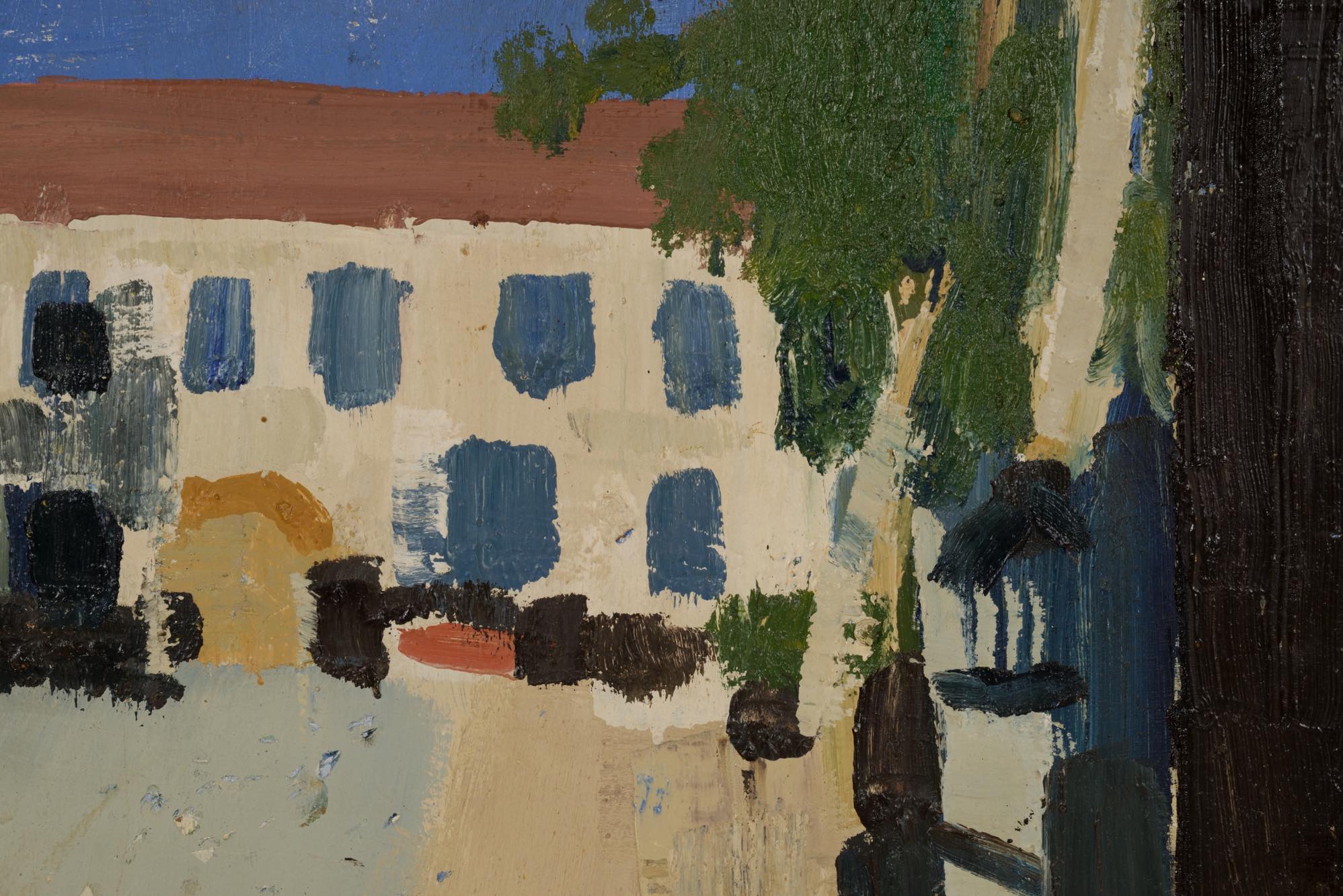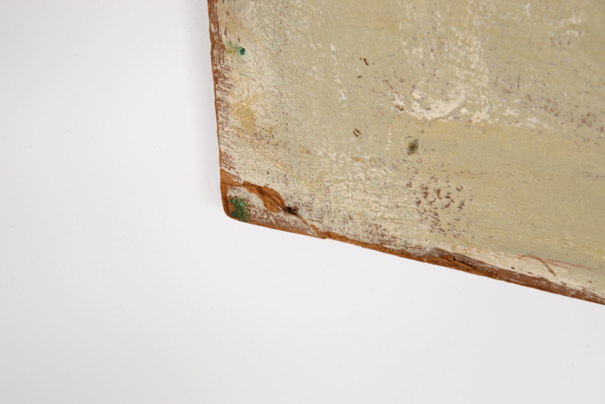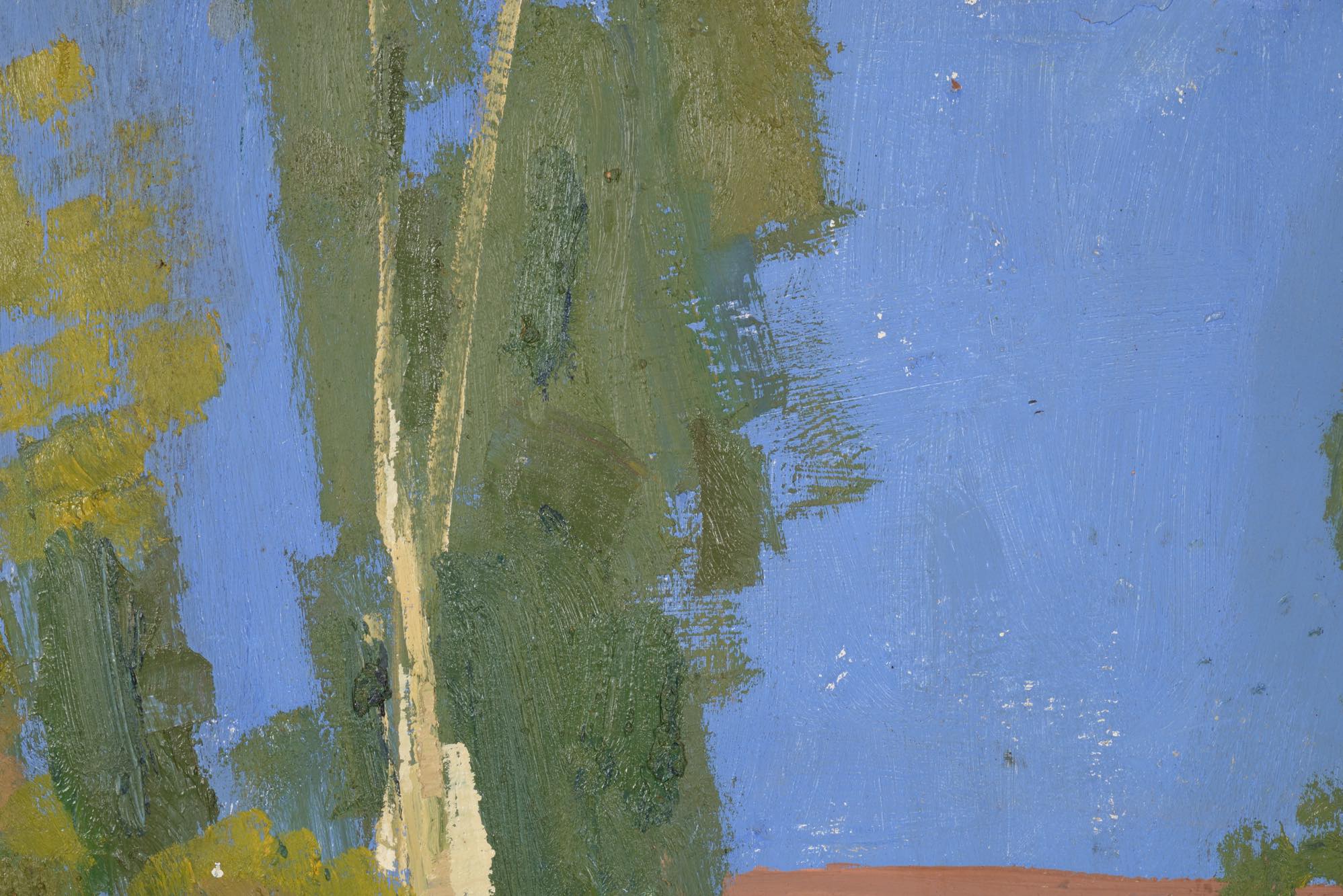 英国人画家、John Lindsay Little/ジョン・リンゼイ・リトルによる風景画作品です。ノルウェーのとある風景を描いたもので、1960年の制作です。大振りなボードに油彩を用いて荒々しいタッチで描かれており、構成的でありながら初夏の爽やかさや、どこか懐かしさを感じるような作風です。ボードの傷みや表面の傷などダメージが多少見受けられますが、作品の魅力は損なわれておりません。壁にかけやすいよう、木製の下地を新たに作成し、強度を安定させました。