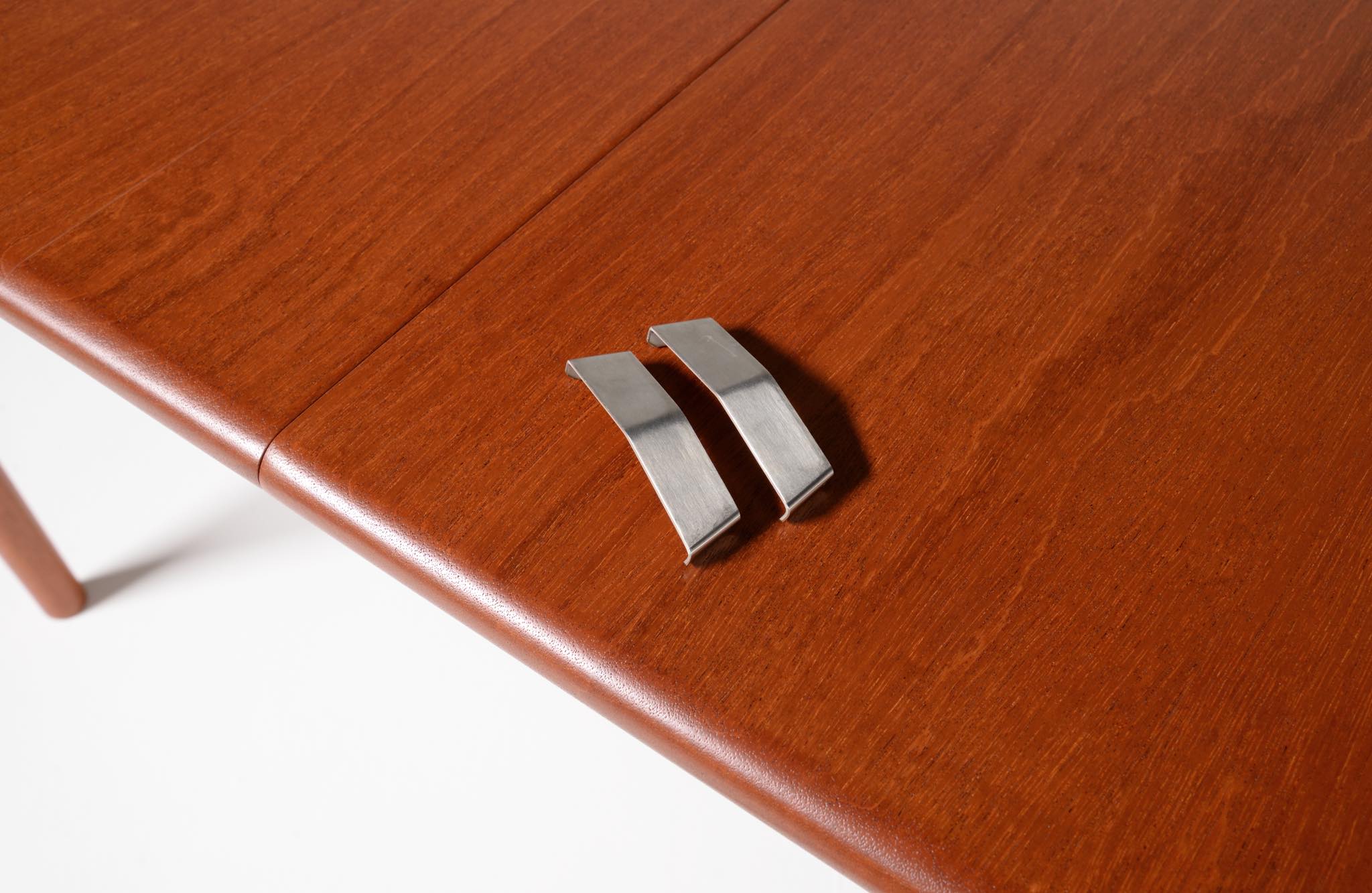 デンマークを代表する家具デザイナーのHans J. Wegner/ハンス・ウェグナーによる、PP80ダイニングテーブルです。1975年に発表されたモデルで、シノワズリ様式をベースにシンプルかつモダンにまとめたデザインです。天板はマホガニーの無垢材を集成した、贅沢な作りとなっており、2枚のエクステンションリーフが伴い天板面積を拡張できます。金属製のオリジナルストッパーが付属し、隙間が生じないよう工夫されています。無垢材なのでワークテーブルとしてガンガン使い込むのも良いでしょう。脚は外れず完成された形状ですので、搬入経路のご確認が必要です。
