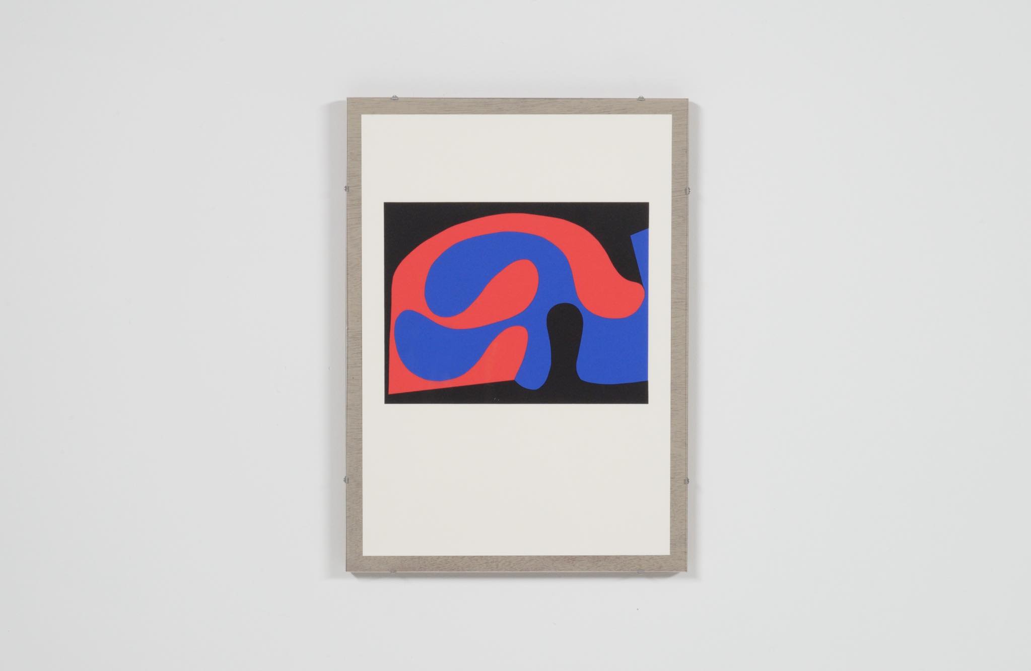 20世紀後半に活躍したデンマークの芸術家、Ib Geertsen/イップ・ギアトセンによるコンポジションセリグラフ作品です。ギアトセンが表現する世界観の現れたコンポジション作品群に、デンマークの詩人のUffe Harder/ウッフェ・ハーダーによる詩を挿入し、詩集 "Straks Begynder De at Synge" として1990年に500部限定で出版されました。ドイツのリトグラフ紙 ”ツァーカル紙” を用いて、セリグラフィー(シルクスクリーン)によって色鮮やかに刷られています。こちらの作品はその詩集から切り離されたものを個別に額装したもので、ギアトセンのサインは奥付に集約されており、作品自体にサインはありません。フレームは国内にて整えました。
