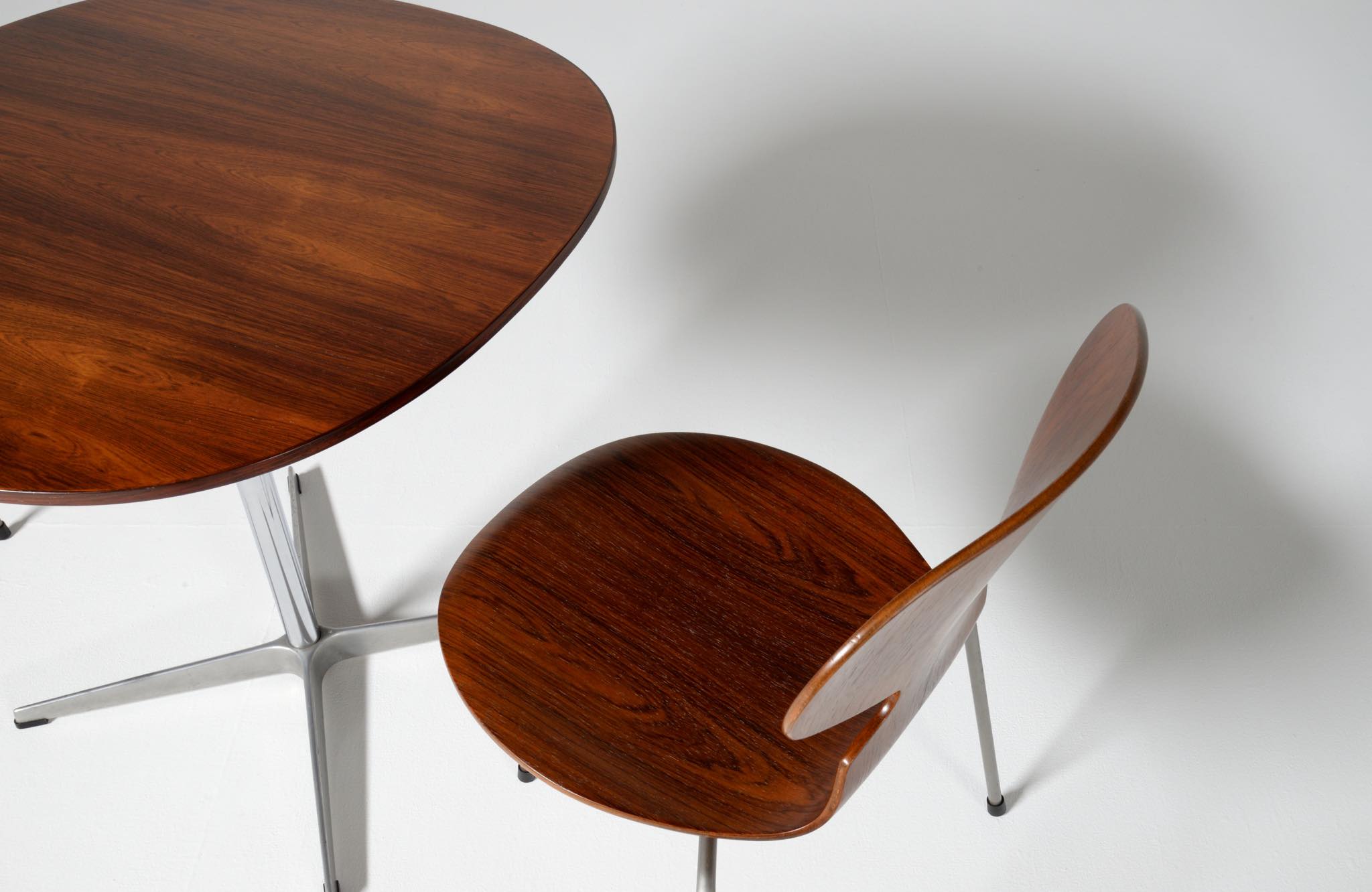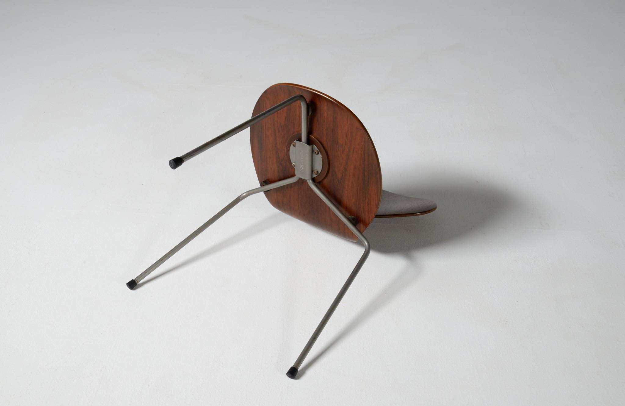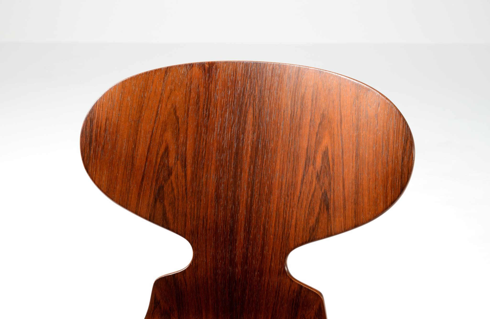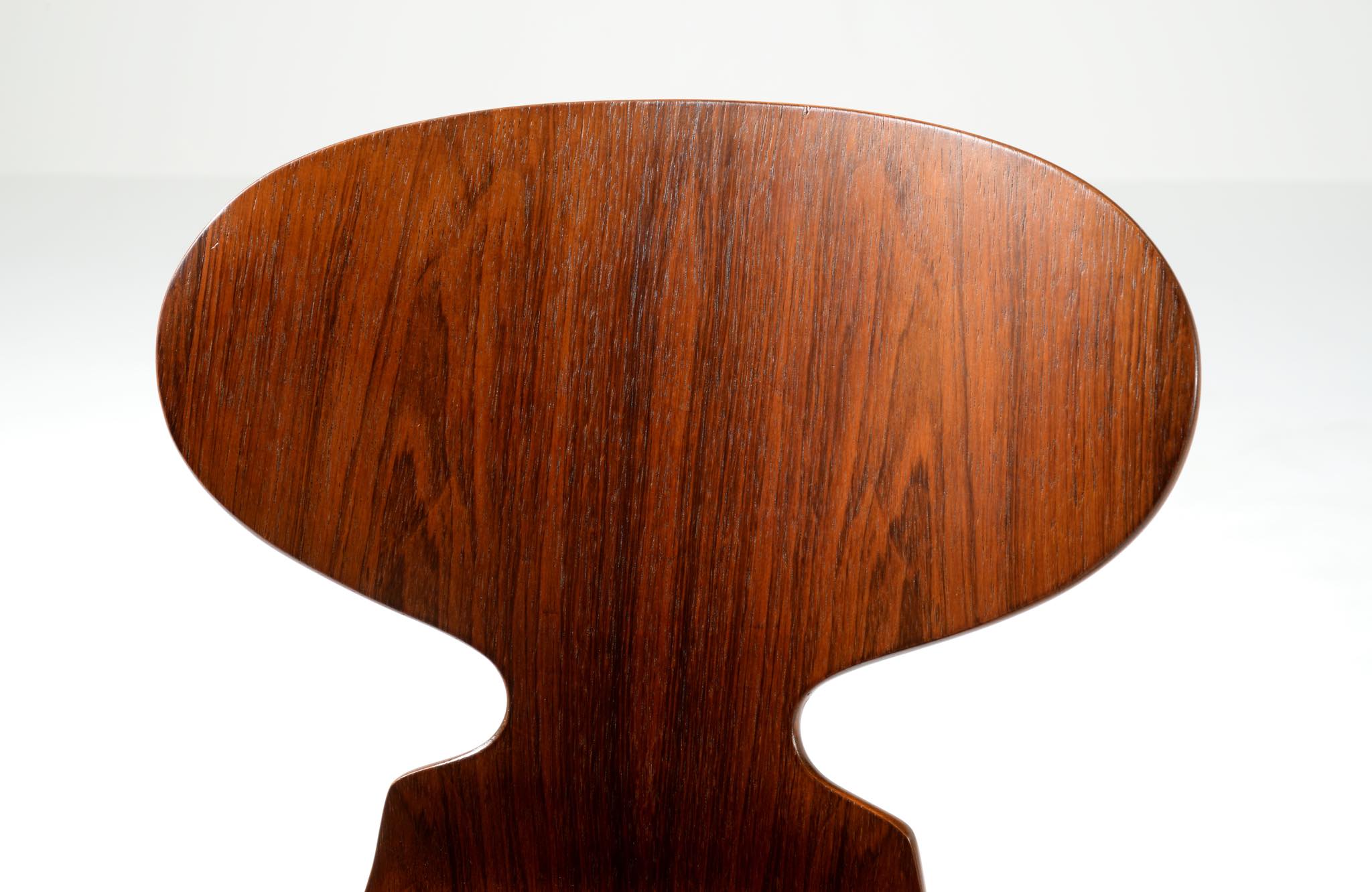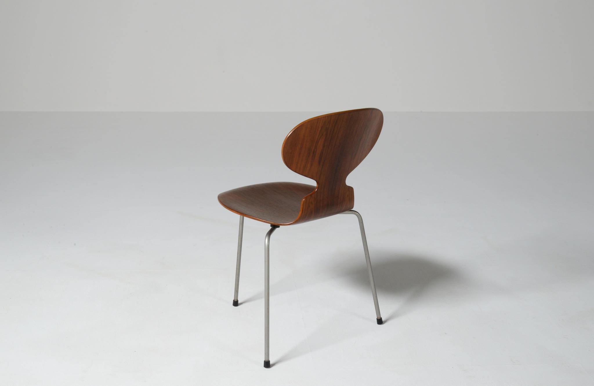 デンマークを代表する建築家のArne Jacobsen/アルネ・ヤコブセンによるアントチェア、ブラジリアンローズウッドのタイプです。1950〜60年代に作られたものでしょう。落ち着いた木目紋様のローズウッドが用いられています。傷みやすい背もたれの曲木も良好で、綺麗な状態です。