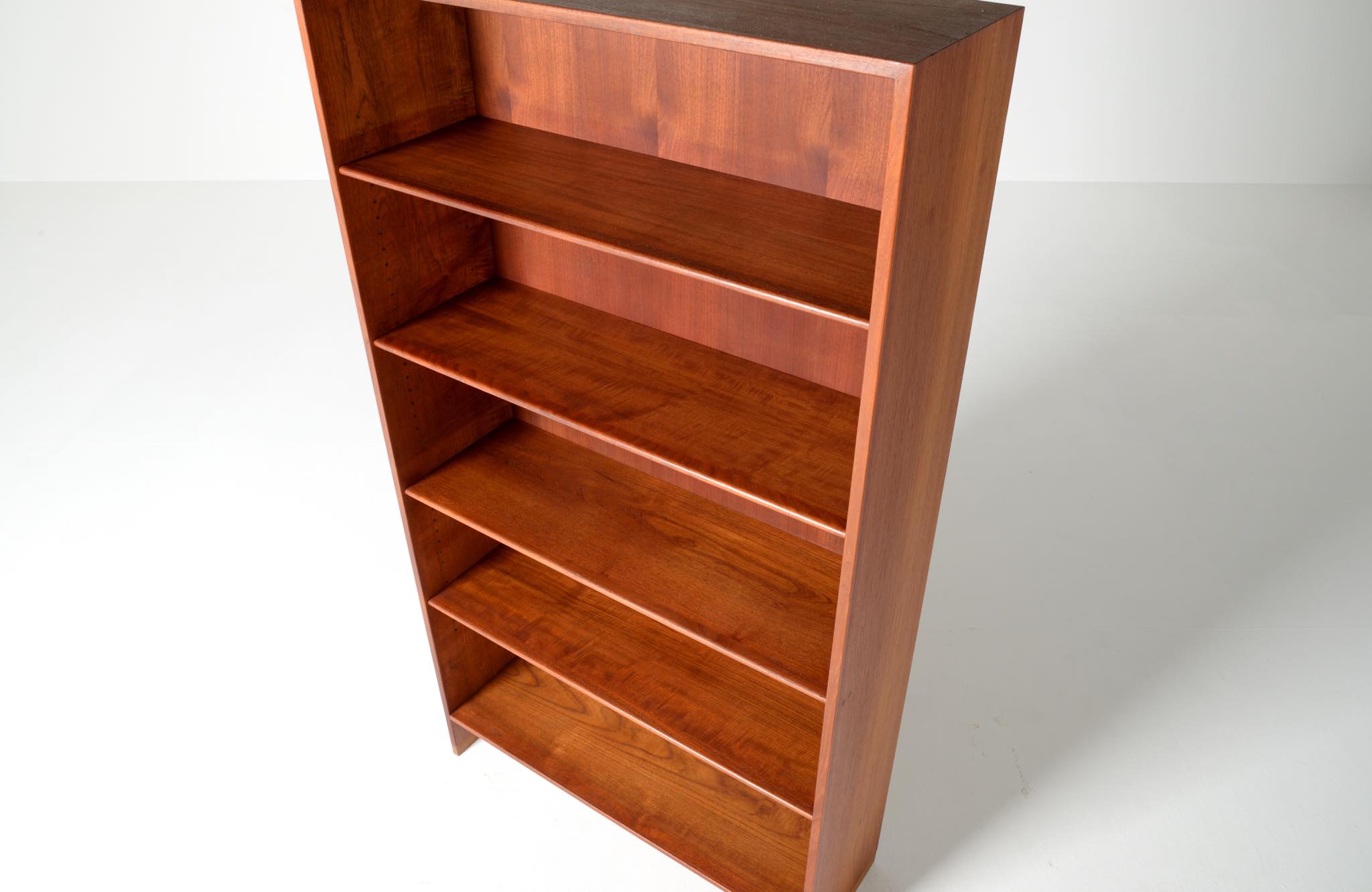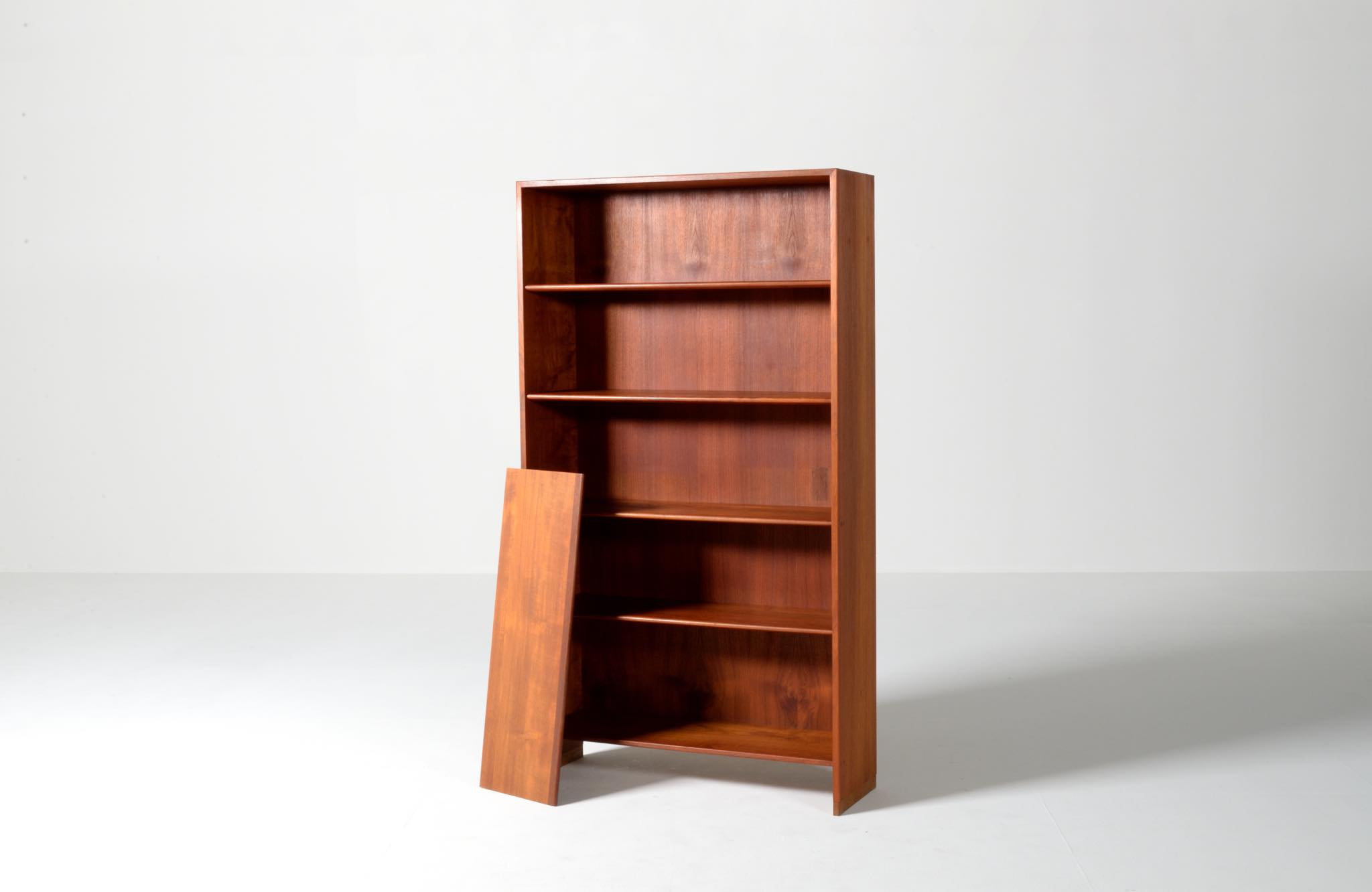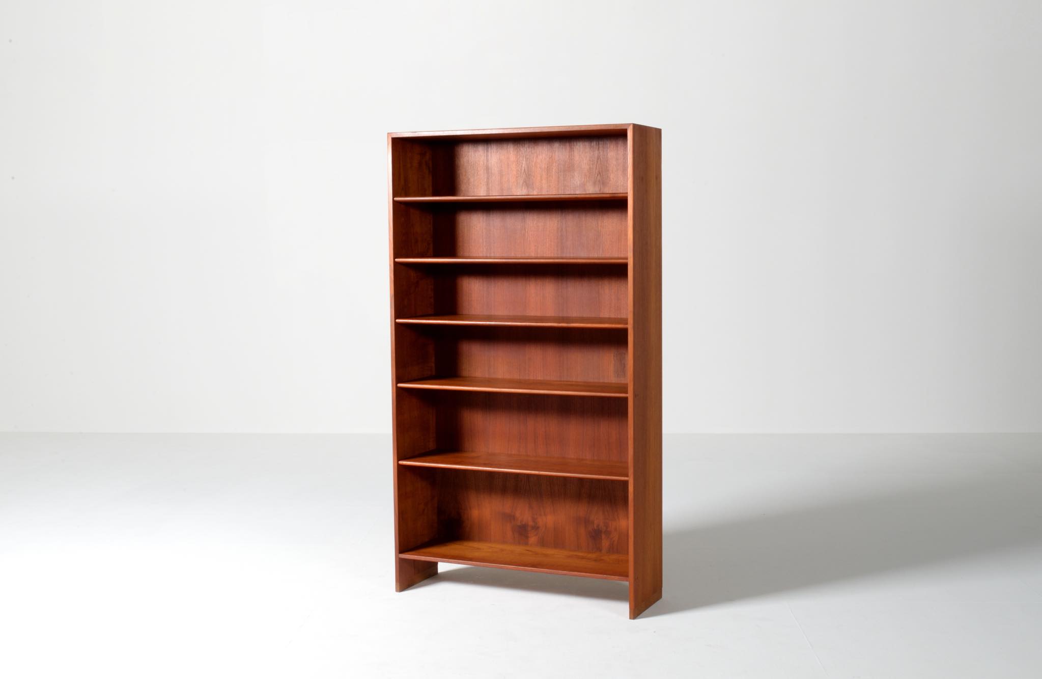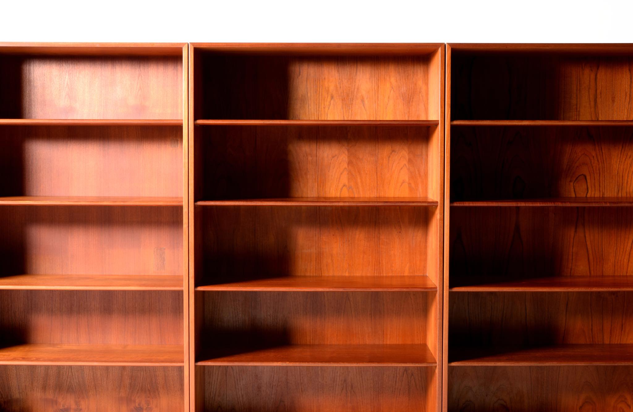 デンマークを代表する家具デザイナーのHans J. Wegner/ハンス・ウェグナーによる、RY8ブックケースキャビネット、チーク材のタイプで、1957年と1962年の製造年記が見られます。余計な装飾を施さず、シンプルな形状ですが、チーク材の持つ見事な構造の棚板固定にオーク材の木栓を用いている点や、地擦りにオーク無垢材を履かせて摩耗に耐えられる構造とするなど、随所に工夫の見られる設計となっています。3棹共にコンディションは良好ですが、個体差がありますので、詳しくはお問い合わせください。