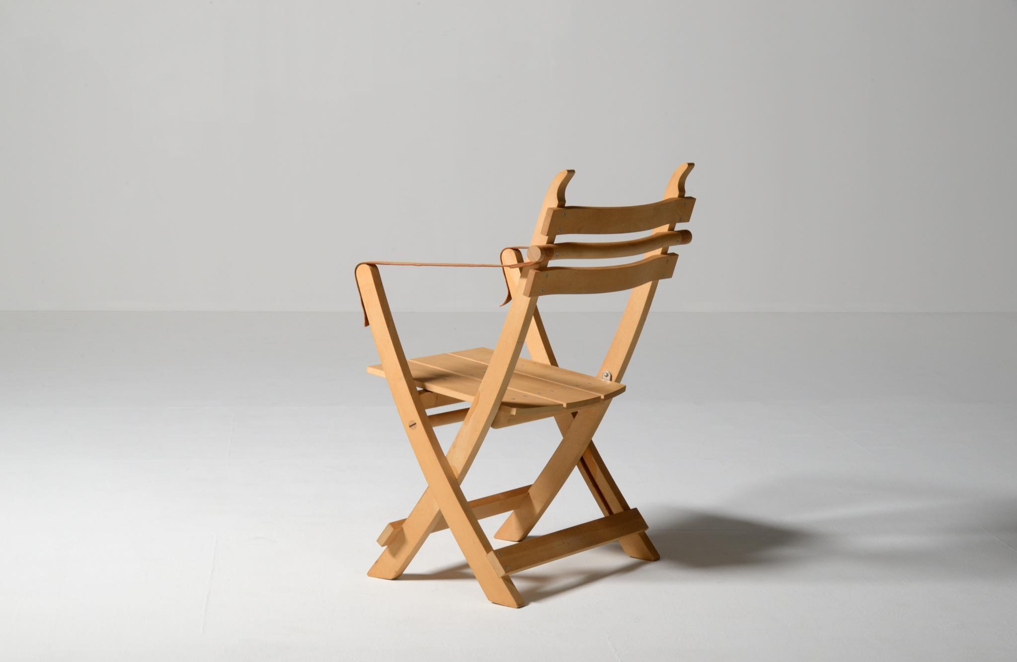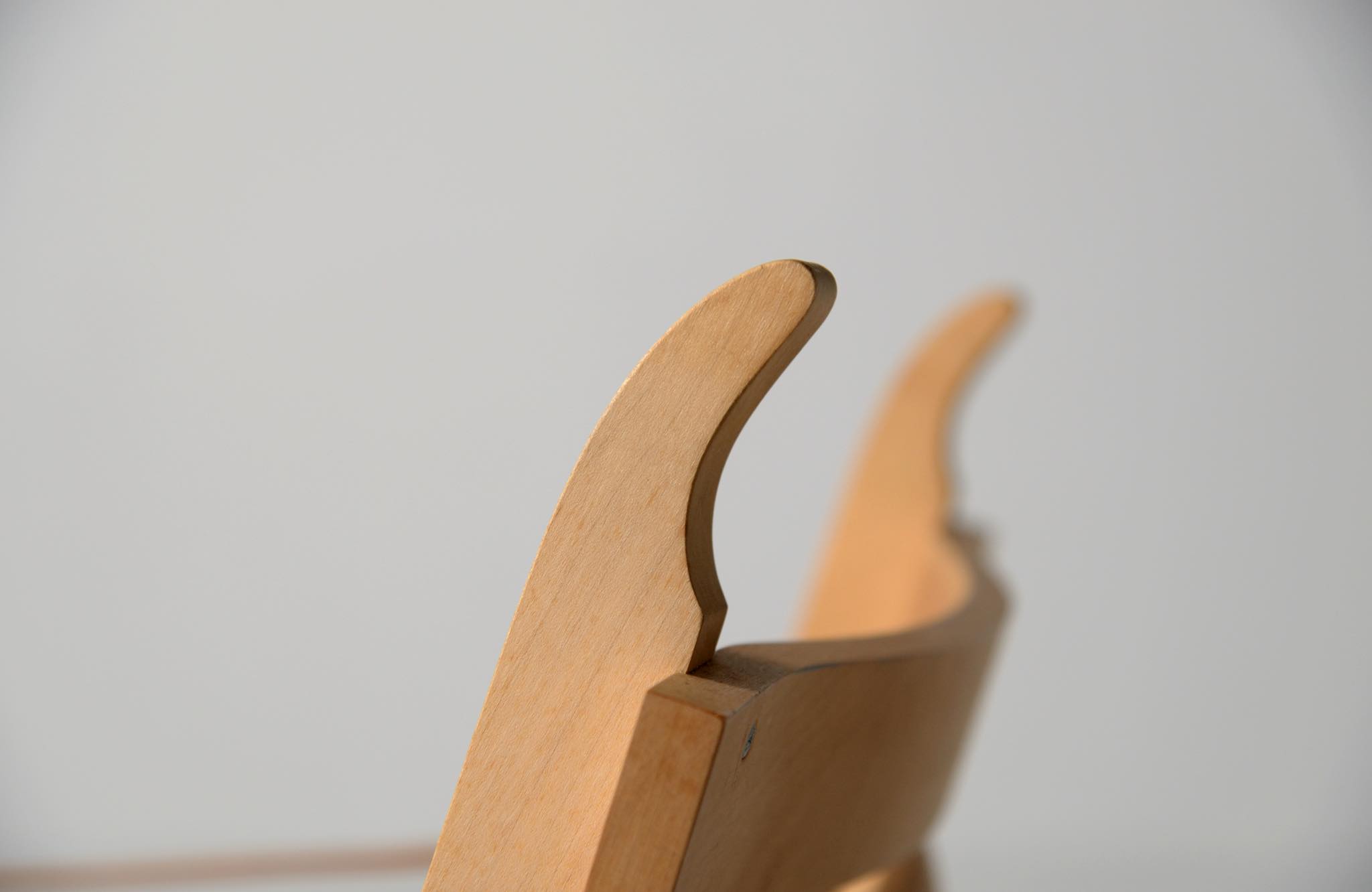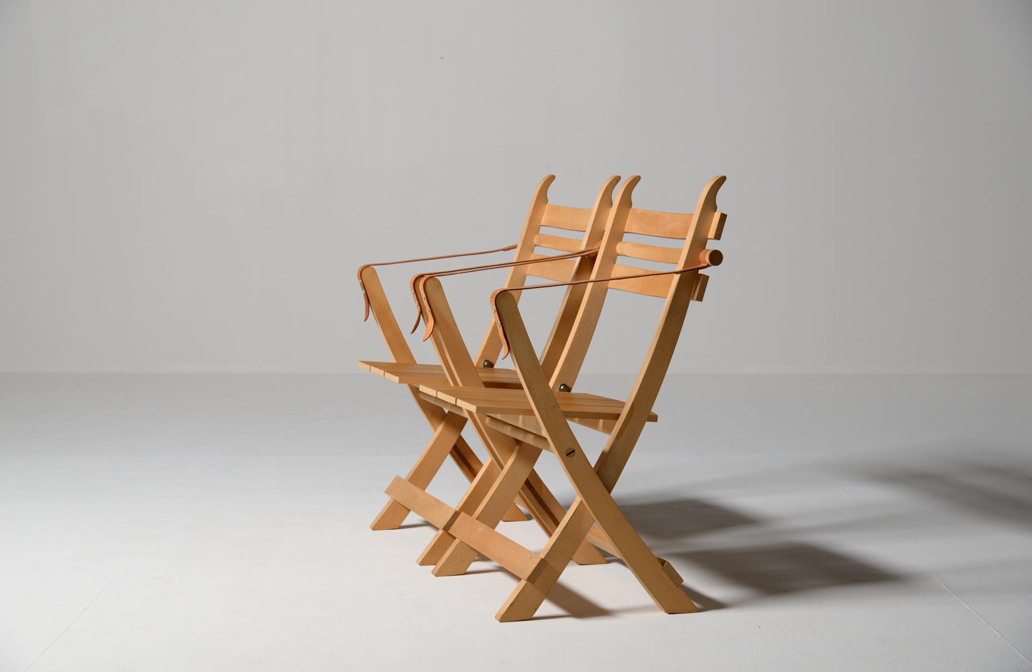デンマークを代表する家具デザイナーのHans J. Wegner/ハンス・ウェグナーによる、フォールディングチェア一対です。1976年にデザインされたもので、こちらはダイニングのタイプですが、低めのイージーチェアタイプなどレパートリー違いが展開されています。背の角はクッションを提げられるフックとして機能し、折り畳むことで収納にも長けています。座面幅の広いPP-90Hはヴァリエーション違いでしょう。こちらは一対での販売となります。