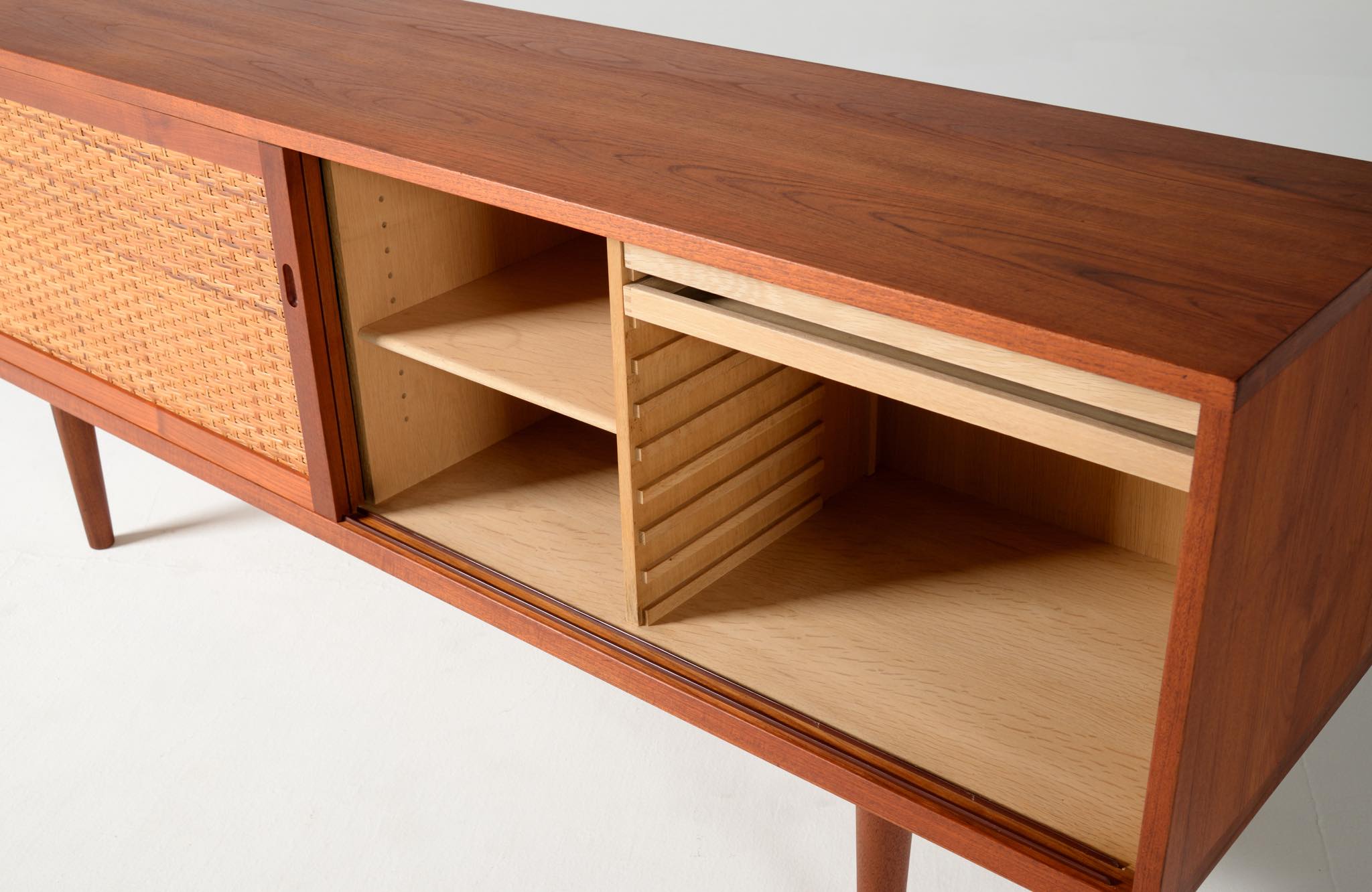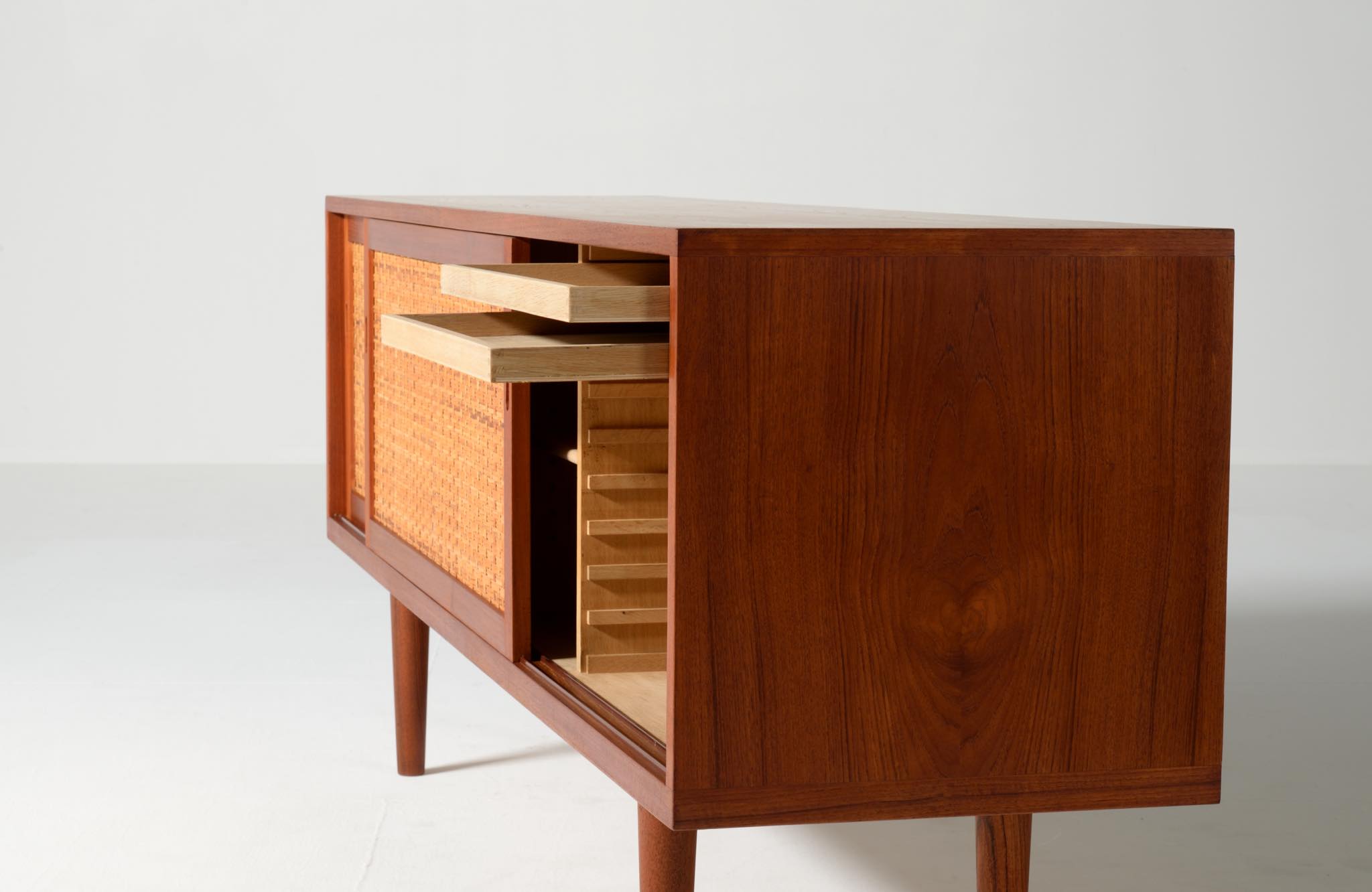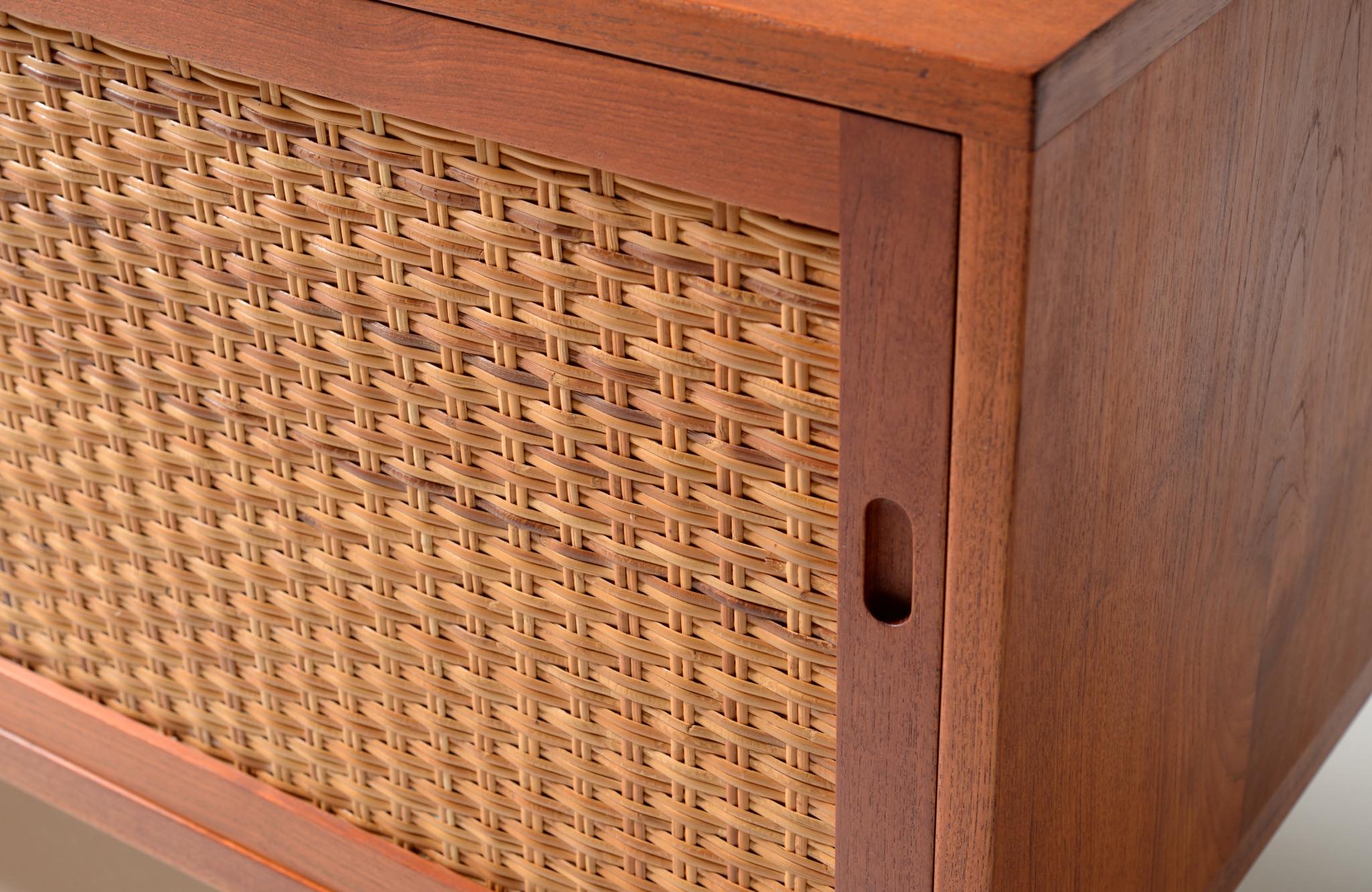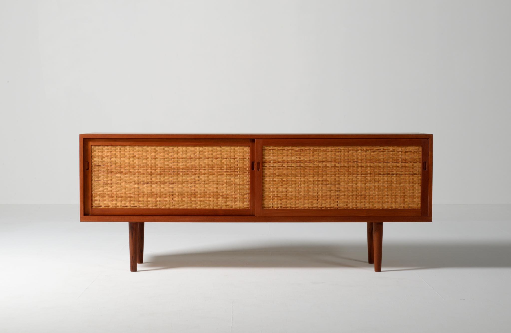デンマークを代表する家具デザイナーのHans J. Wegner/ハンス・ウェグナーによる、RY26サイドボードキャビネットです。チークの本体にラタン張りの引戸の組み合わせで、東洋の建具を彷彿とさせます。内部は無塗装のオーク材、とても綺麗な状態です。
