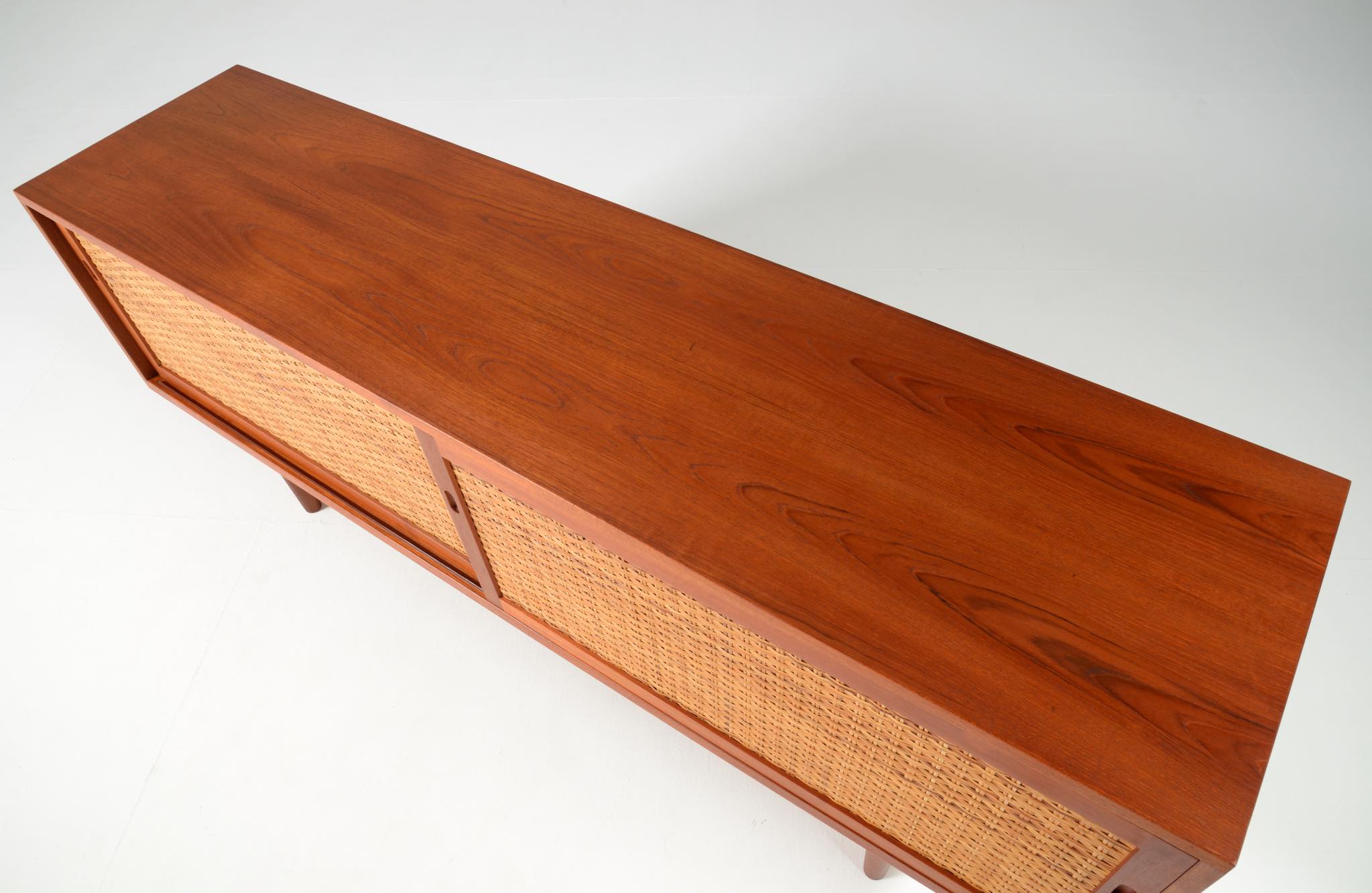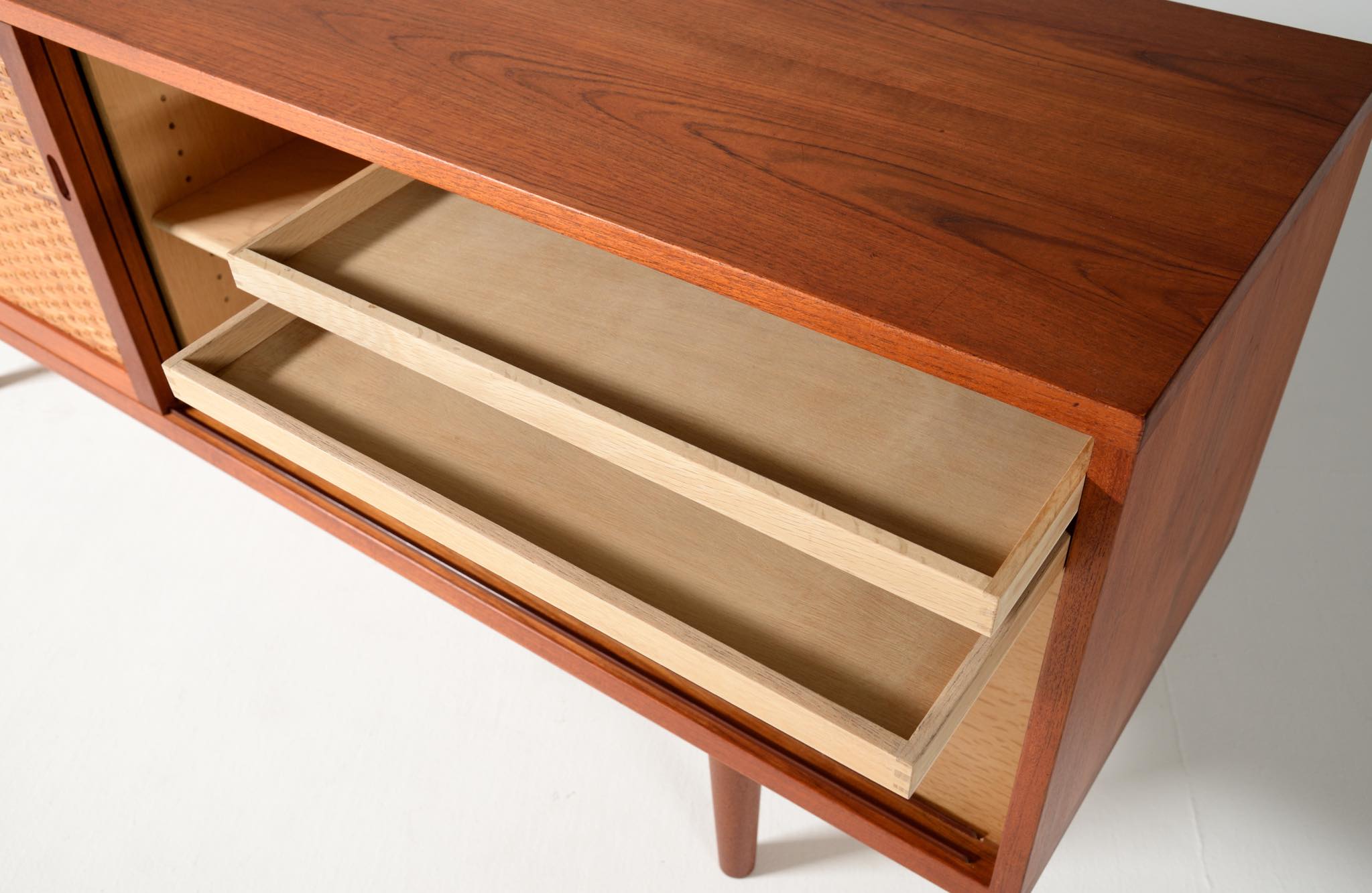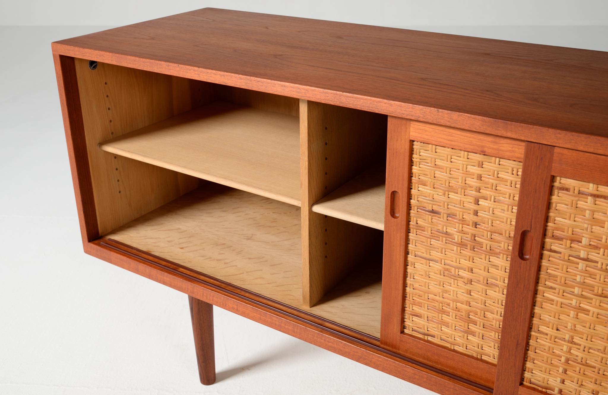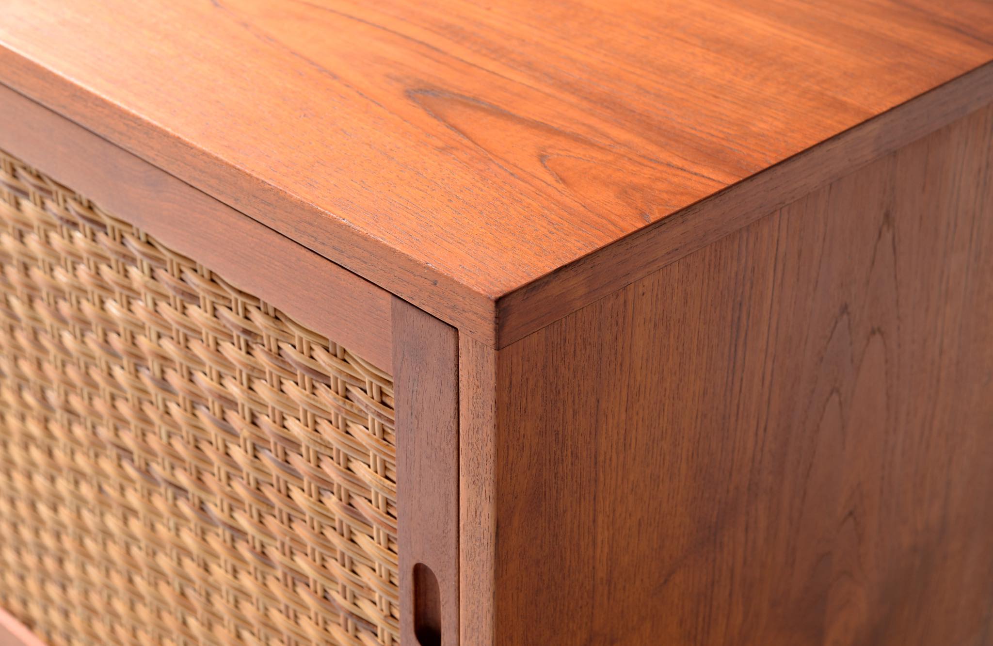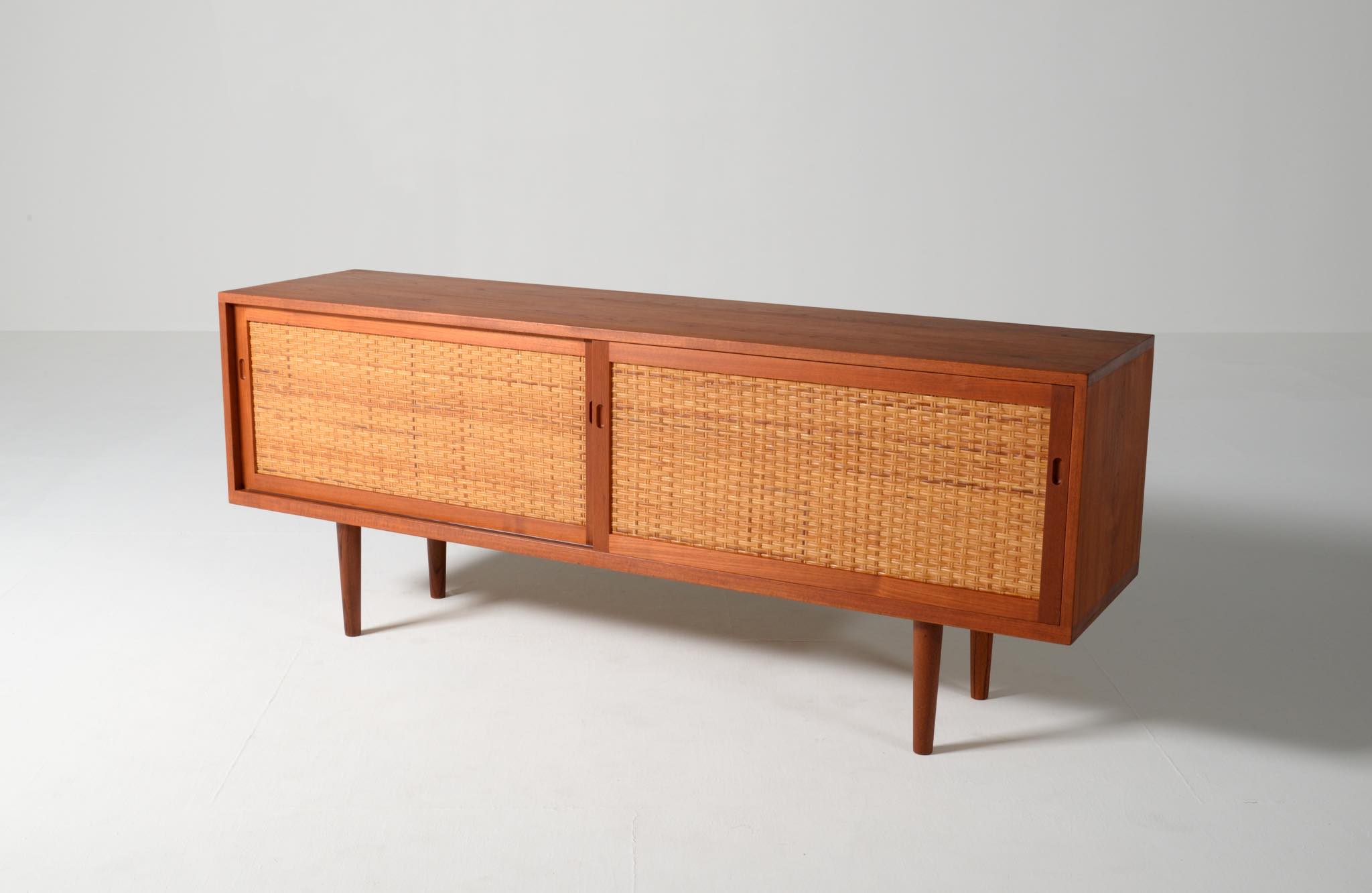 デンマークを代表する家具デザイナーのHans J. Wegner/ハンス・ウェグナーによる、RY26サイドボードキャビネットです。チークの本体にラタン張りの引戸の組み合わせで、東洋の建具を彷彿とさせます。内部は無塗装のオーク材、とても綺麗な状態です。