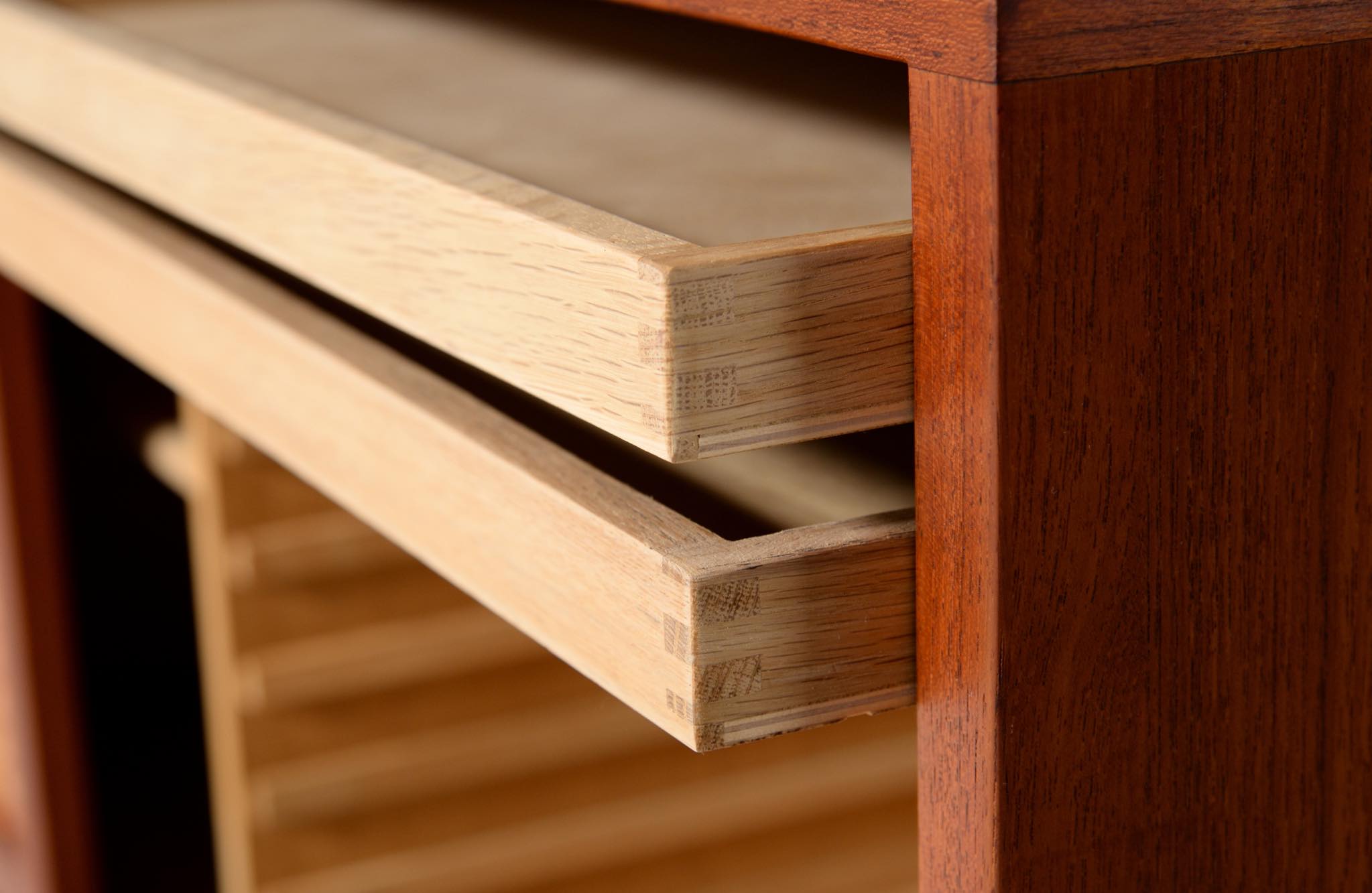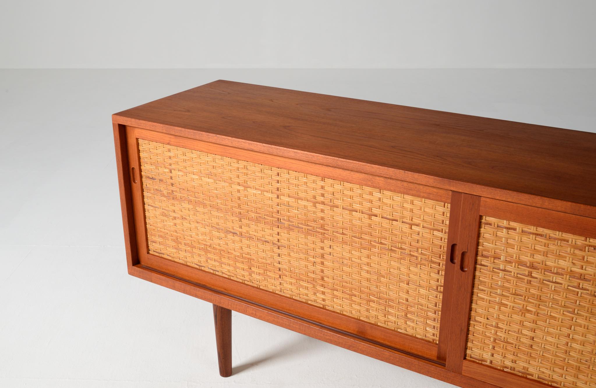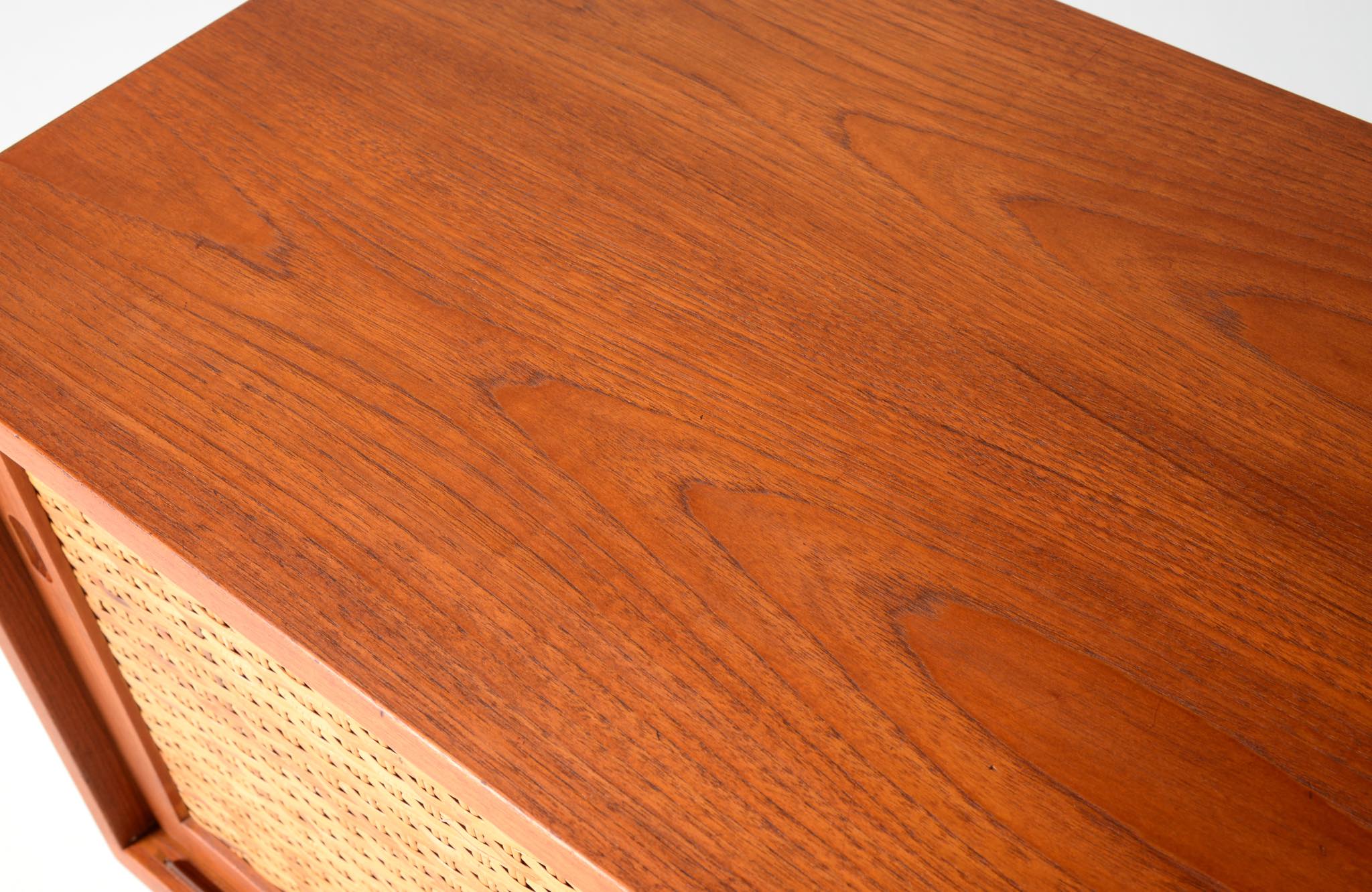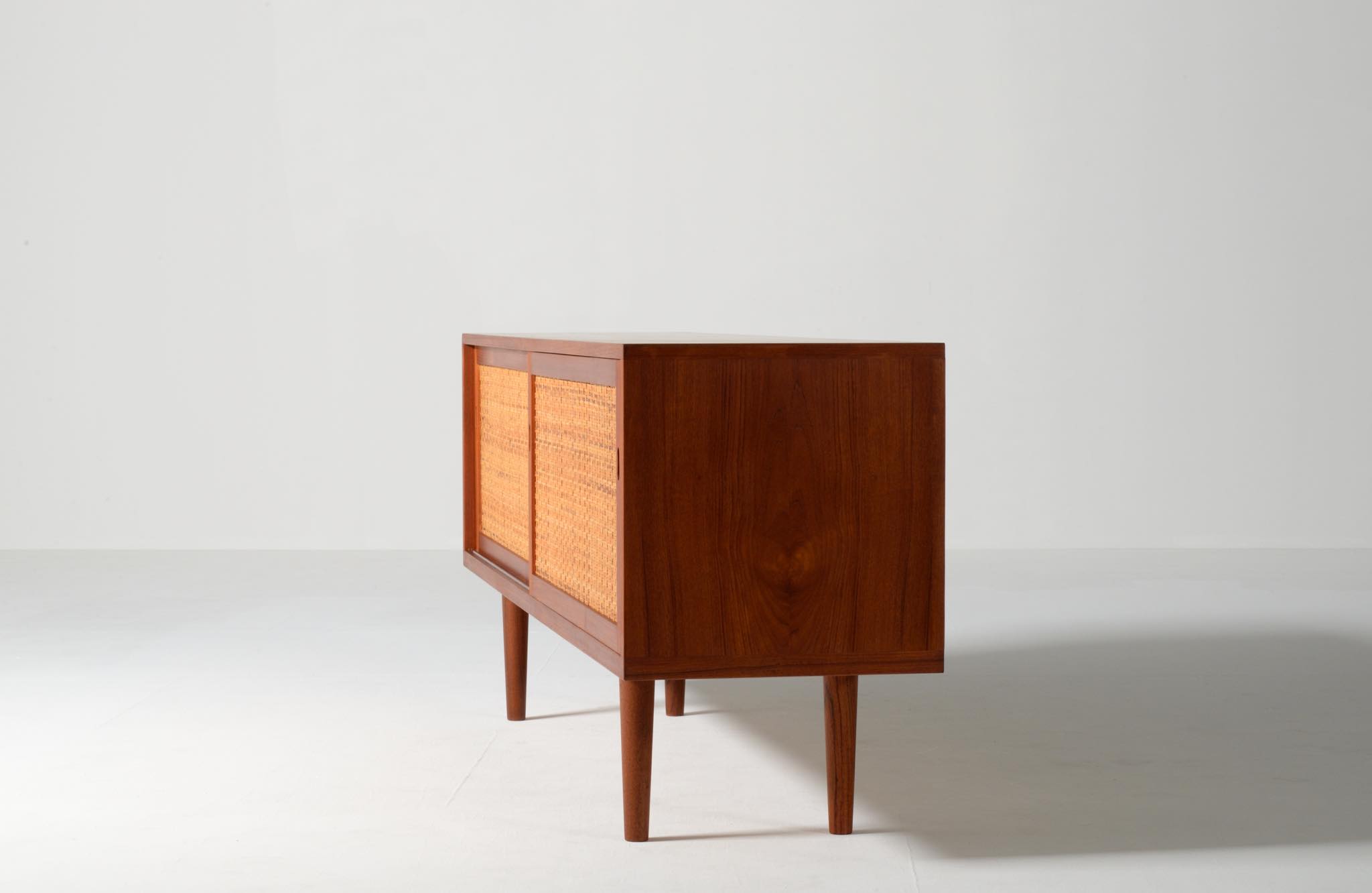 デンマークを代表する家具デザイナーのHans J. Wegner/ハンス・ウェグナーによる、RY26サイドボードキャビネットです。チークの本体にラタン張りの引戸の組み合わせで、東洋の建具を彷彿とさせます。内部は無塗装のオーク材、とても綺麗な状態です。