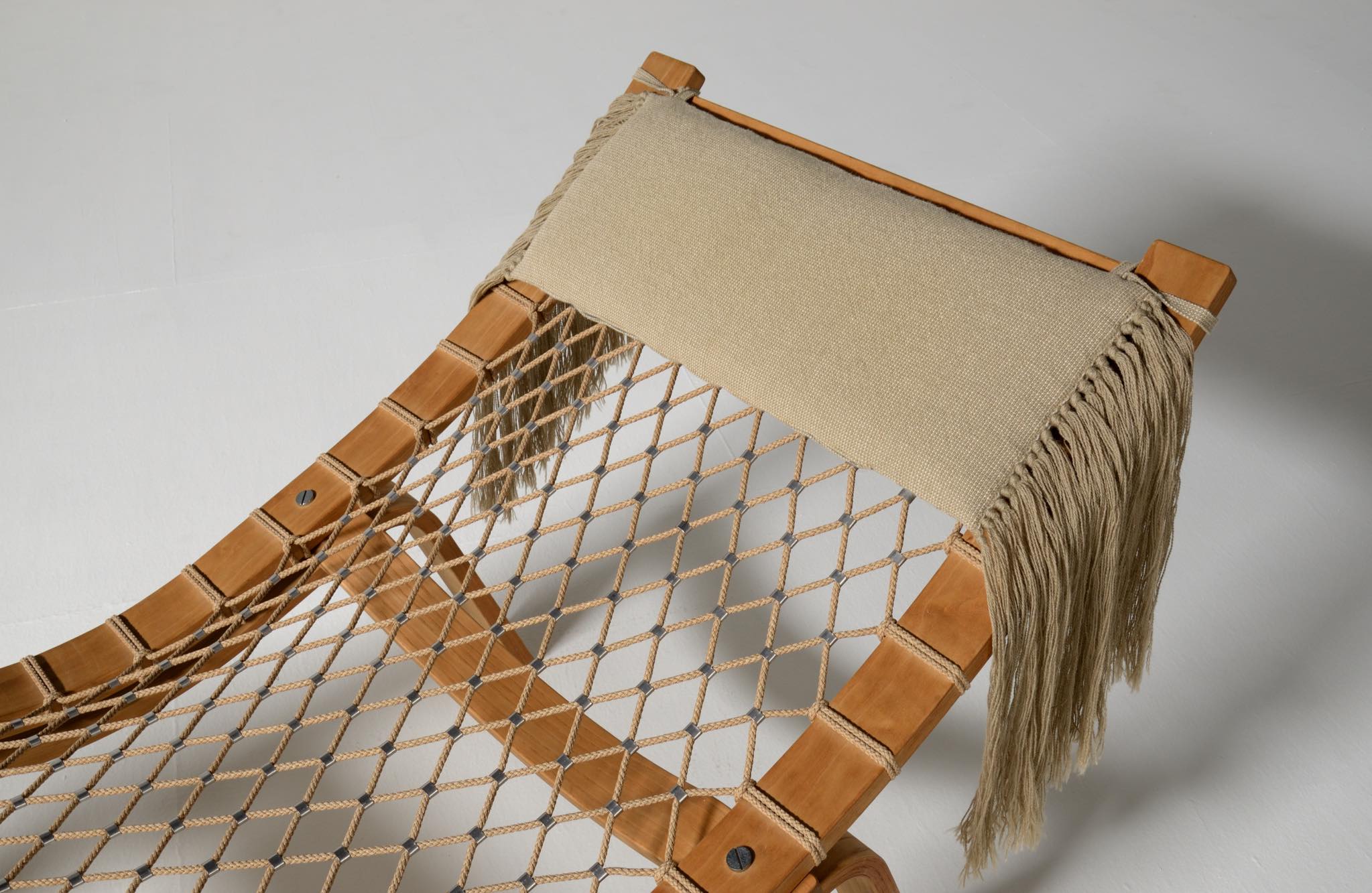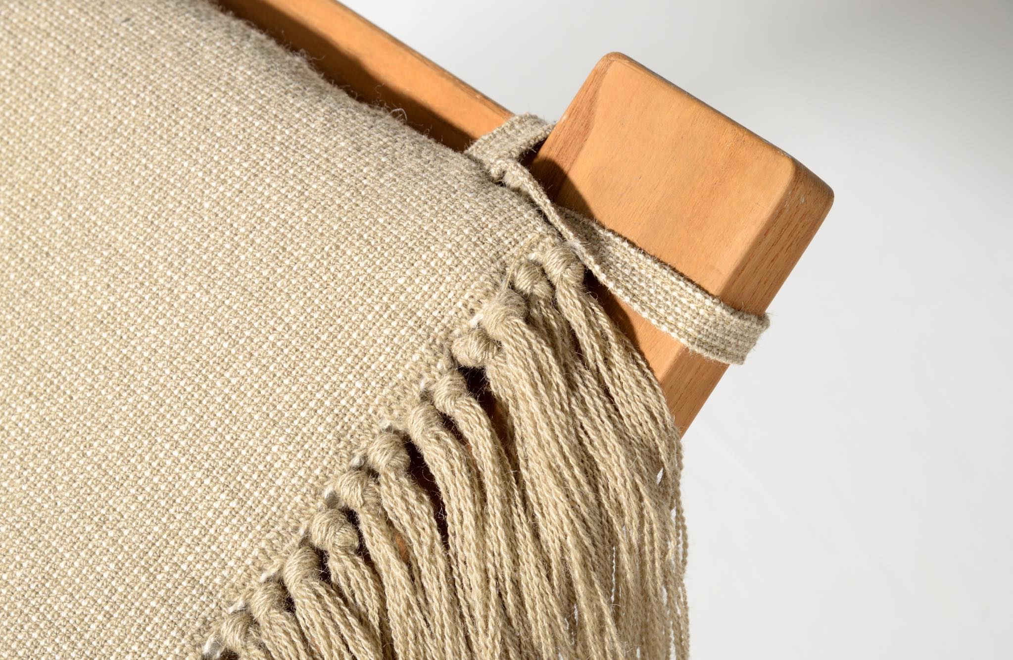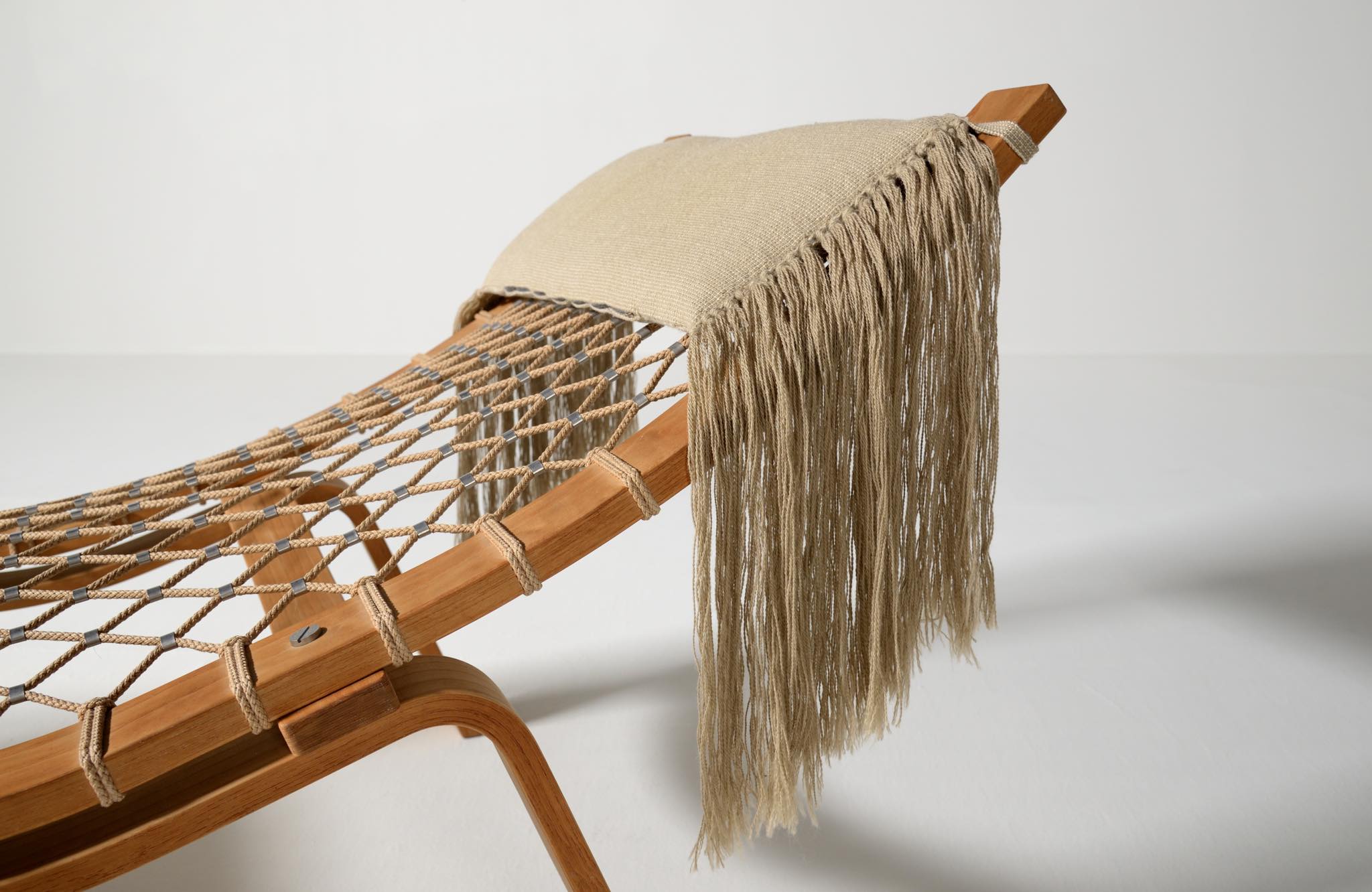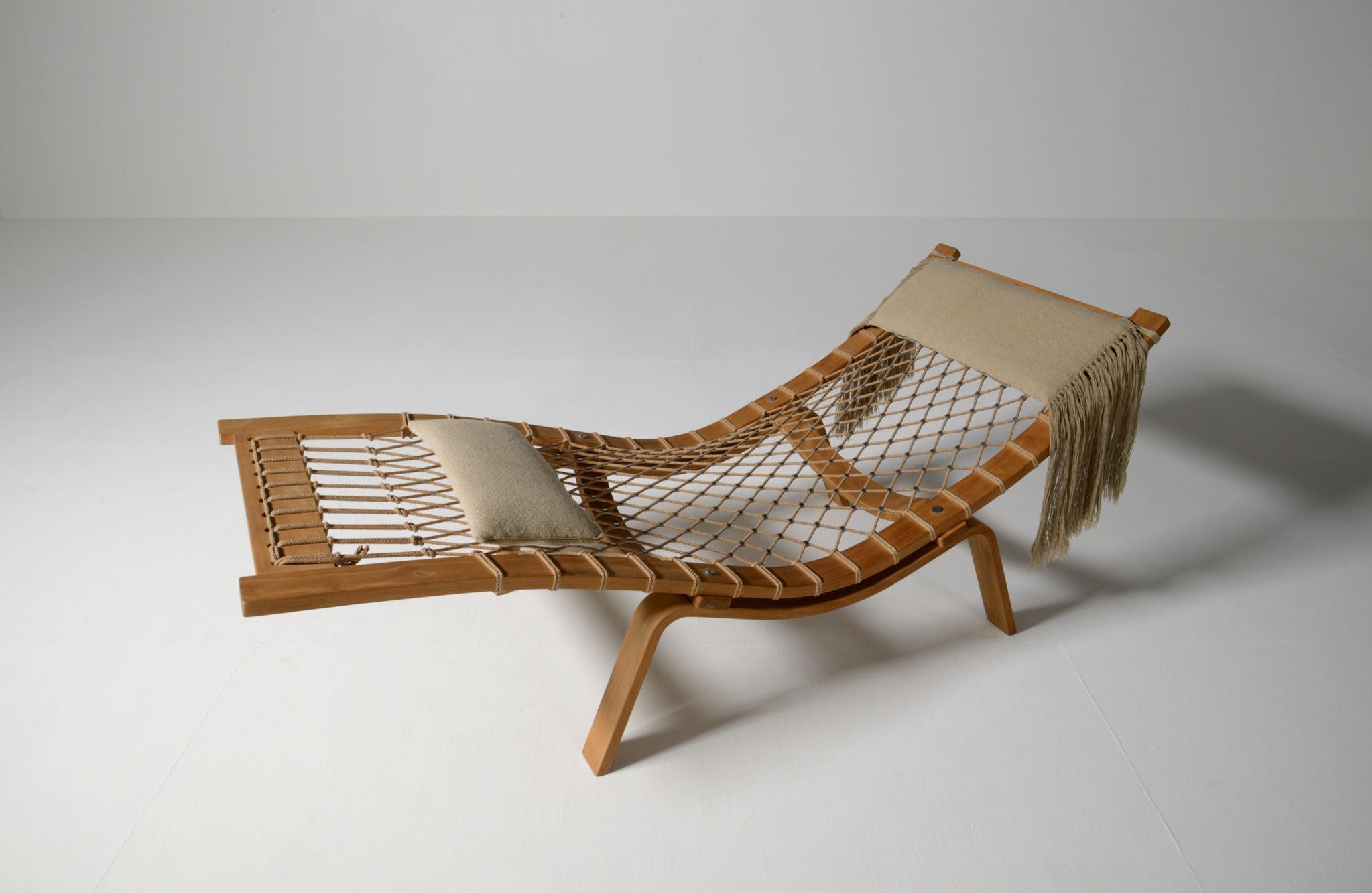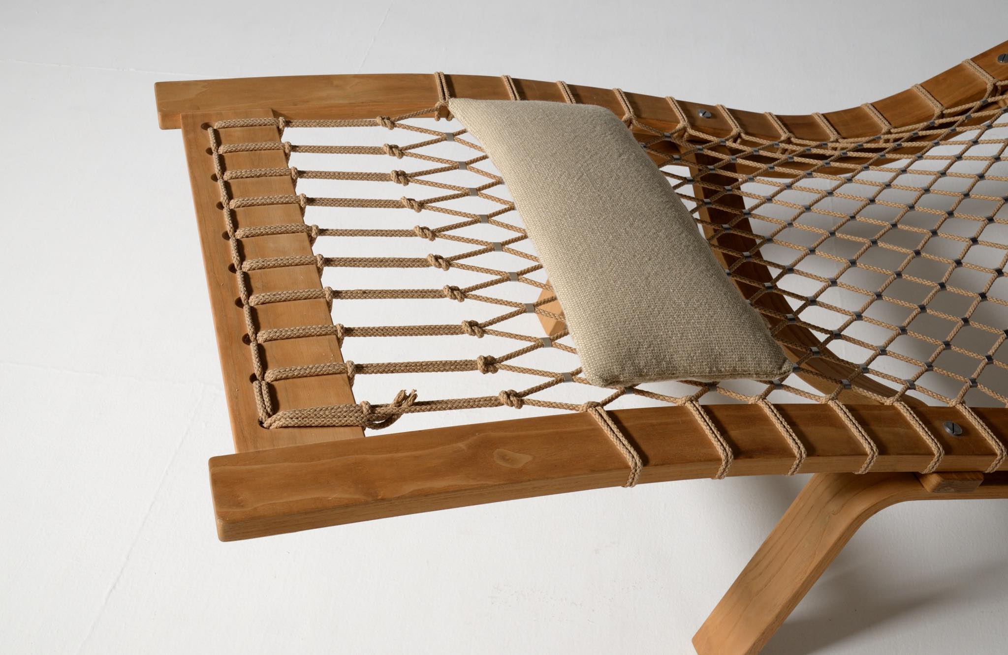 デンマークを代表する家具デザイナーのHans J. Wegner/ハンス・ウェグナーによる名作椅子、PP135ハンモックチェアです。オリジナルは1967年にゲタマ社から発表〜発売されましたが、僅かしか生産されなかったようです。こちらは1990年代にPPモブラー社により復刻されたものと思われ、刻印等は見られませんが、ウール生地のヘッドレスト、ふくらはぎ当てのクッションが備わります。コンディションは良好です。