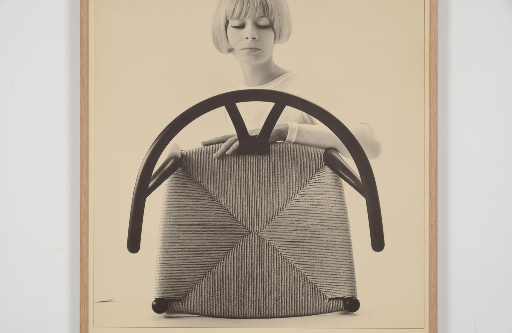 カール・ハンセン & サンのためのヴィンテージポスターです。写真家のポール・サロモンセンによる撮影の作品で、エキゾチックな女性と名作椅子 ”Y-chair” により独特な表現がなされています。フレームはオーク材にて作成しました。