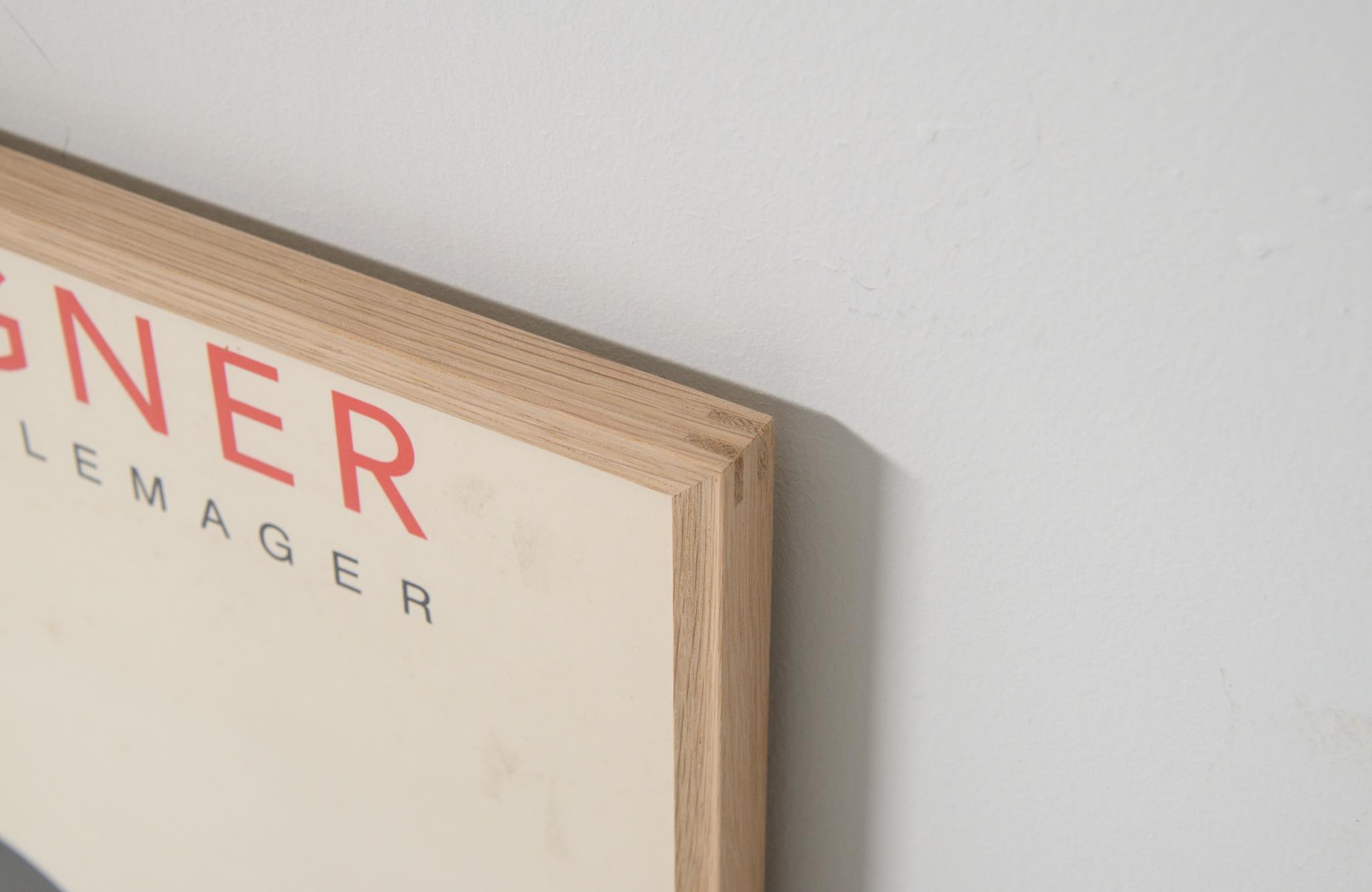 1989年にコペンハーゲンの工芸博物館(現 デザインミュージアム)で開催された、『ハンス・ウェグナー生誕75歳記念展』のヴィンテージポスターです。オーク材のフレームは新規作成しました。紙に若干の汚れが見られます。