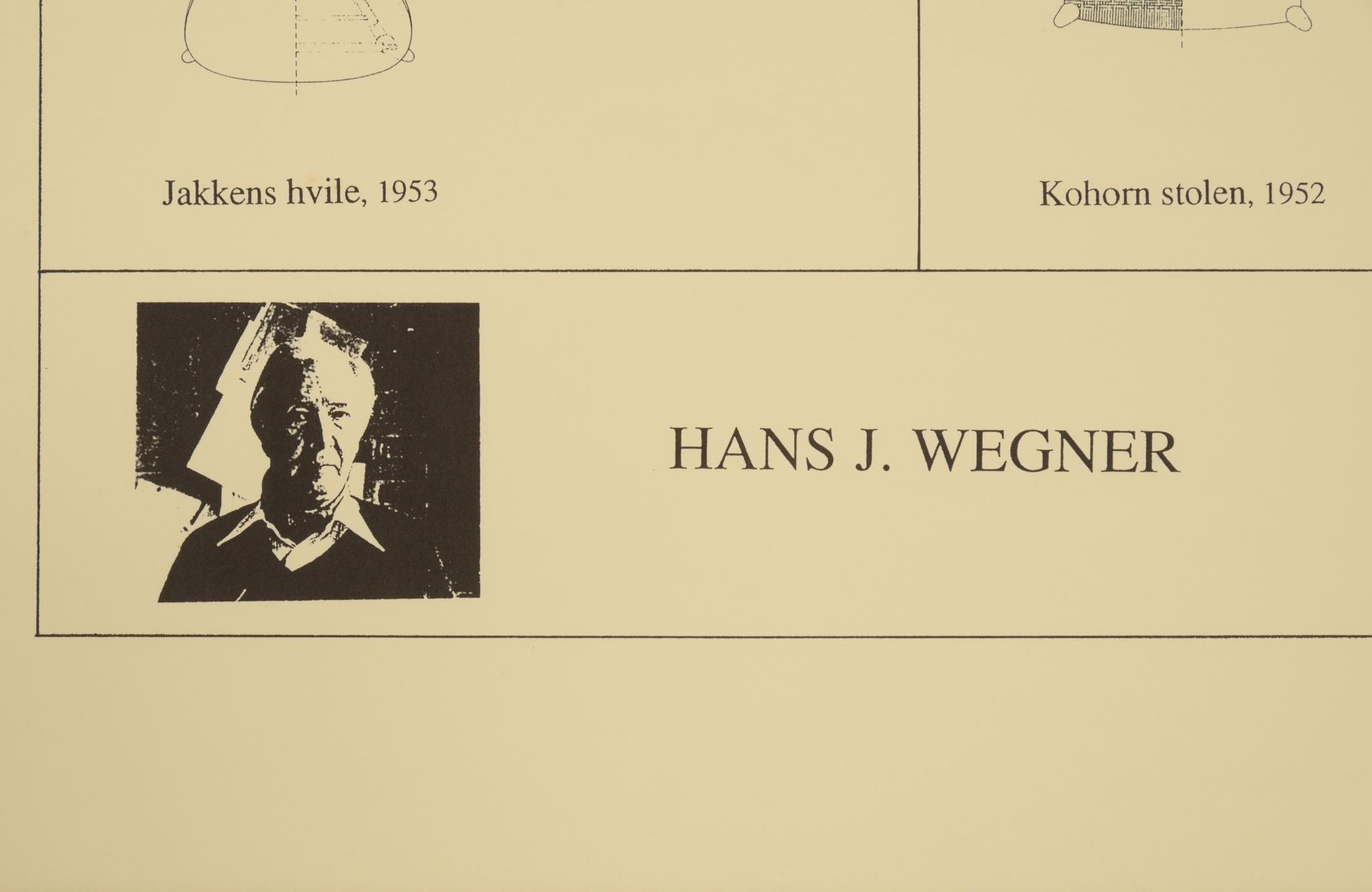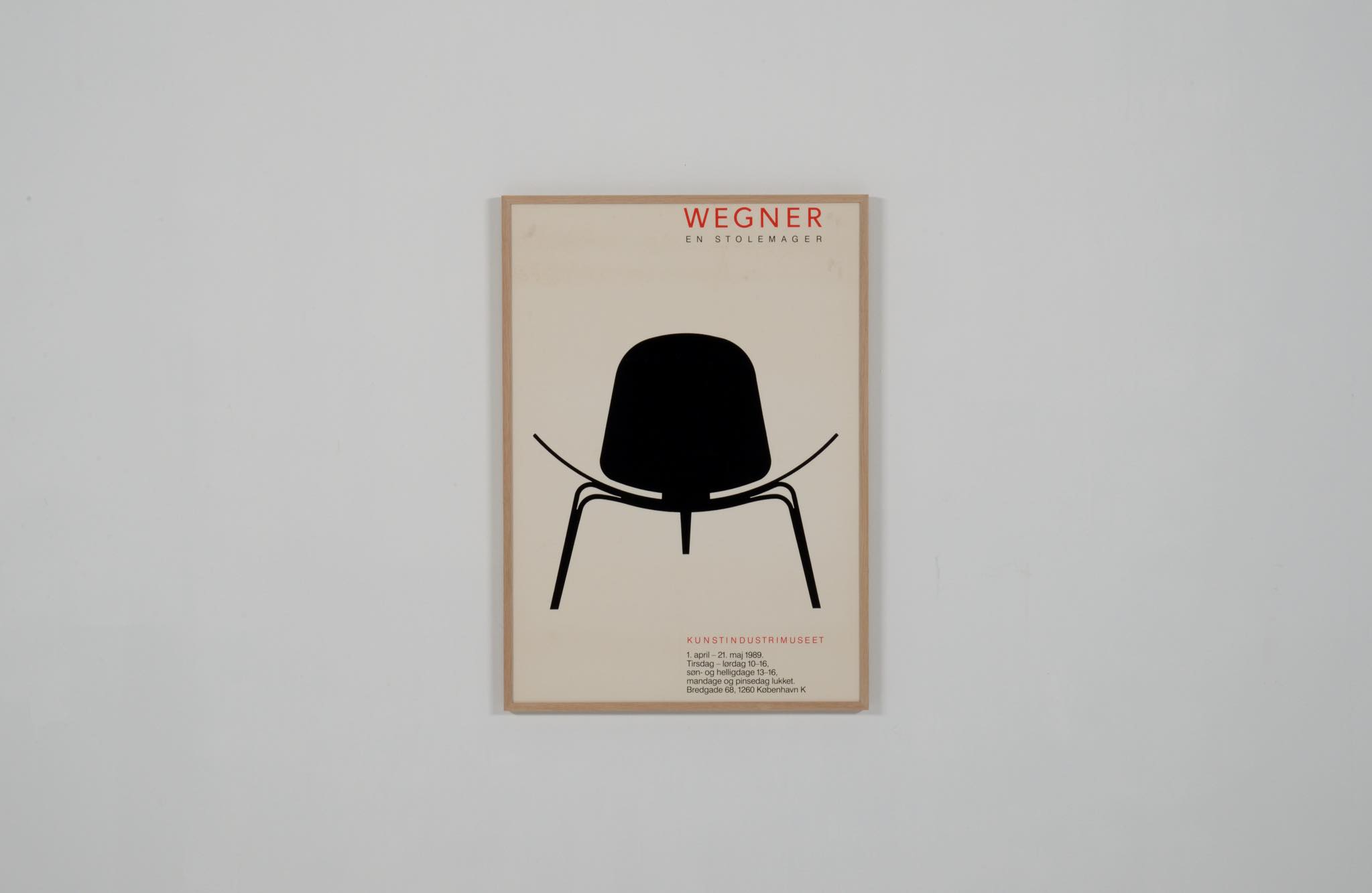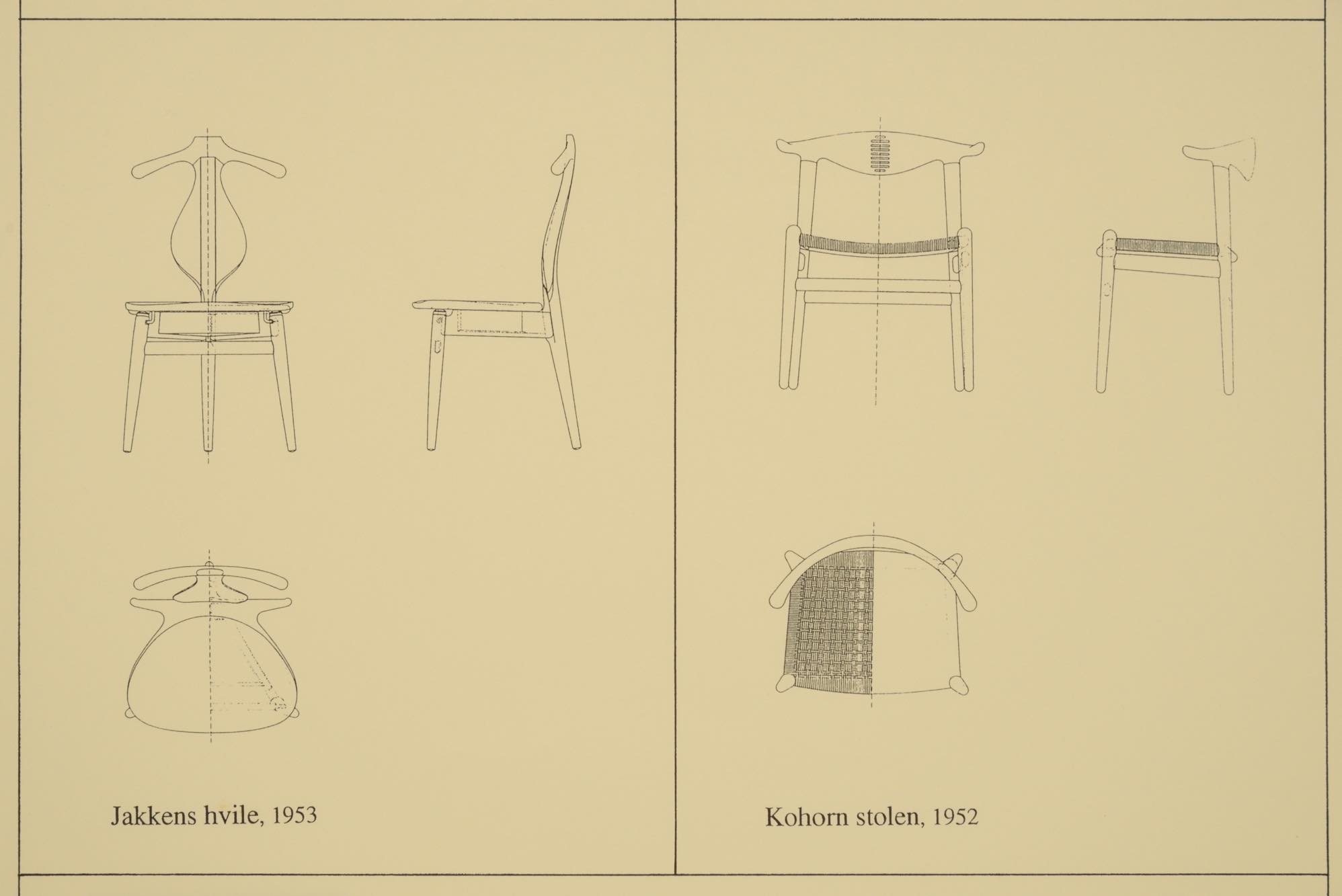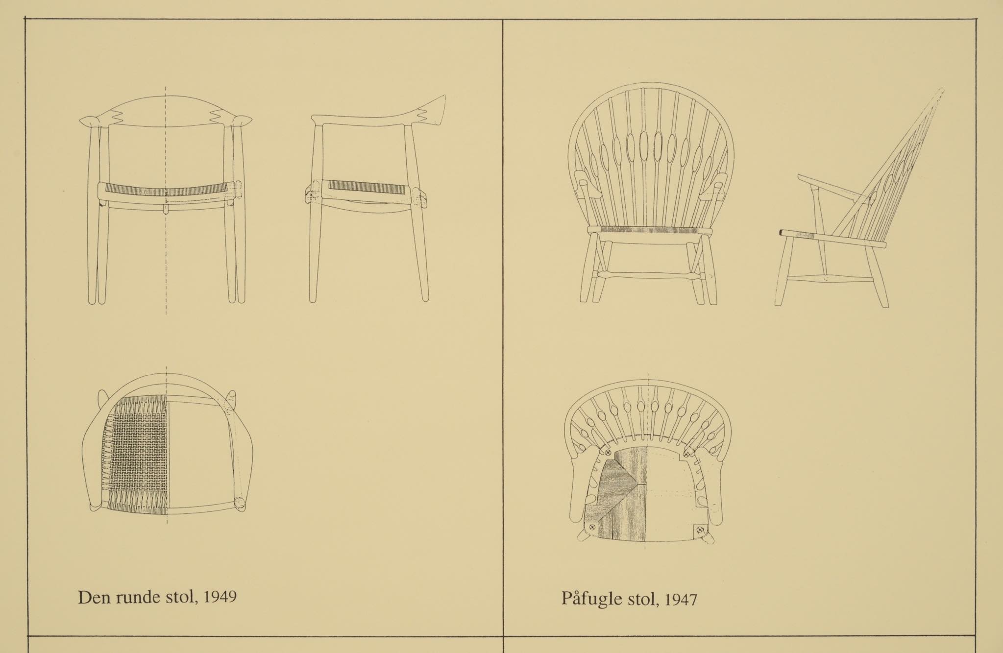 おそらくPPモブラー社の販促用と思われるヴィンテージポスターです。ザ・チェア、ピーコックチェア、ヴァレットチェア、そしてカウホーンチェアの4種の三面図が配置されています。オーク材のフレームは新規作成しました。