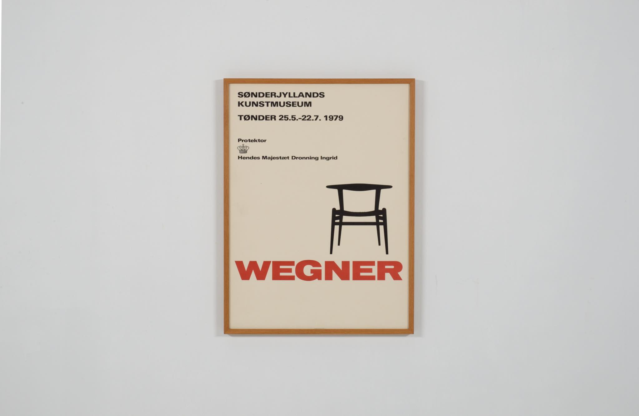 ハンス・ウェグナーの生まれ故郷のトゥナーに位置する、トゥナー美術館(旧南ユトランド美術館)にて1979年に開催された「ハンス・ウェグナー展」のポスターです。ブルホーンチェアがシルエットモチーフとして描かれています。オーク材のフレームは国内製で近年製作されたようです。