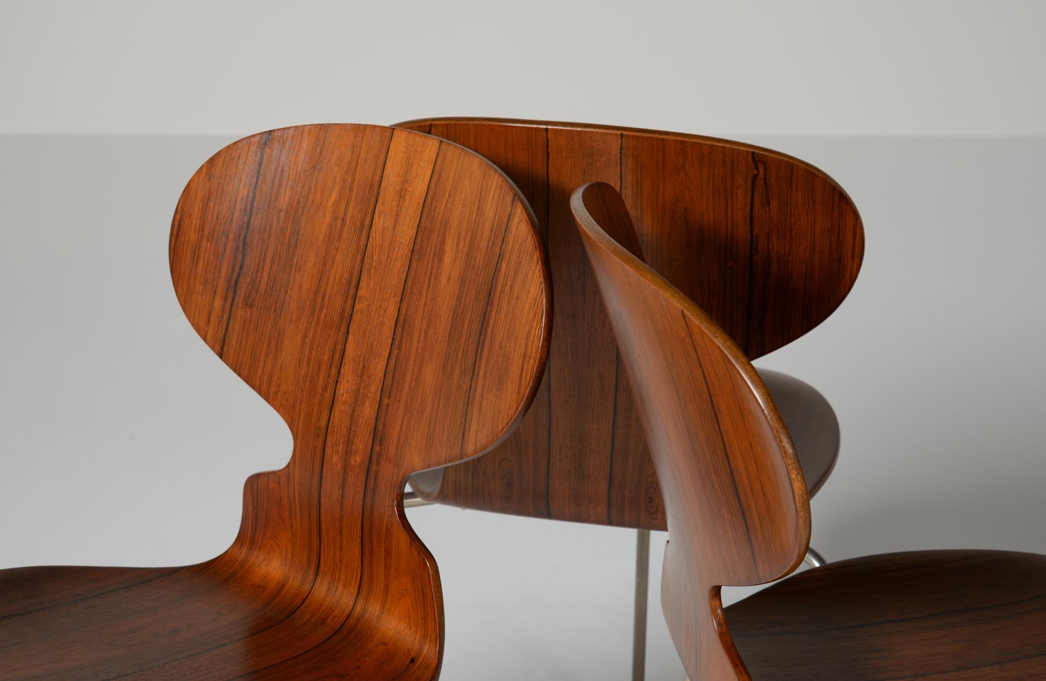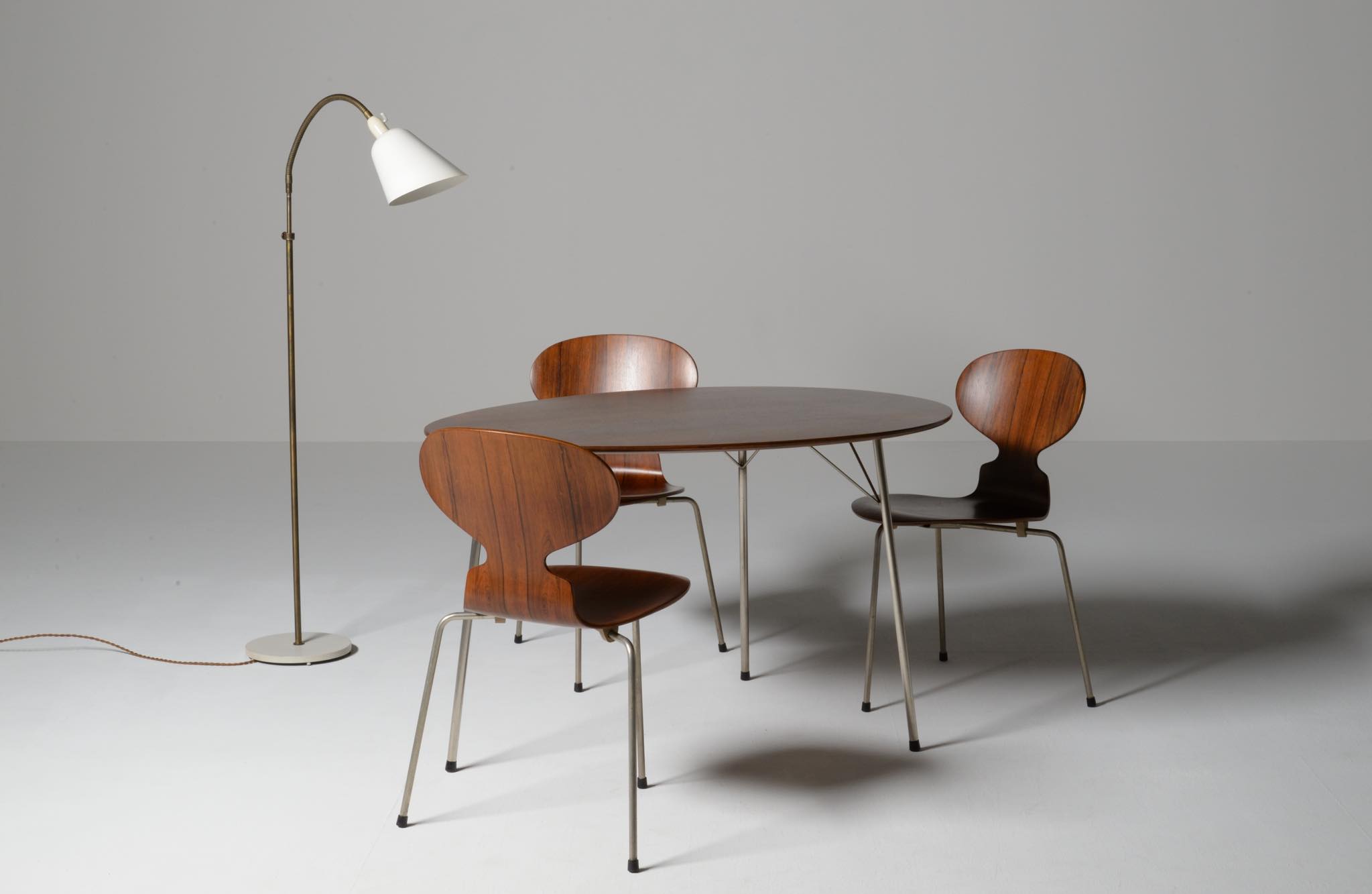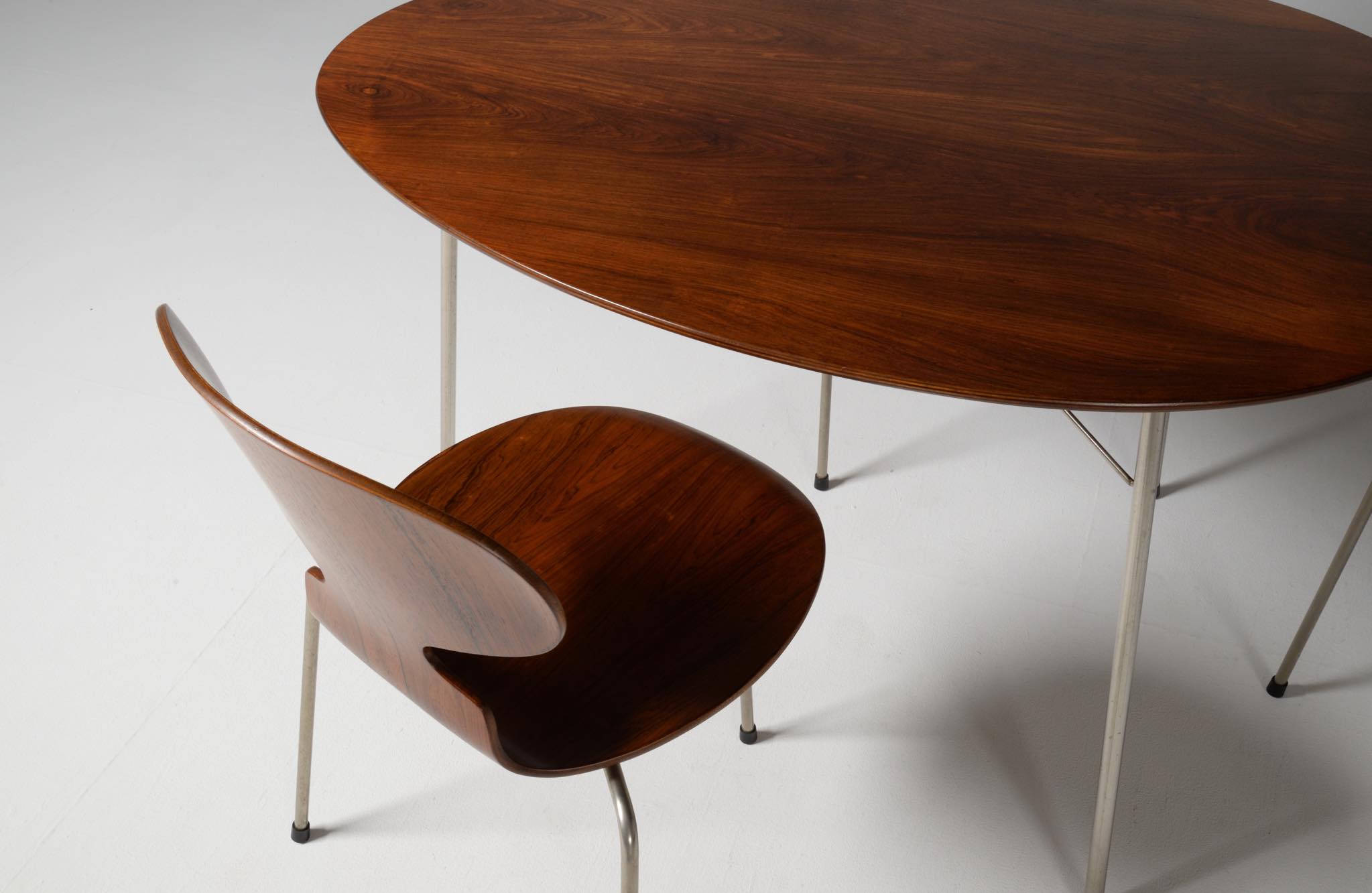 model 3603 "Egg table" and model 3100 "Ant chair" in Brazilian rosewood