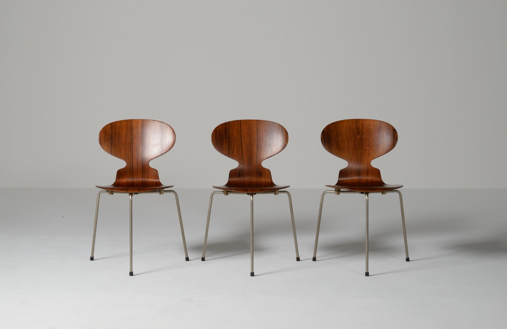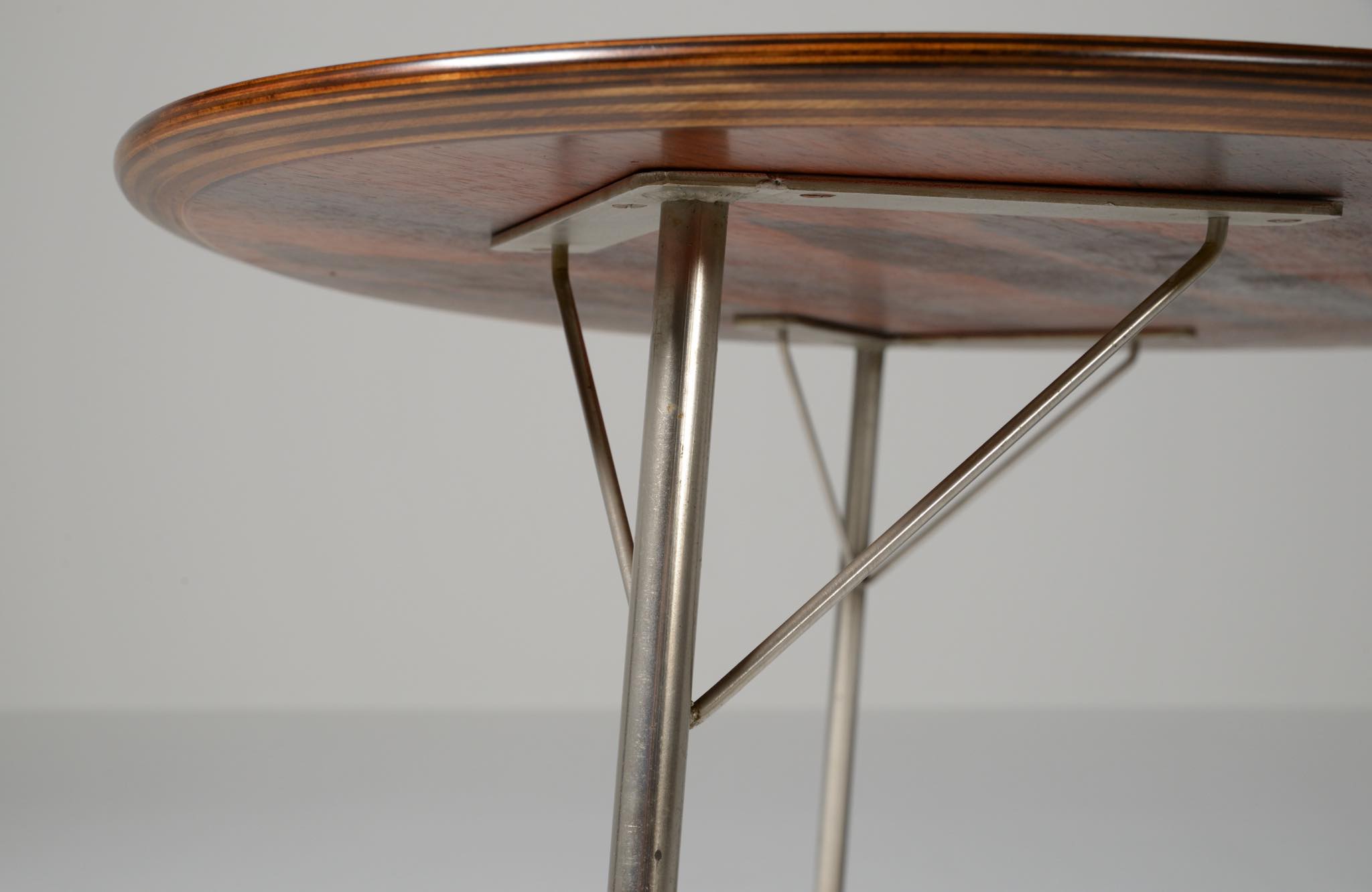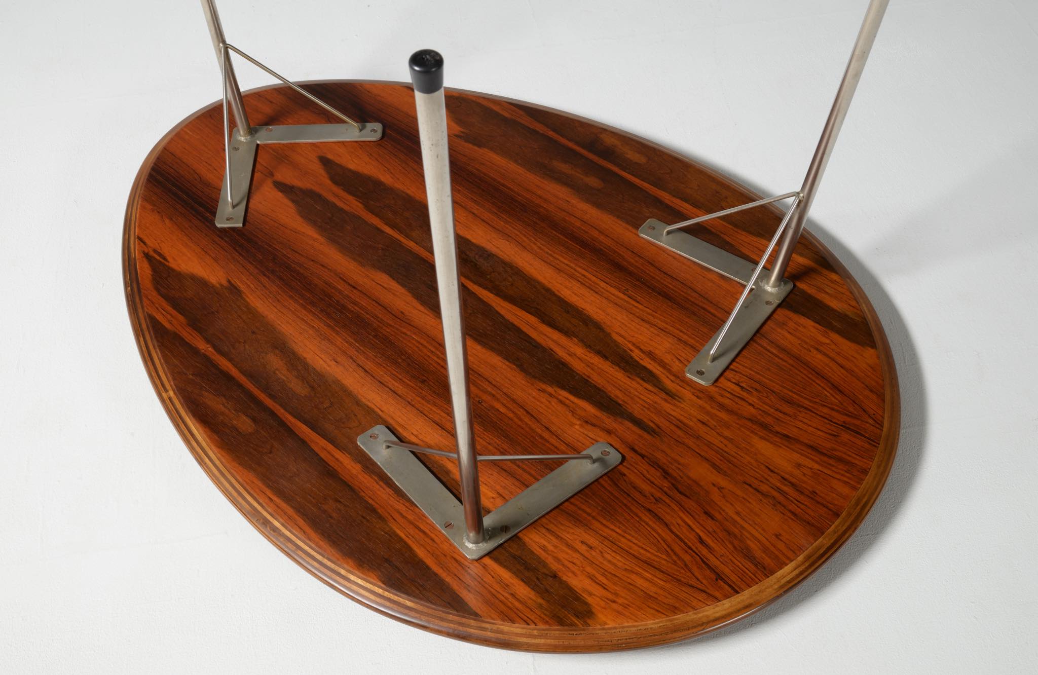 model 3603 "Egg table" and model 3100 "Ant chair" in Brazilian rosewood